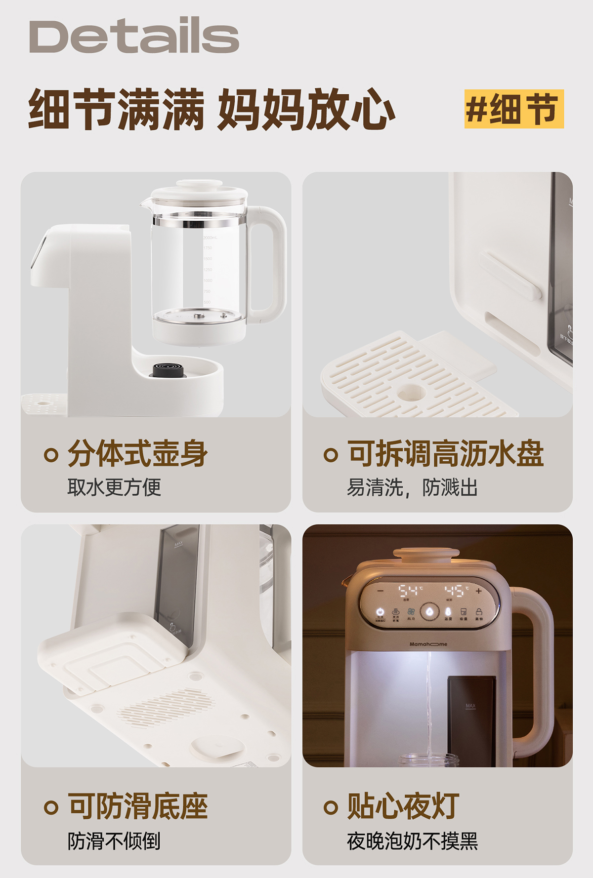 9、2档出水高度可调节,适配不同高度奶瓶(放飞溅)