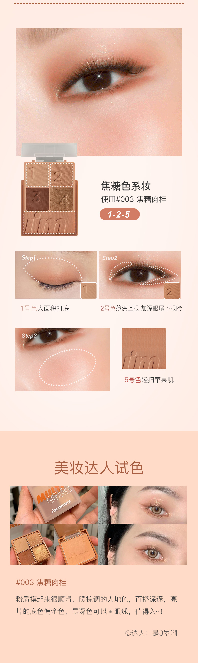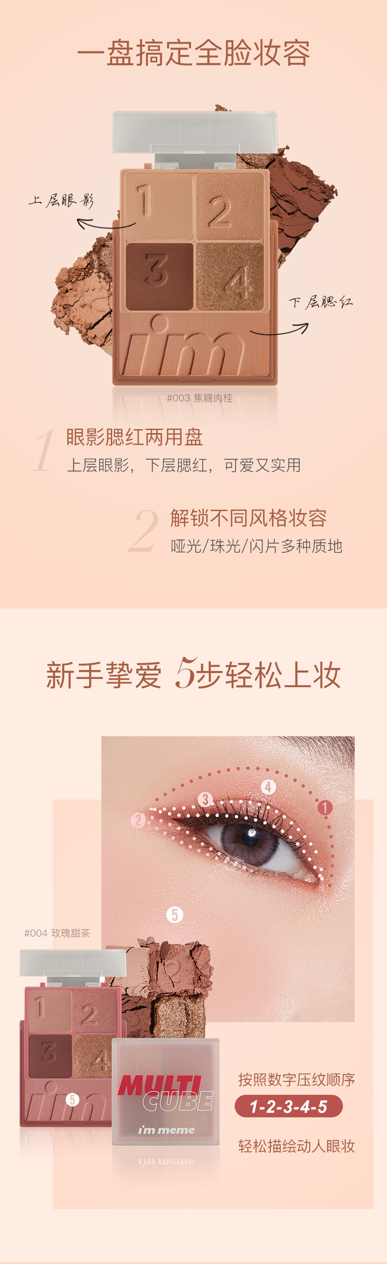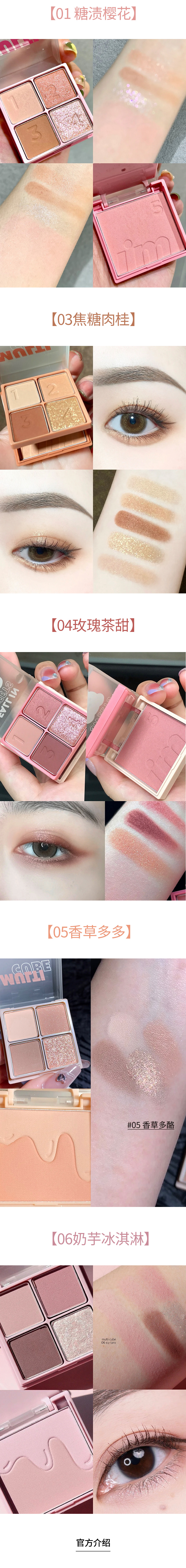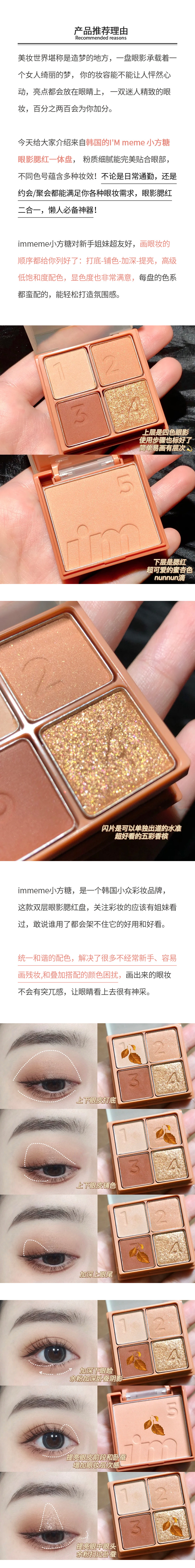 【3天左右/浙江发】immeme小方糖眼影腮红一体盘,直接搞定整个妆容超NICE!上眼不飞粉/持久度也超好,让眼睛深邃有神,一秒甩掉肿眼泡,使用顺序都给你标好了,新手党必备的眼妆神器!