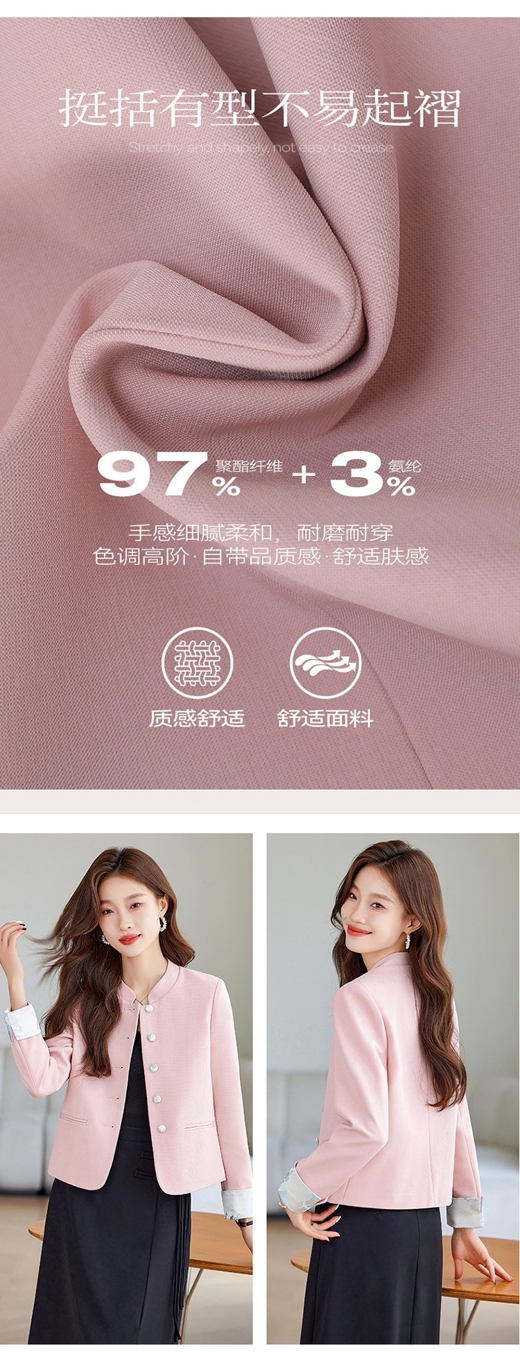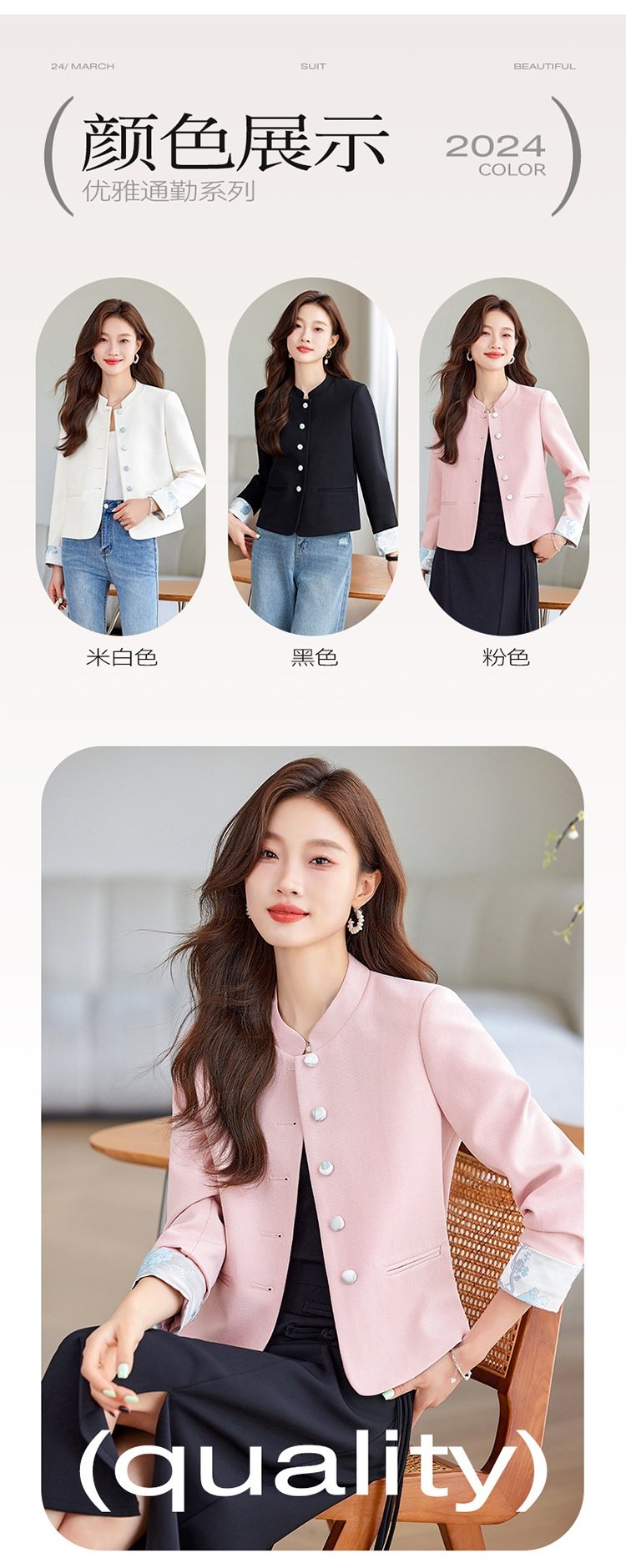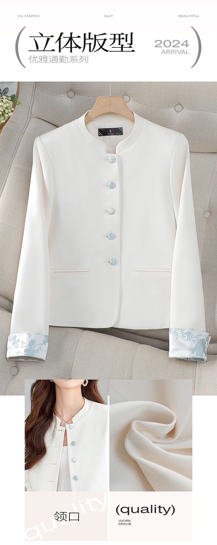「自」全新升级【铂金会员146/天猫199/差价53】(23952)洛诗琳小香风西装外套2026早春新款小个子短款高级感立领国风上衣