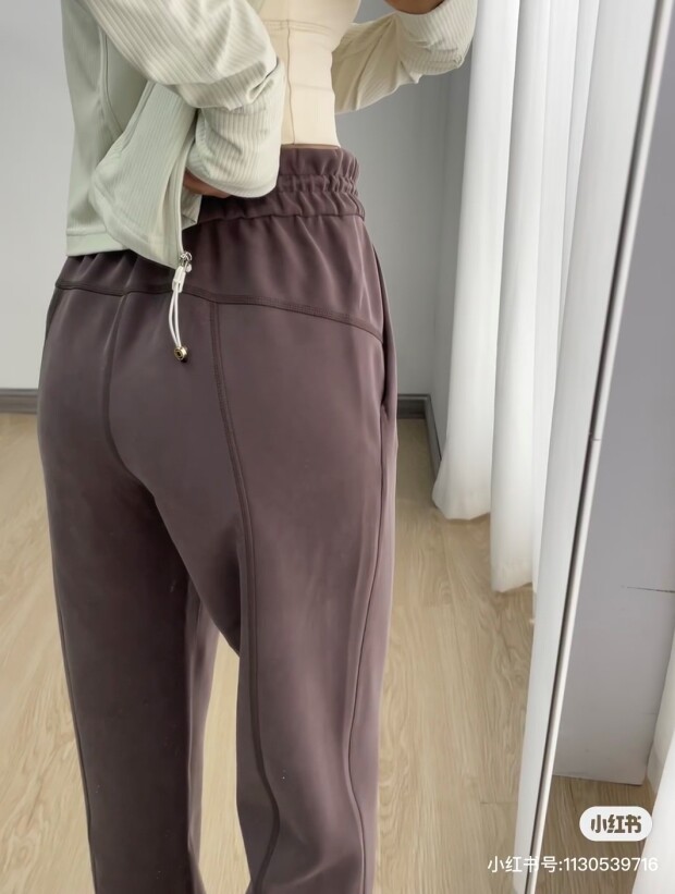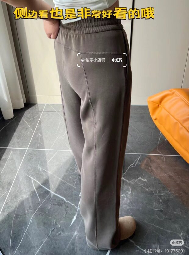 代工方面 跟上款薄绒女团裤类似 小宽边腰头 约4.5cm 独立拼接 缝线平整