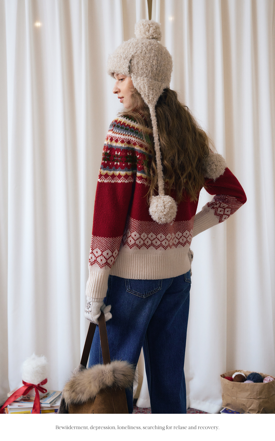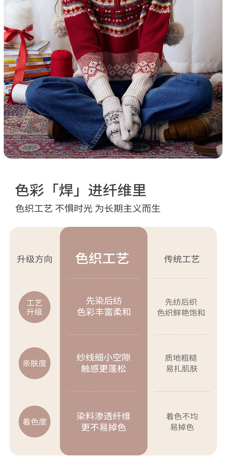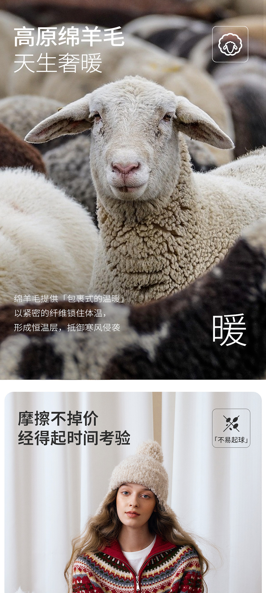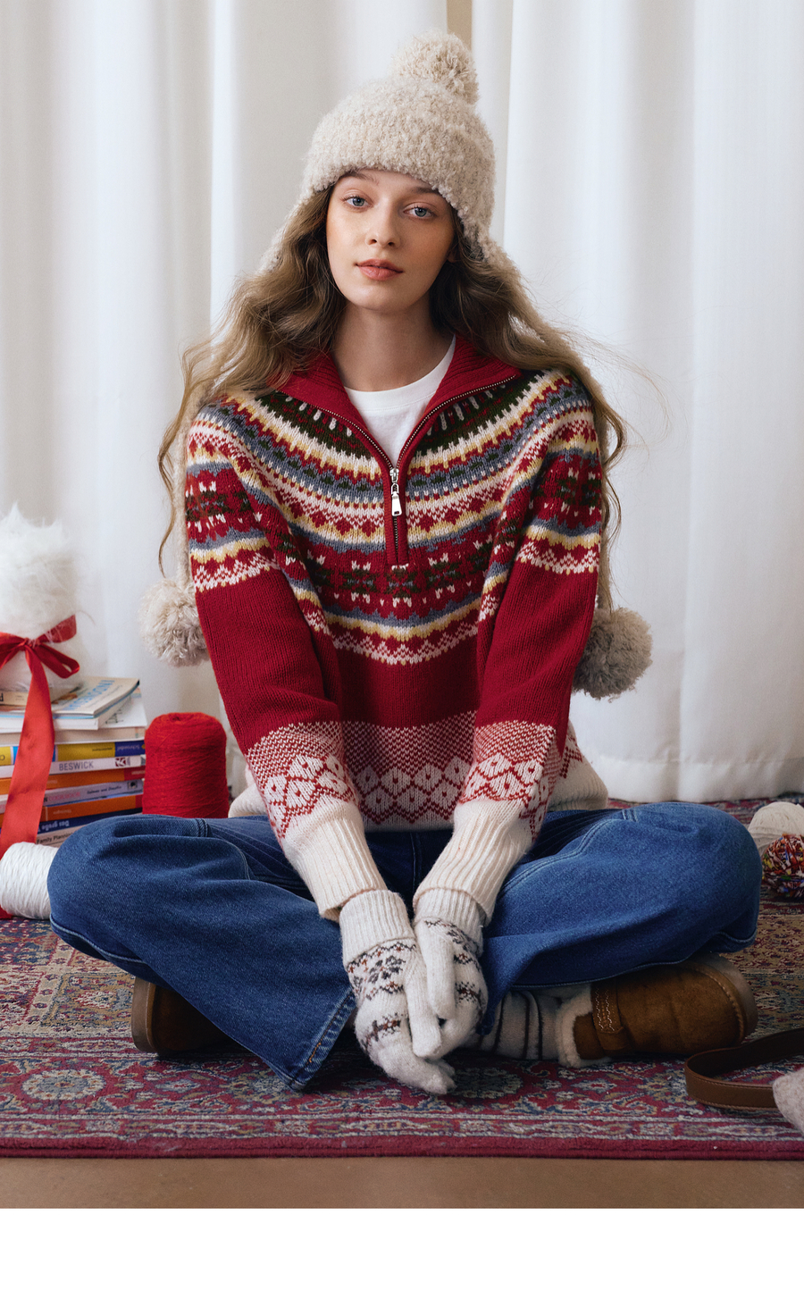 圣诞红色穿搭费尔岛提花纯羊毛针织衫女冬季新款半拉链套头毛衣