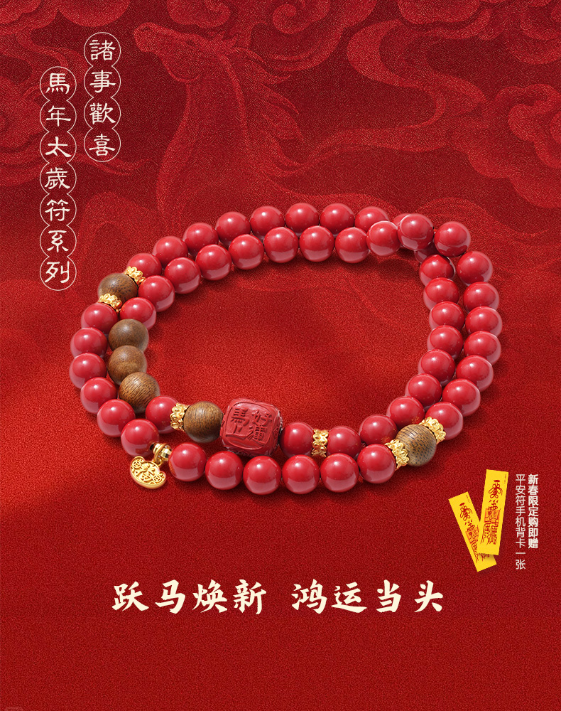 【马年太岁符 好运不打折】 钻石世家X心喜 诸事欢喜马年太岁符系列 马年太岁符沉香朱砂手串 鸿运当头 六面吉文 炽烈好运 事事顺遂【结缘定制、无质量问题不支持退换货】预计3-5天发货