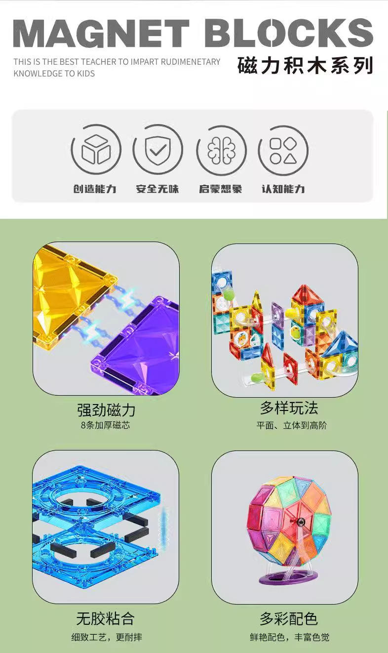 宏星儿童彩窗磁力片拼装积木男女孩拼图磁铁棒益智男女孩生日礼物