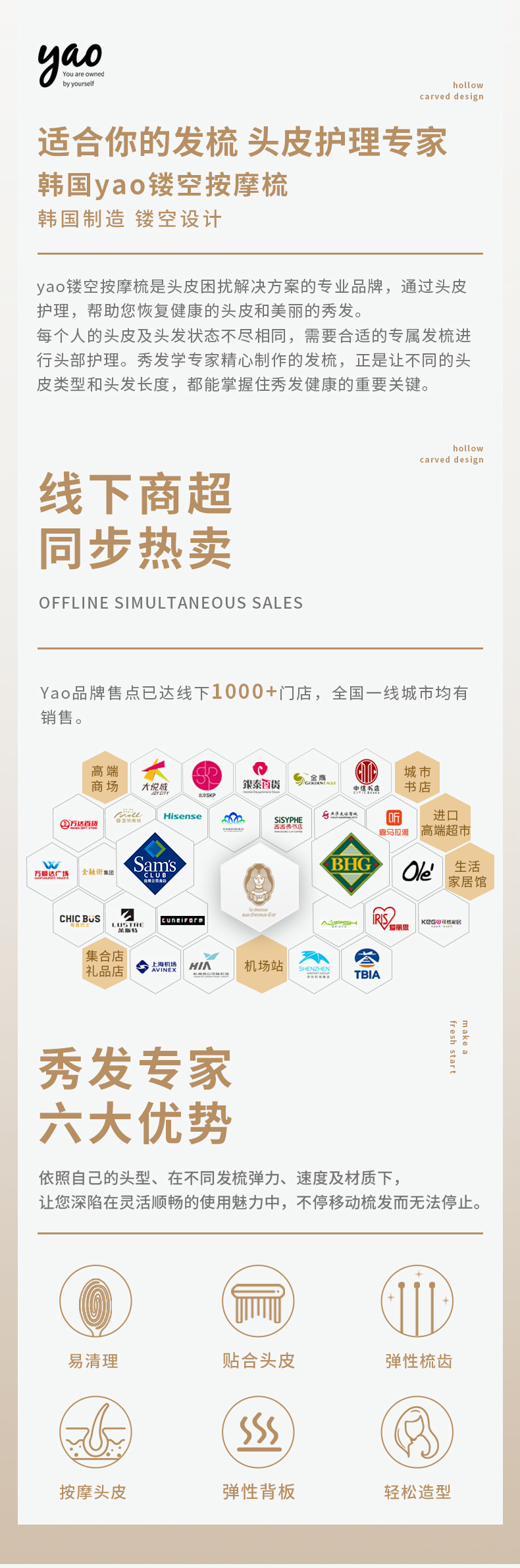 【ck专属-限时开团】韩国媒体力荐的yao镂空按摩梳,防静电干湿两用,一秒清理残留掉发,完爆气垫梳