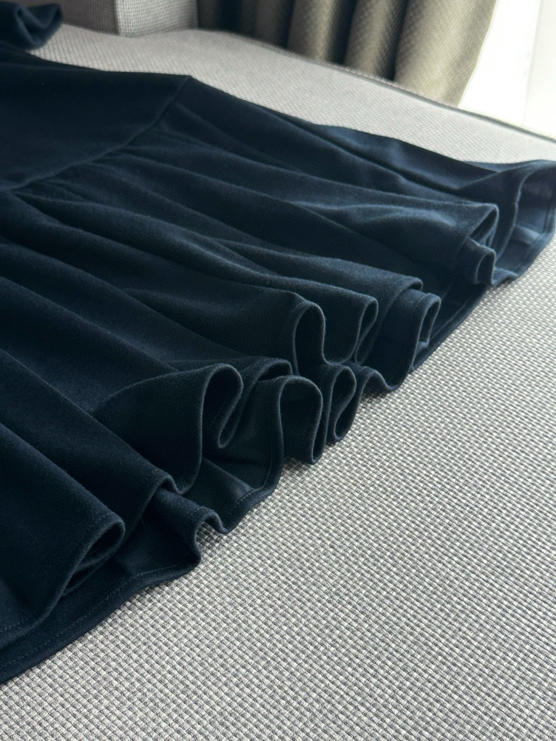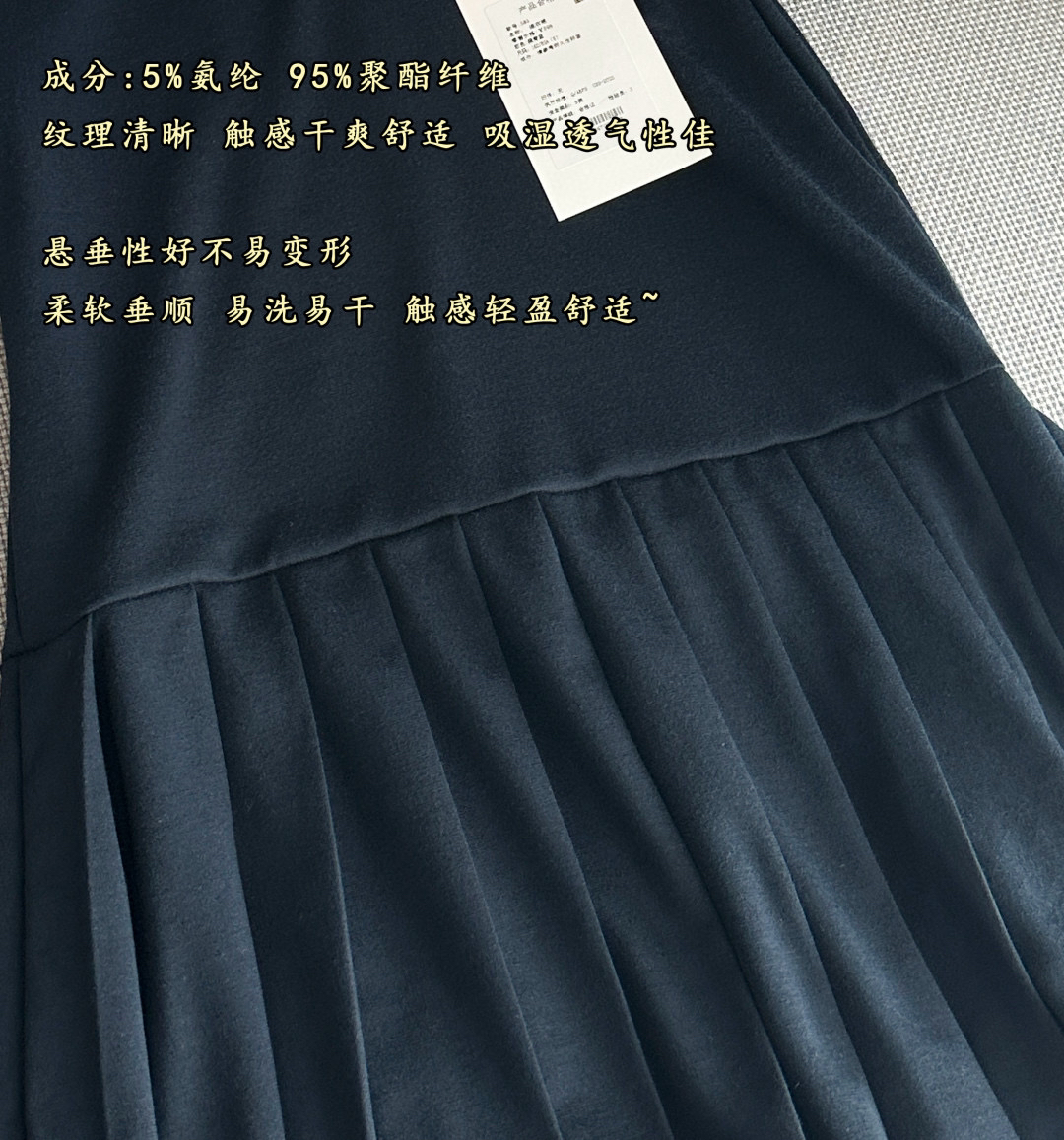 裙摆压褶工艺双倍高耗料,做好脚口后压褶,比整幅面料压褶难度更高,耗时耗料。褶裥工艺精细非常,每条裙子都是单独定制,每一个褶裥都需拿捏到位,匠心打造高成本精致感~