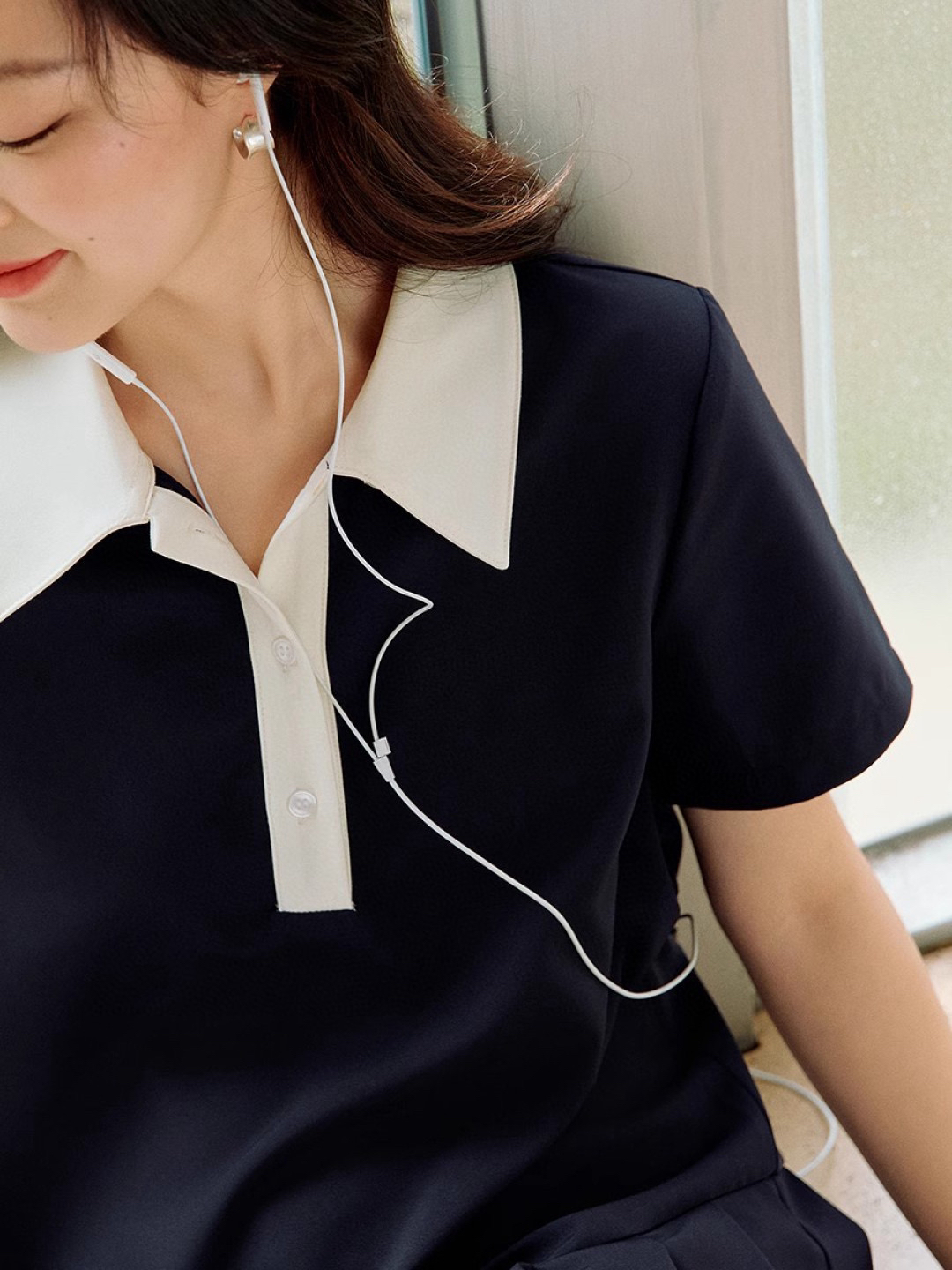 撞色polo领设计,完美修饰脸型门襟3粒扣,方便穿脱,一整个洋气百搭!
