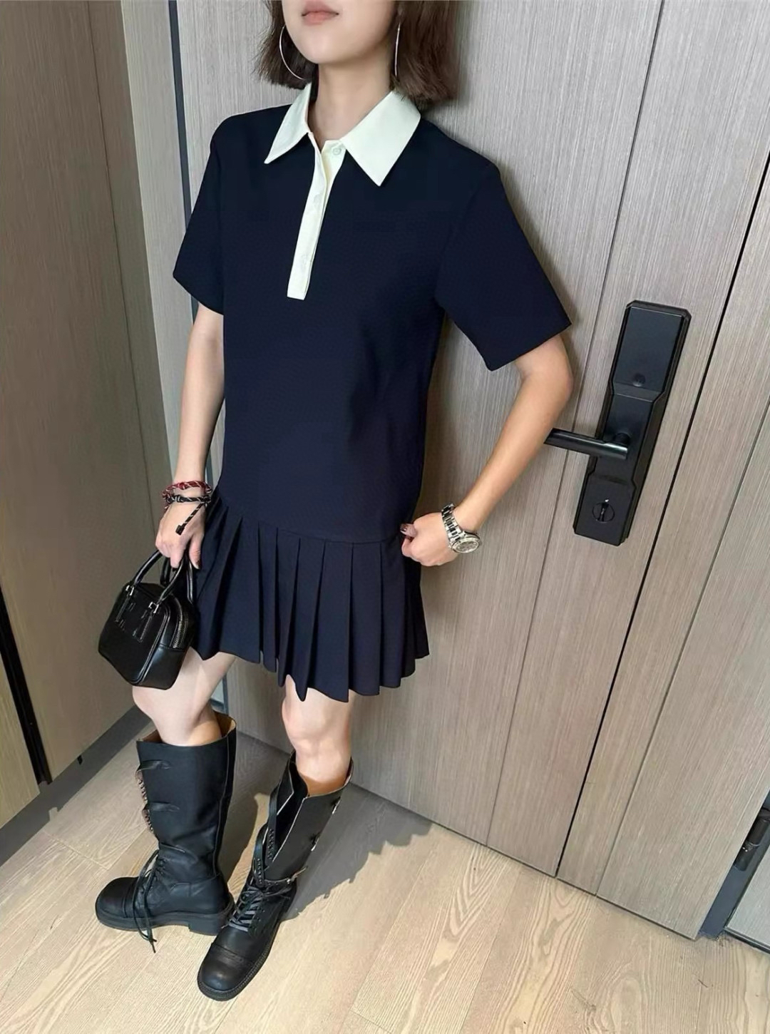 polo裙风格不限,没有一丝多余装饰通过立体宽松剪裁达到显瘦的效果~打造出独特的时尚风格~