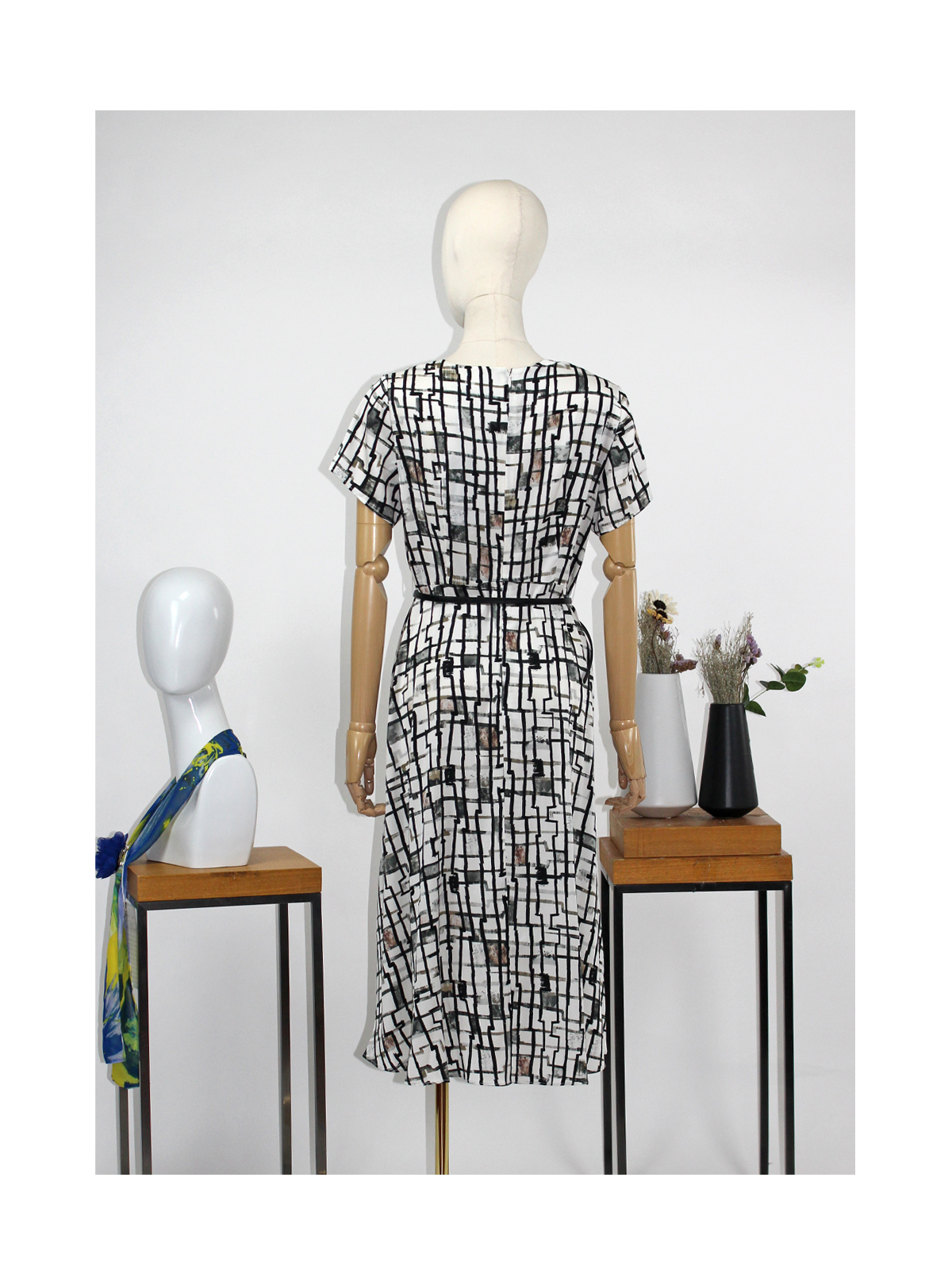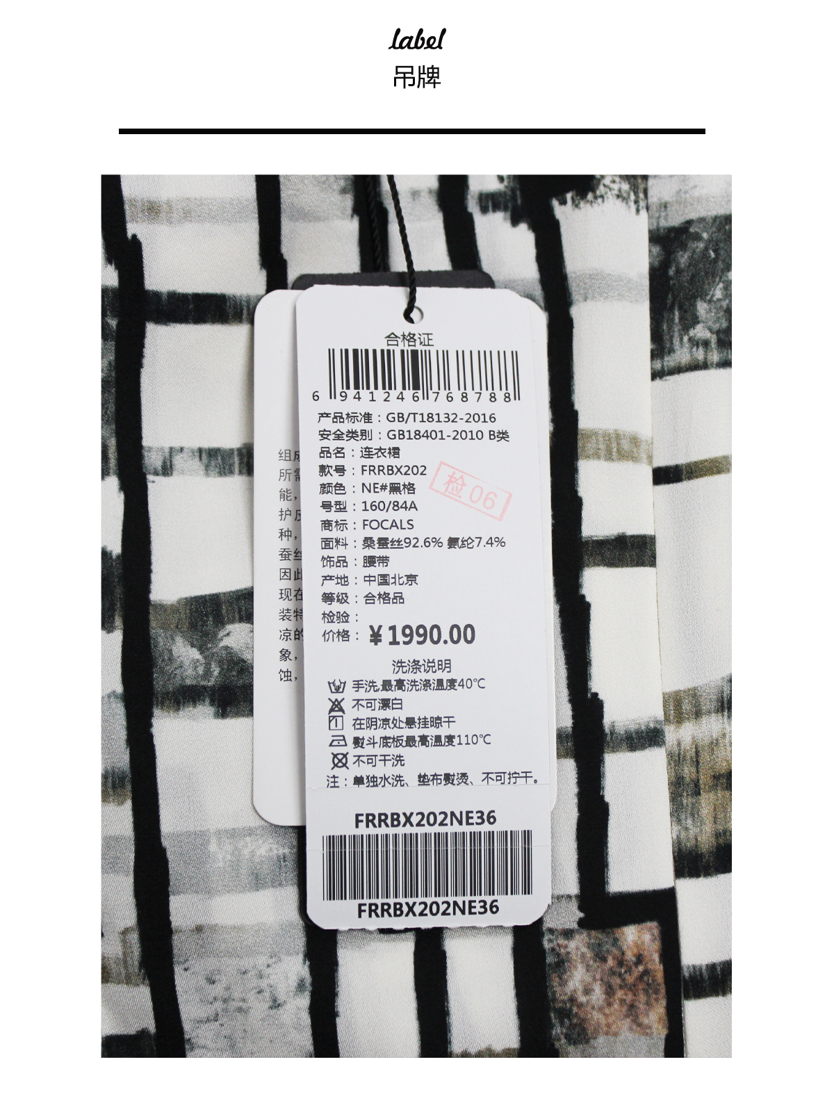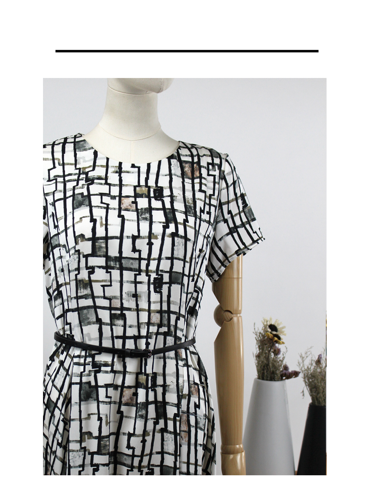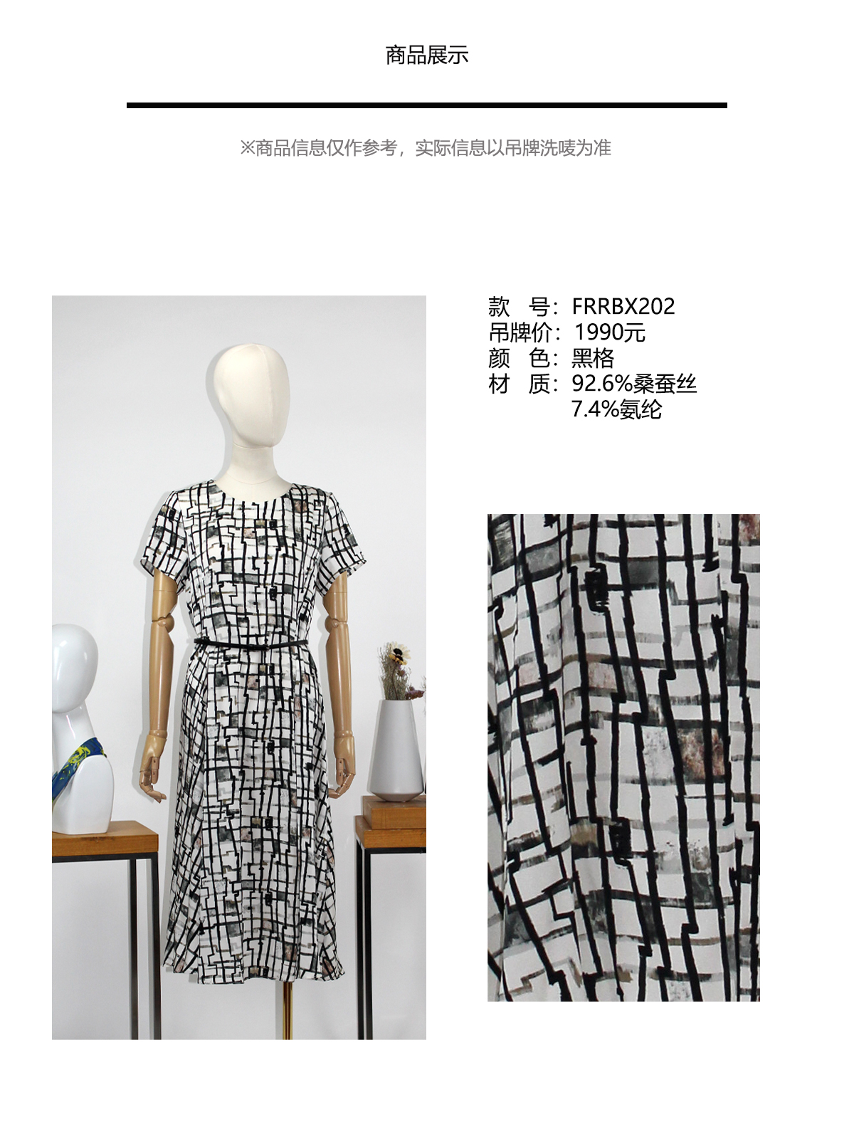 FOCALS福柯斯夏季桑蚕丝圆领短袖印花中长款连衣裙FRRBX202NE