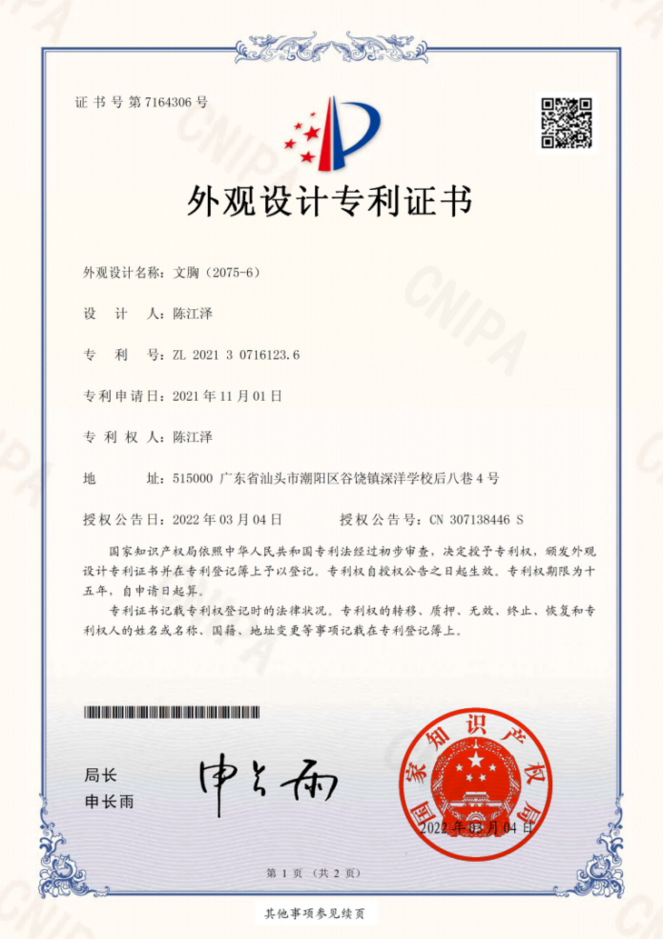 实打实地申请了「外形专利证书」!!