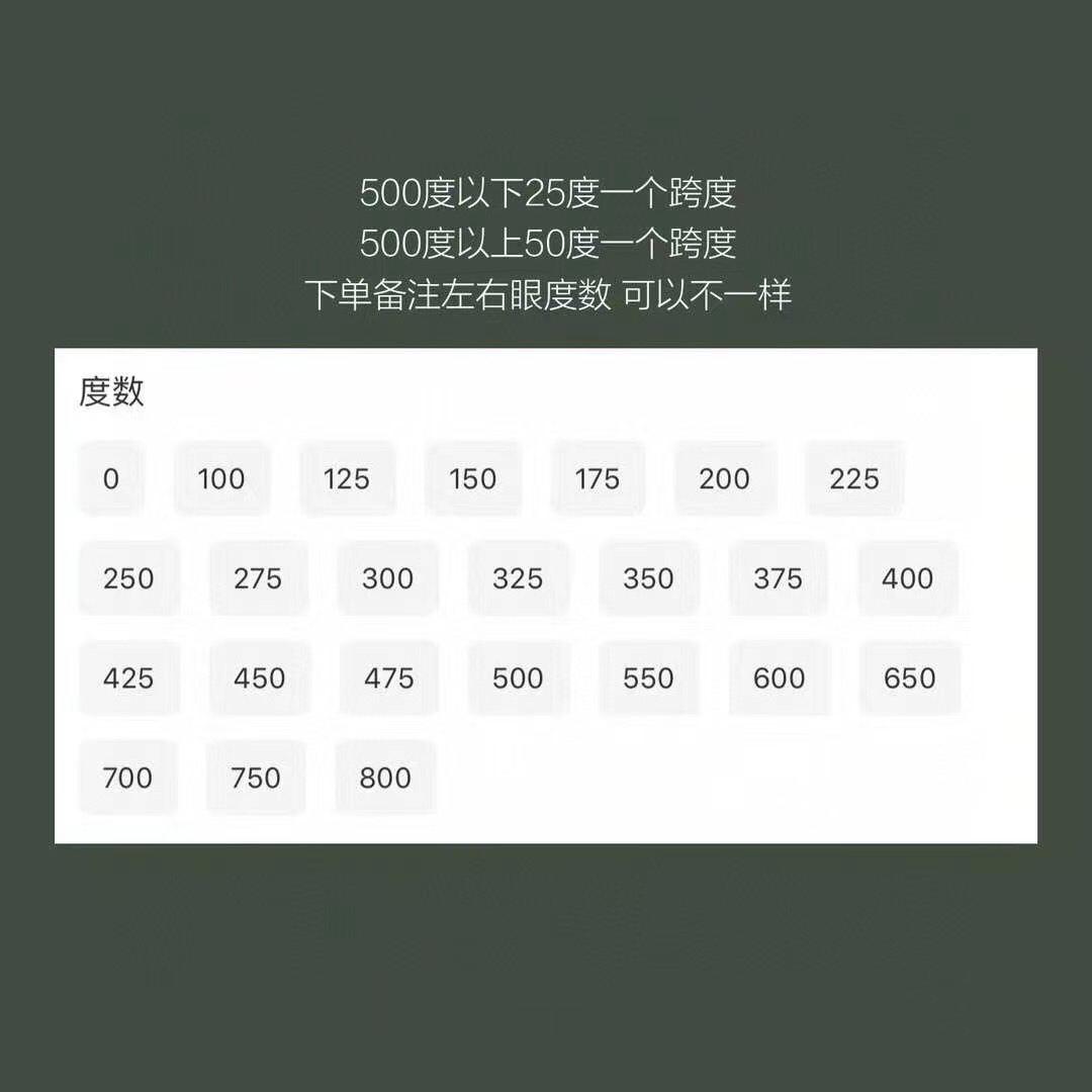 其余款式度数暂全