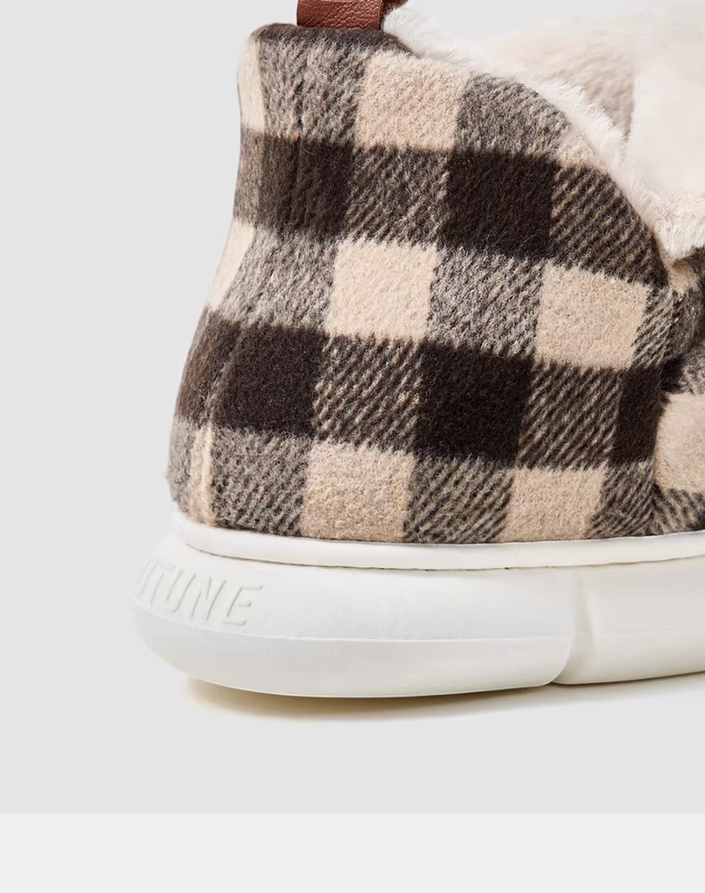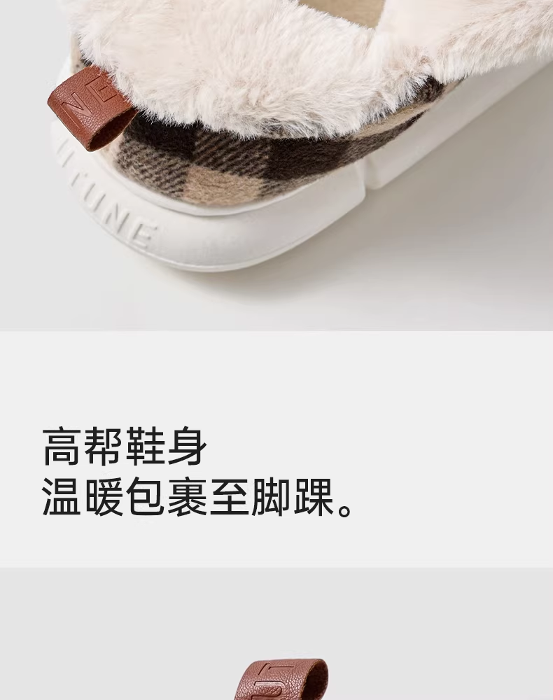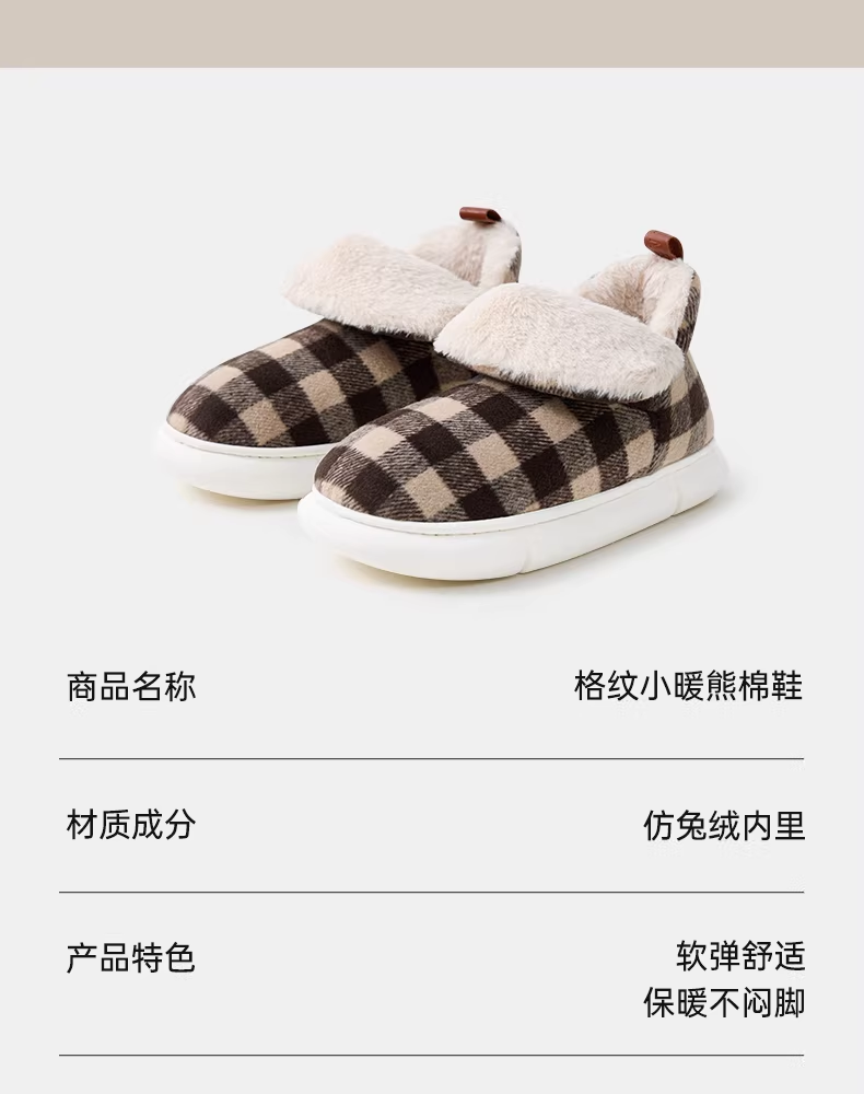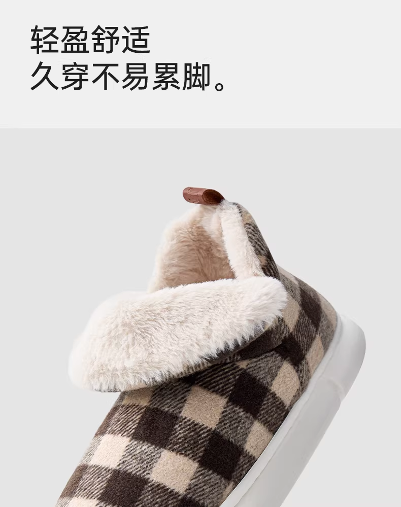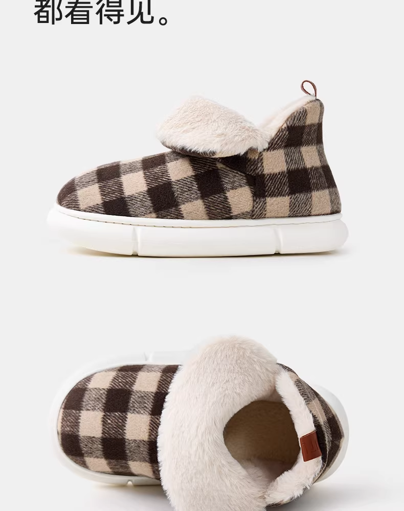 【焕新外穿棉鞋】舒适,高帮防风,卡其格、绿格纹棉拖鞋冬季室内家居,包跟棉鞋,加绒保暖,外穿高级感!