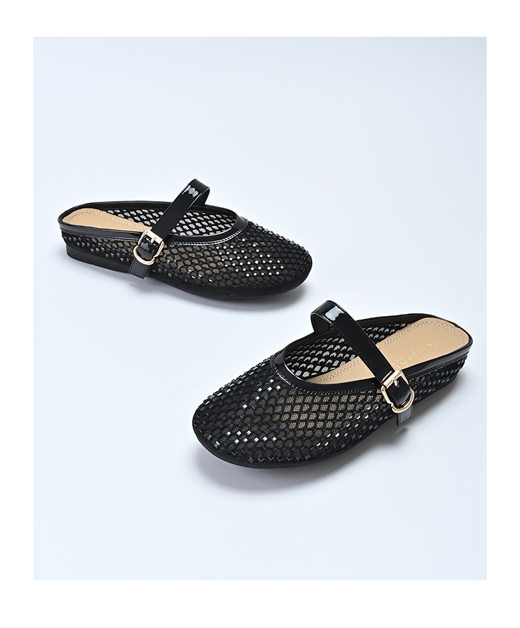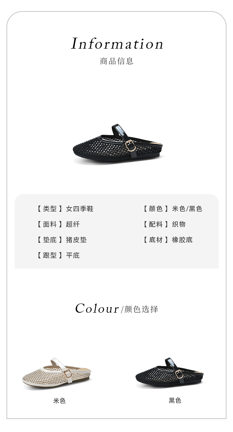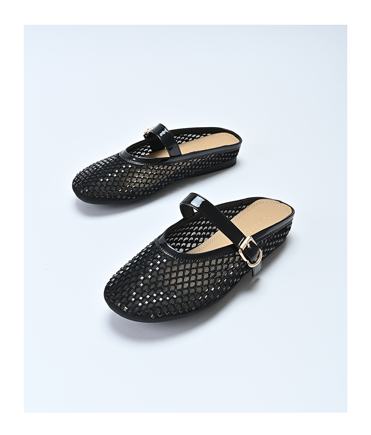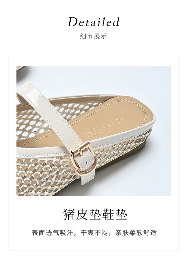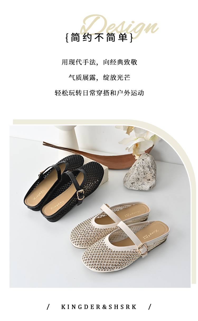 经典鲨2025年夏季款百搭圆头一字扣舒适平底室内外渔网半托鞋女KW163-529051
