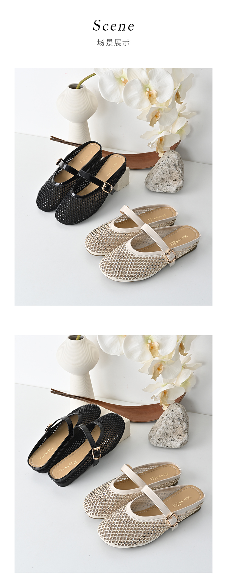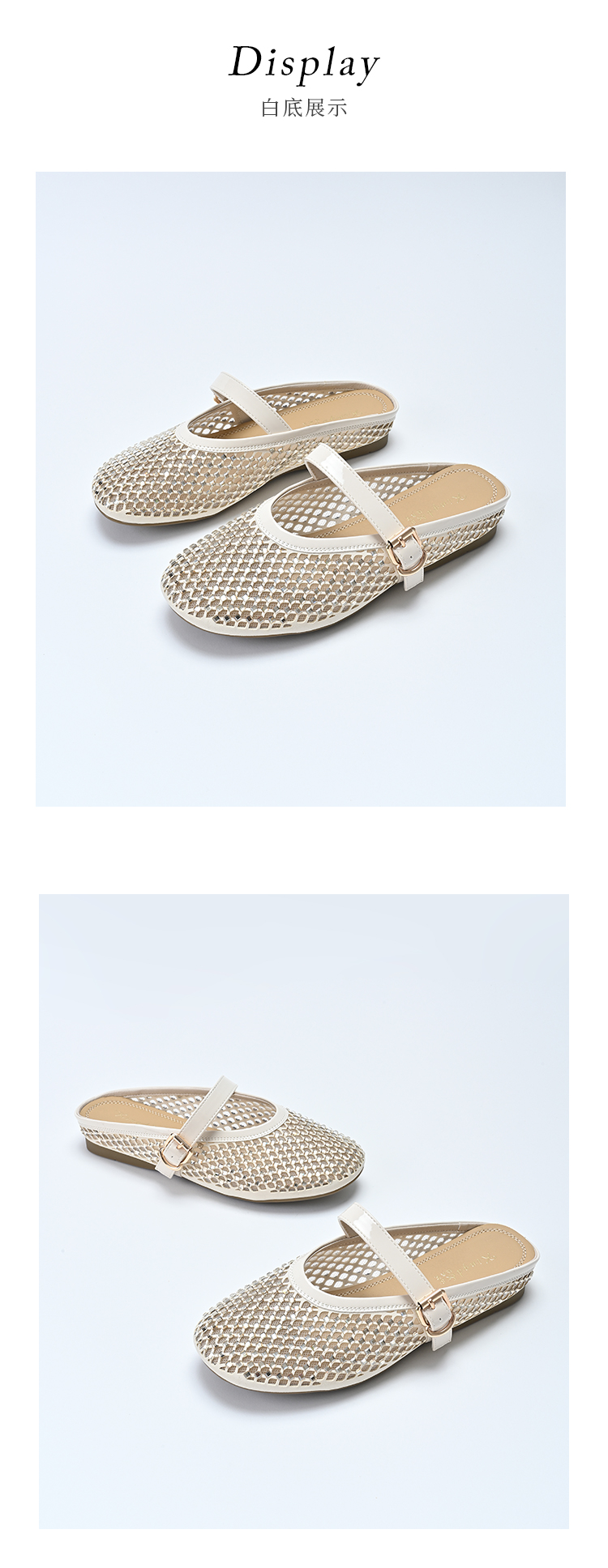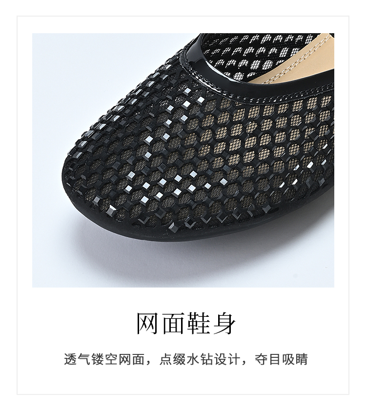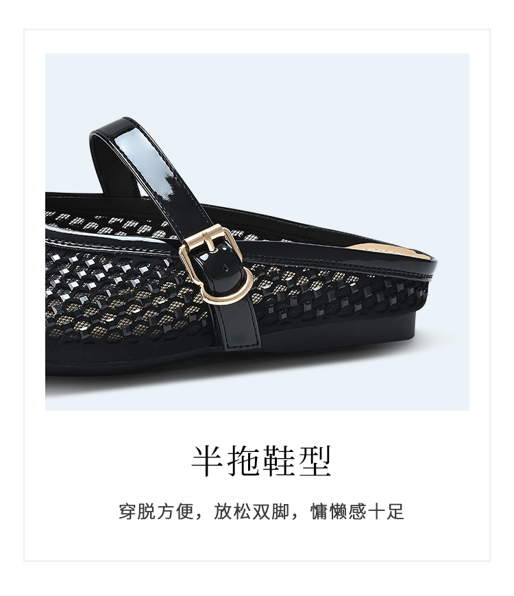 经典鲨2025年夏季款百搭圆头一字扣舒适平底室内外渔网半托鞋女KW163-529051
