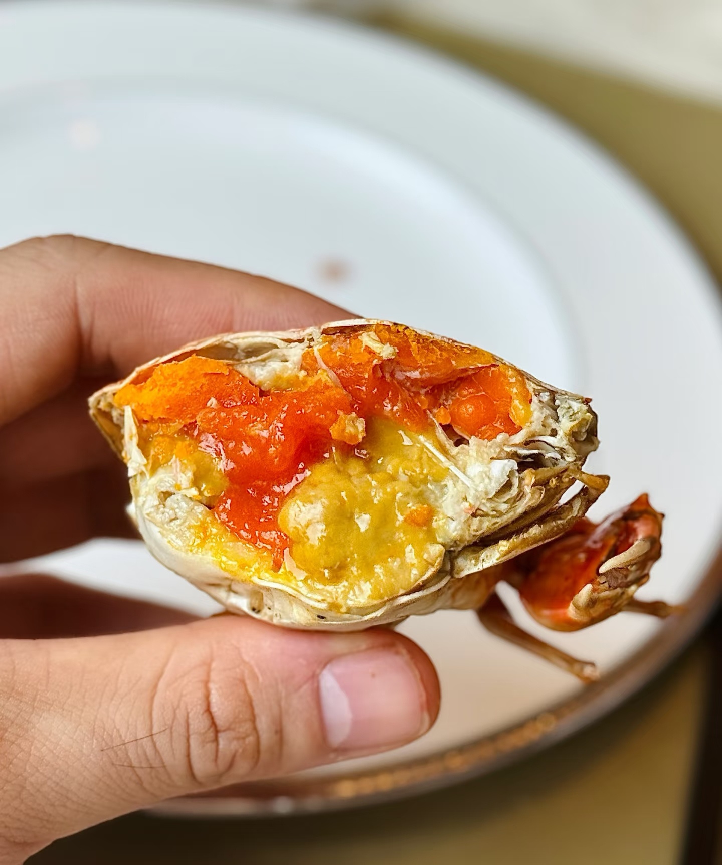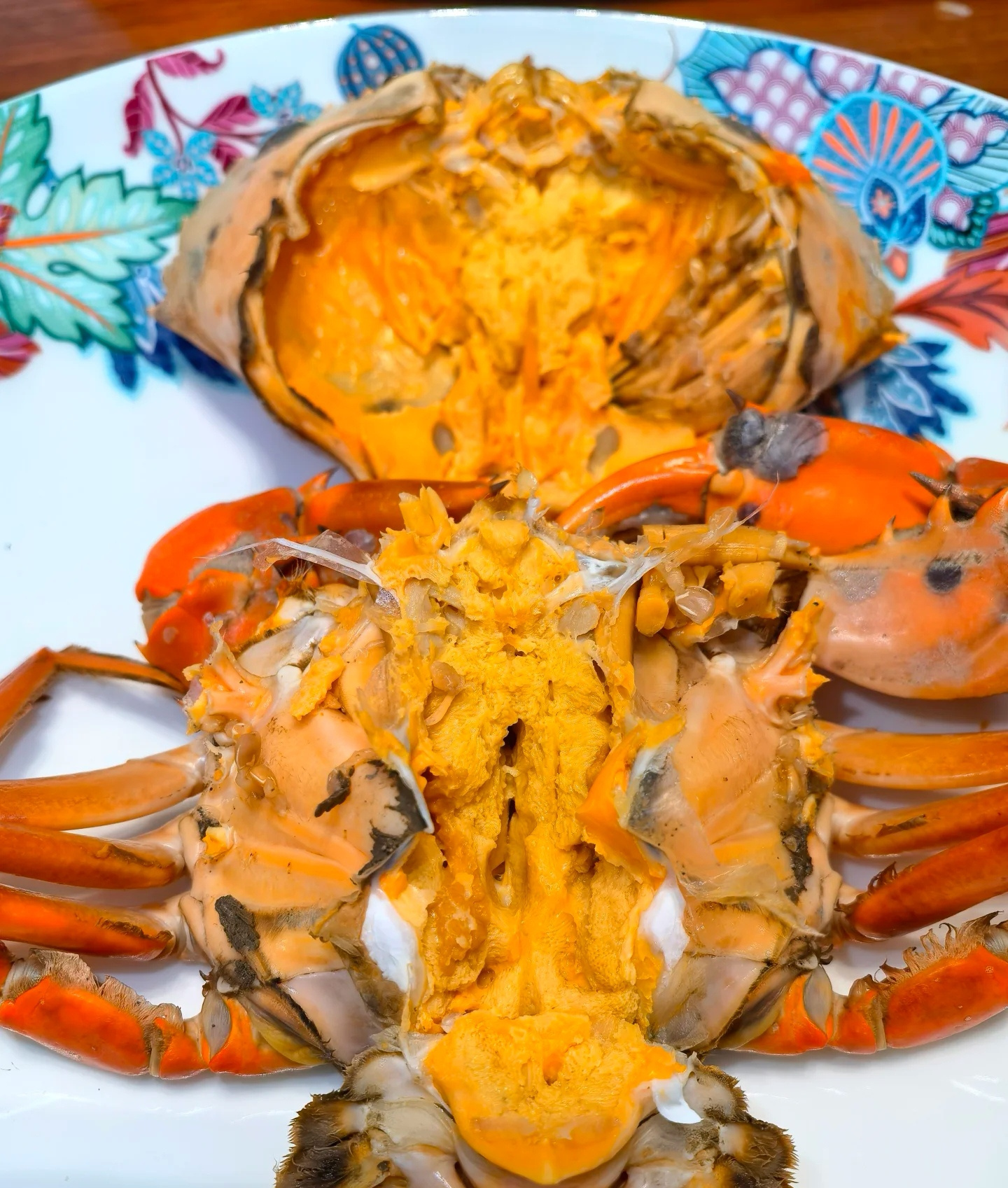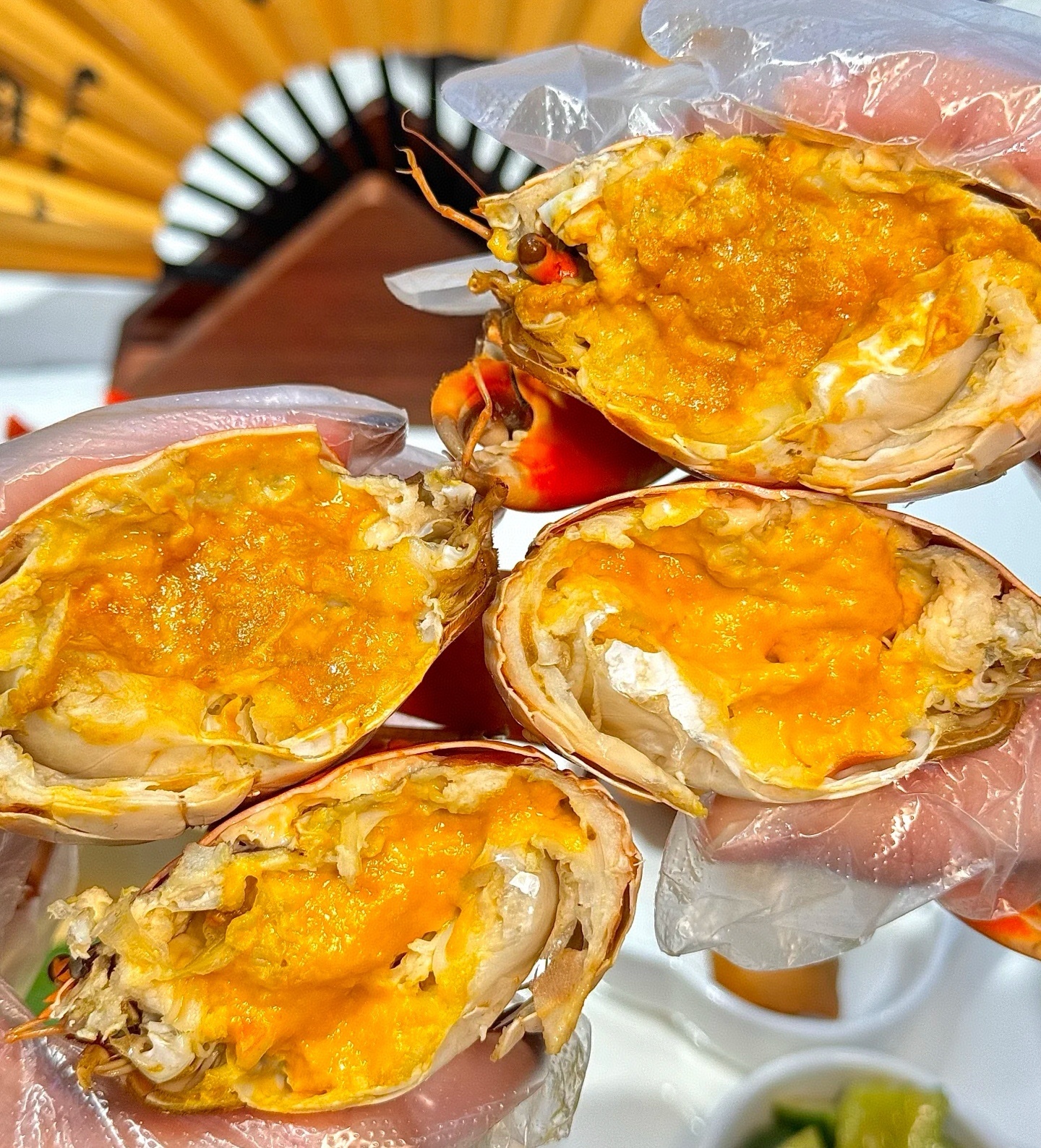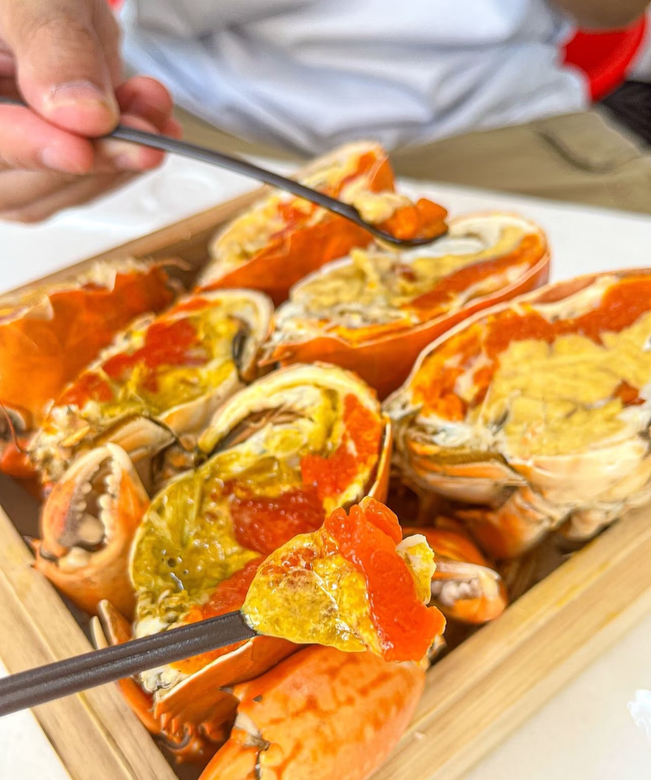 膏满油滑,入口即化,蟹膏丰富,油脂饱满,口感滑嫩。鲜甜交融,既有蟹肉的鲜嫩,又有蟹膏的醇厚,让人一试难忘。
