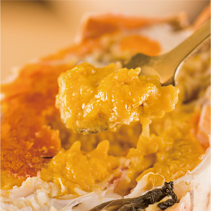 蟹膏呈金黄色,色泽诱人,食欲大增。