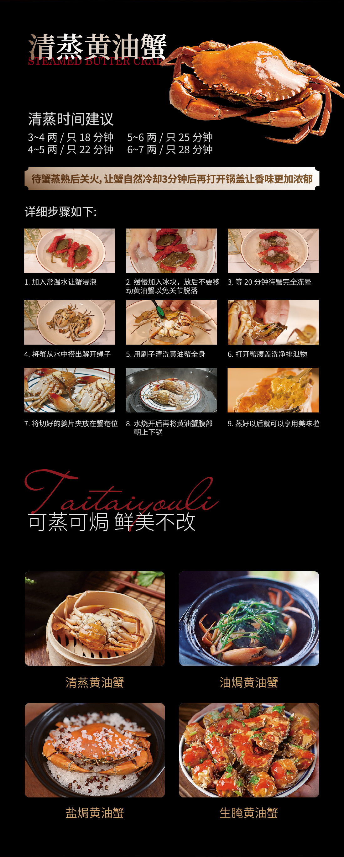 🌟3两规格:小巧精致,一人食刚刚好。虽说个头不大,但膏油比例相当优秀,满满都是精华,轻松实现黄油蟹自由,性价比超高!像2588型,6只装,一家人围坐,一起品尝,超有氛围。