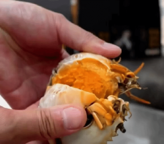 因为没有办法完成褪壳,因此蟹膏会慢慢的聚集在腹部,再经过太阳和水的共同作用之下,这些蟹膏会流遍螃蟹的全身,导致螃蟹的全身肉质都变黄,
