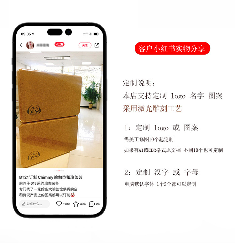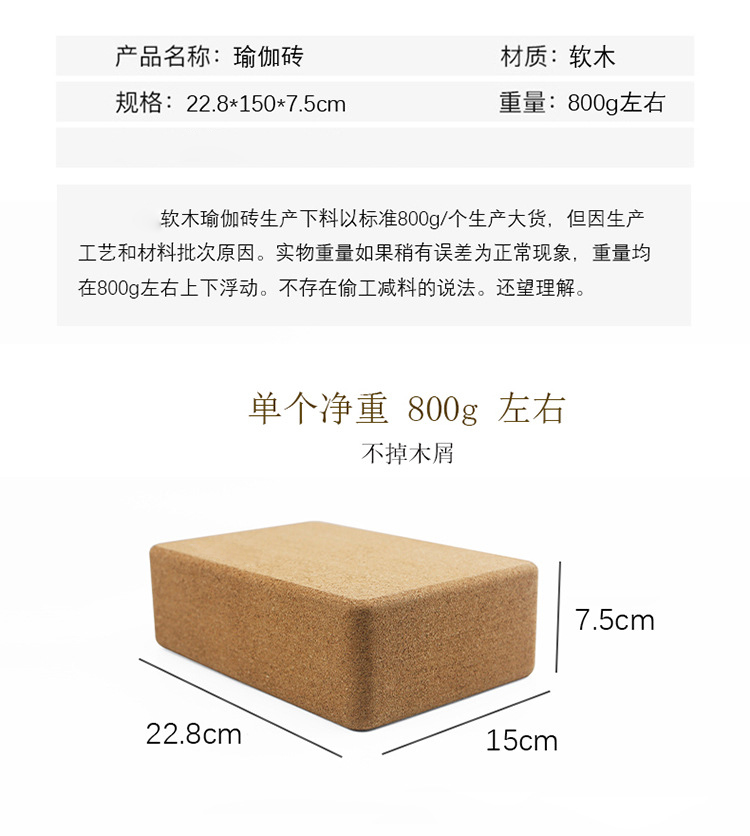 【昊达源选】软木瑜伽砖高密软木砖瑜珈软木砖瑜伽辅助不掉屑可做LOGO名字