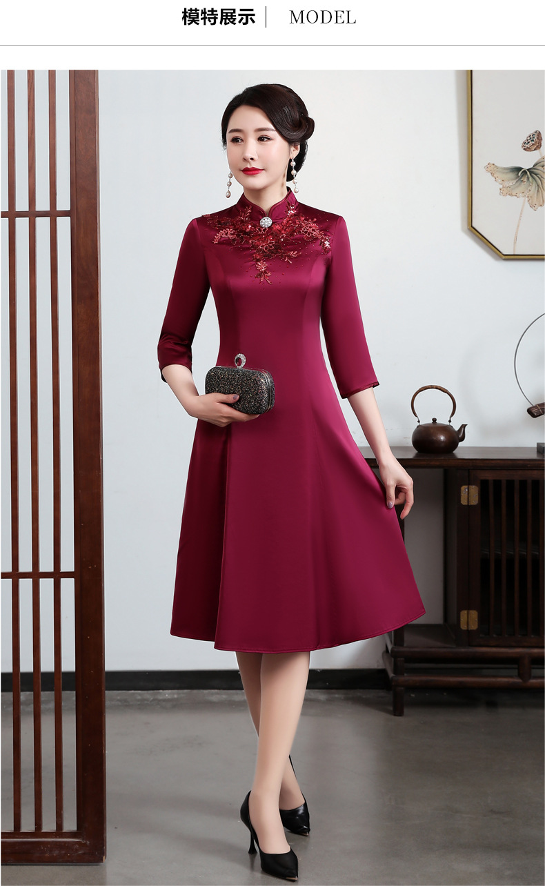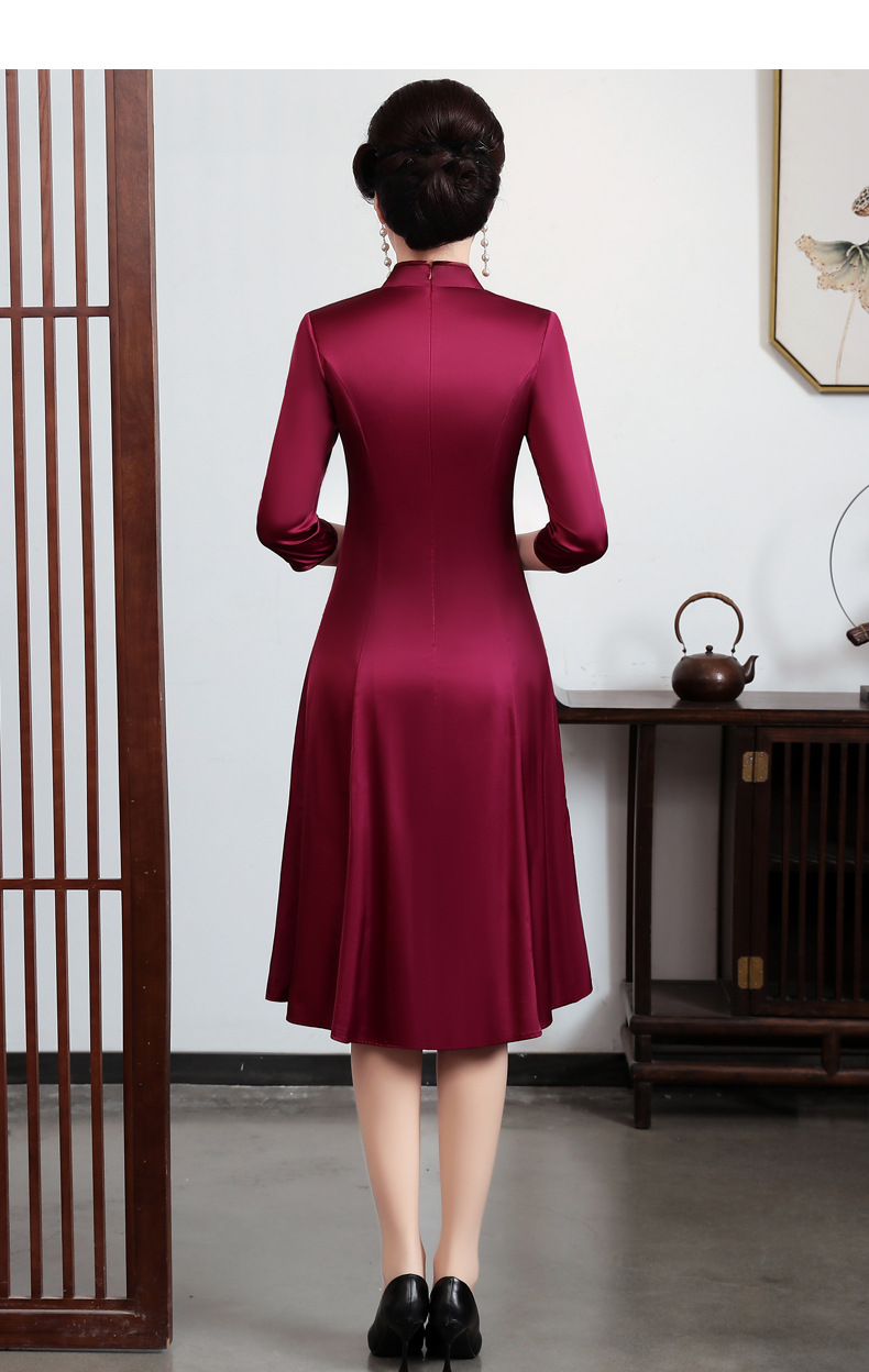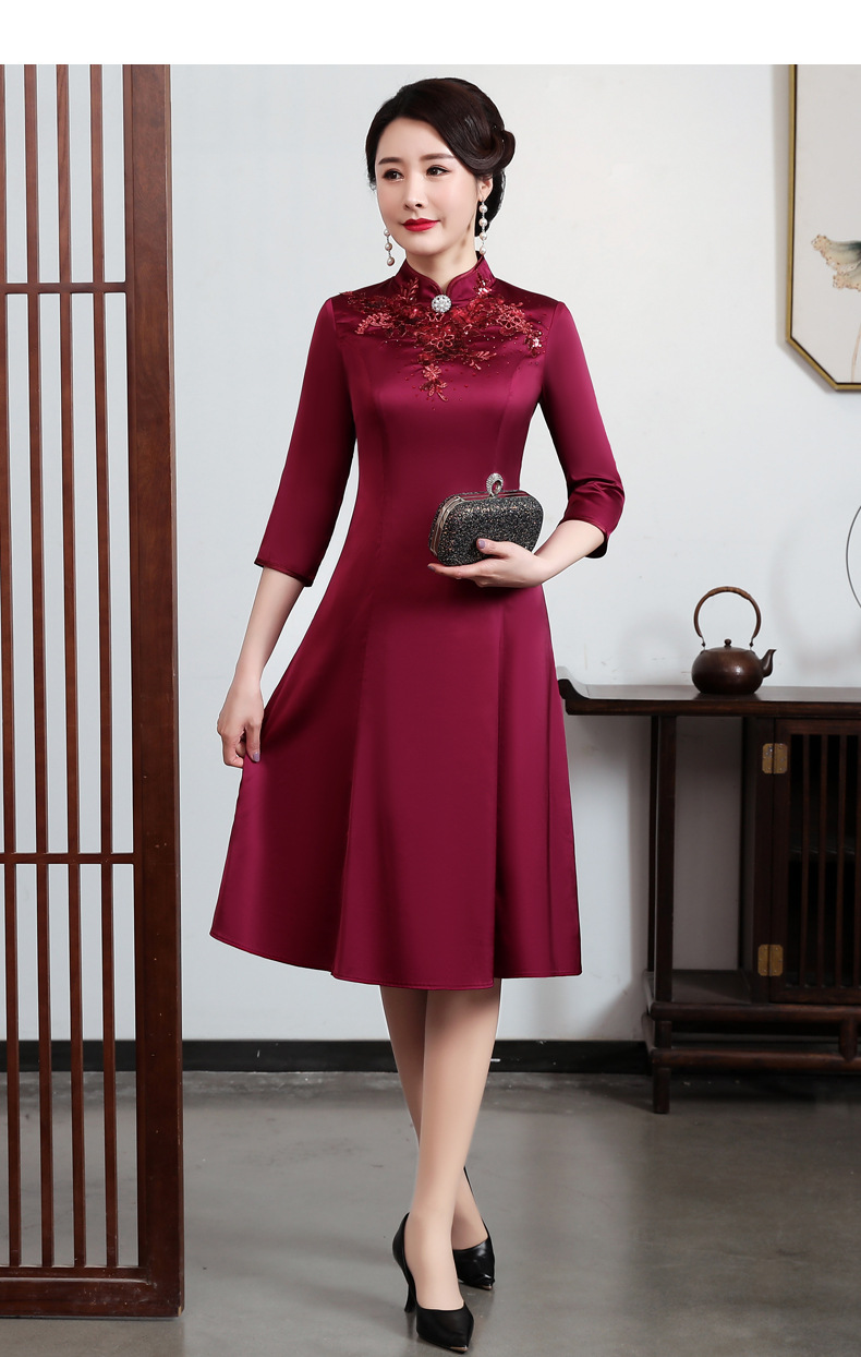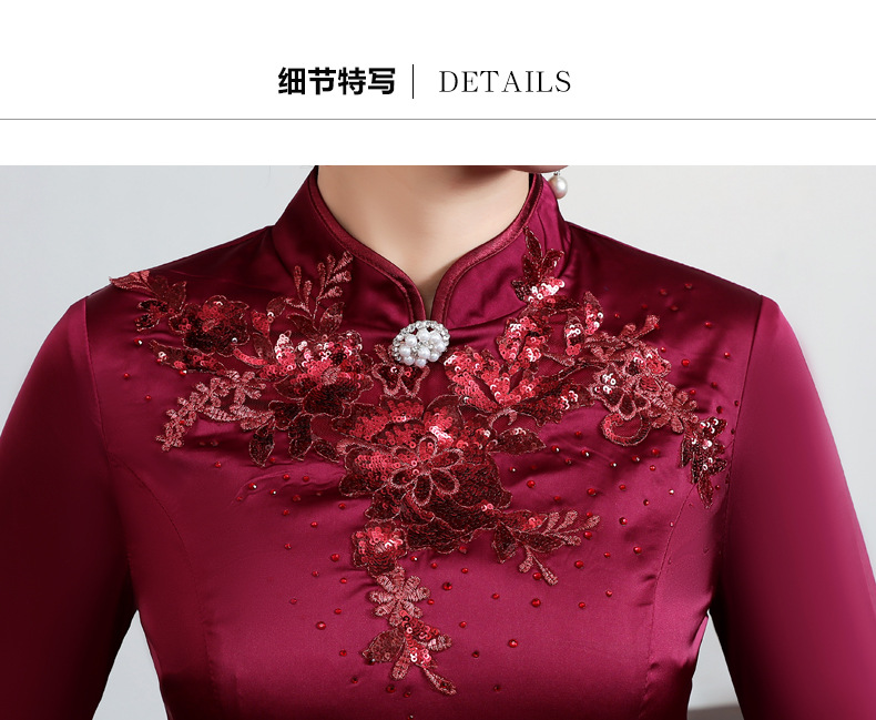 上海旗袍厂JC-JY5037春季新款婚宴婚礼喜庆红色喜婆婆气质修身妈妈装连衣裙