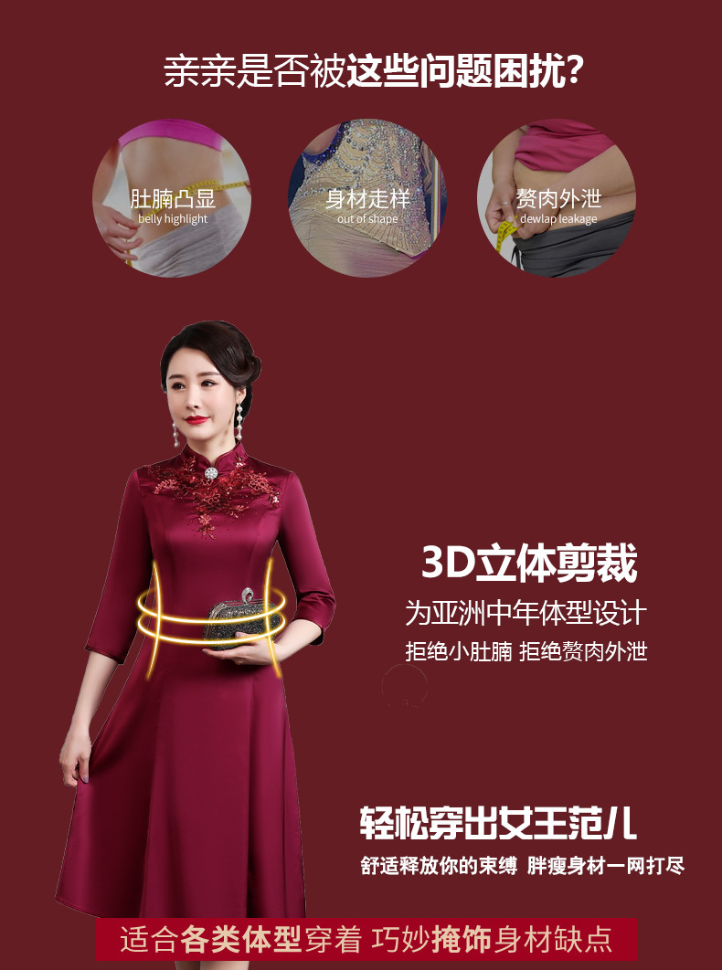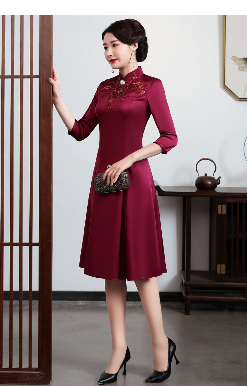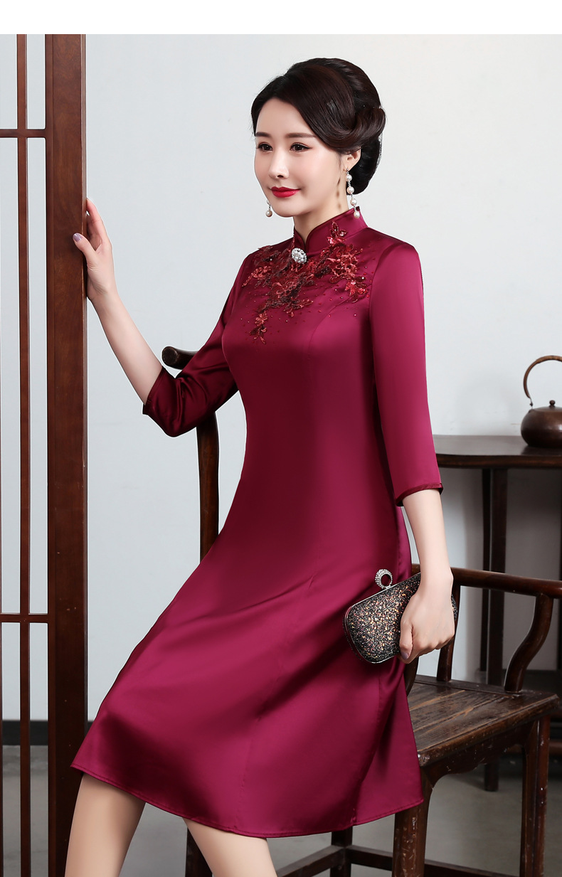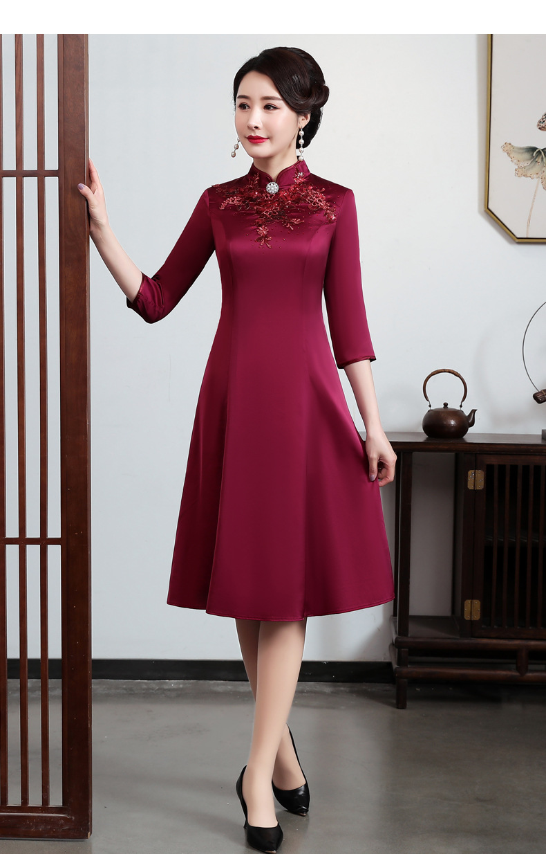 上海旗袍厂JC-JY5037春季新款婚宴婚礼喜庆红色喜婆婆气质修身妈妈装连衣裙