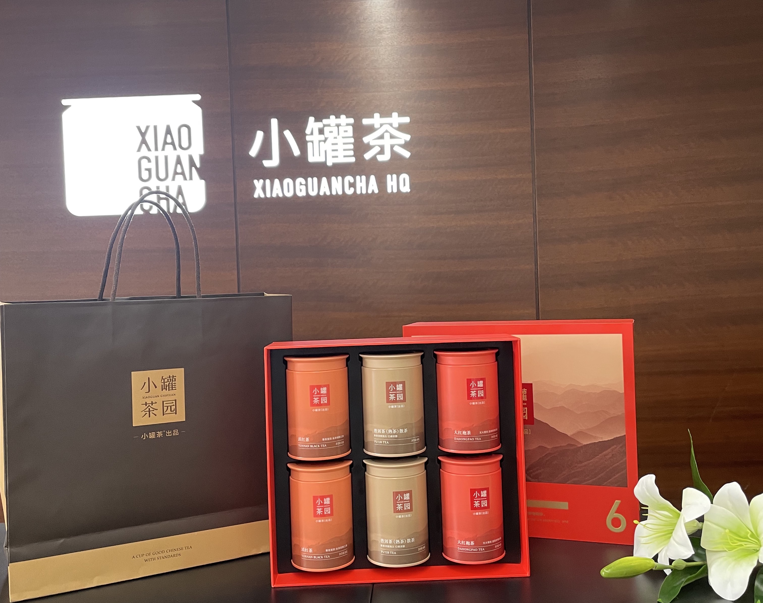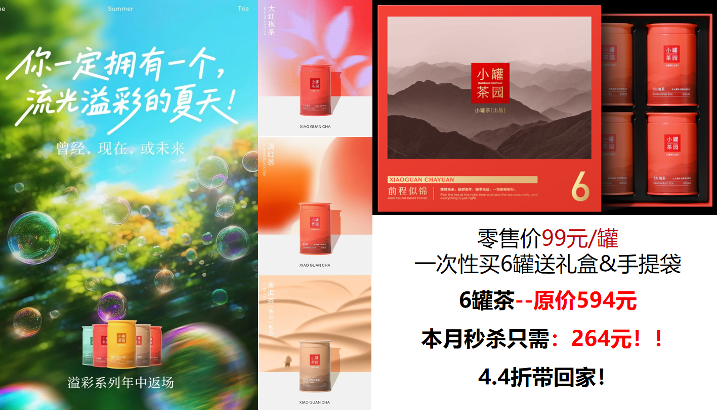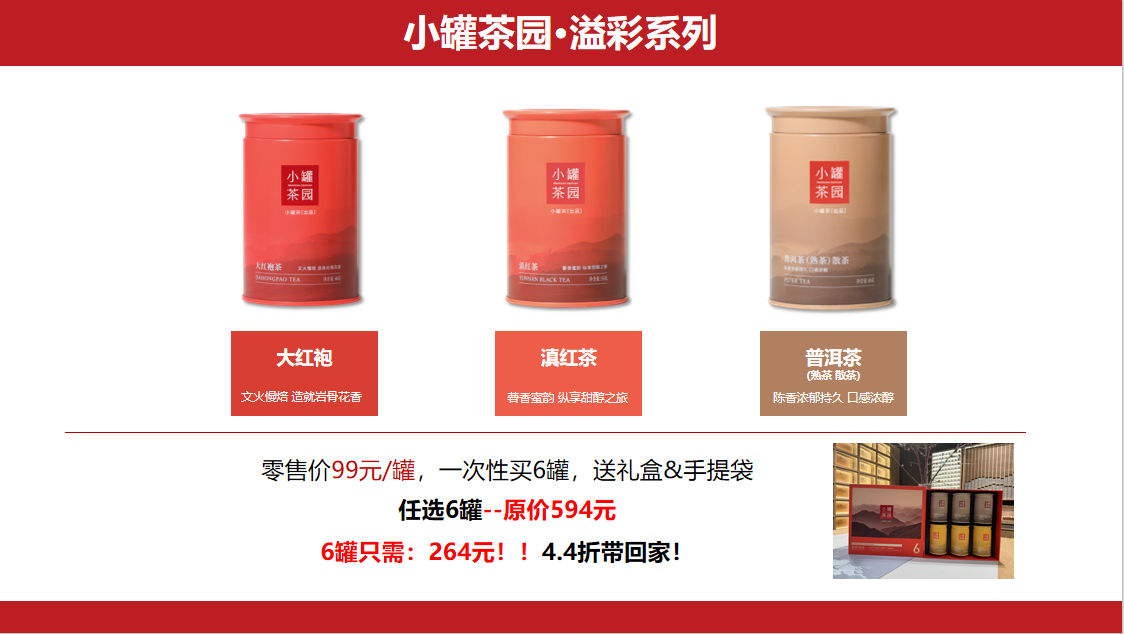 小罐茶园溢彩系列普洱熟茶60g2罐+大红袍茶40g2罐+滇红茶55g2罐【发中通物流】搭配咖色礼盒和手提袋哦适合自饮和送人