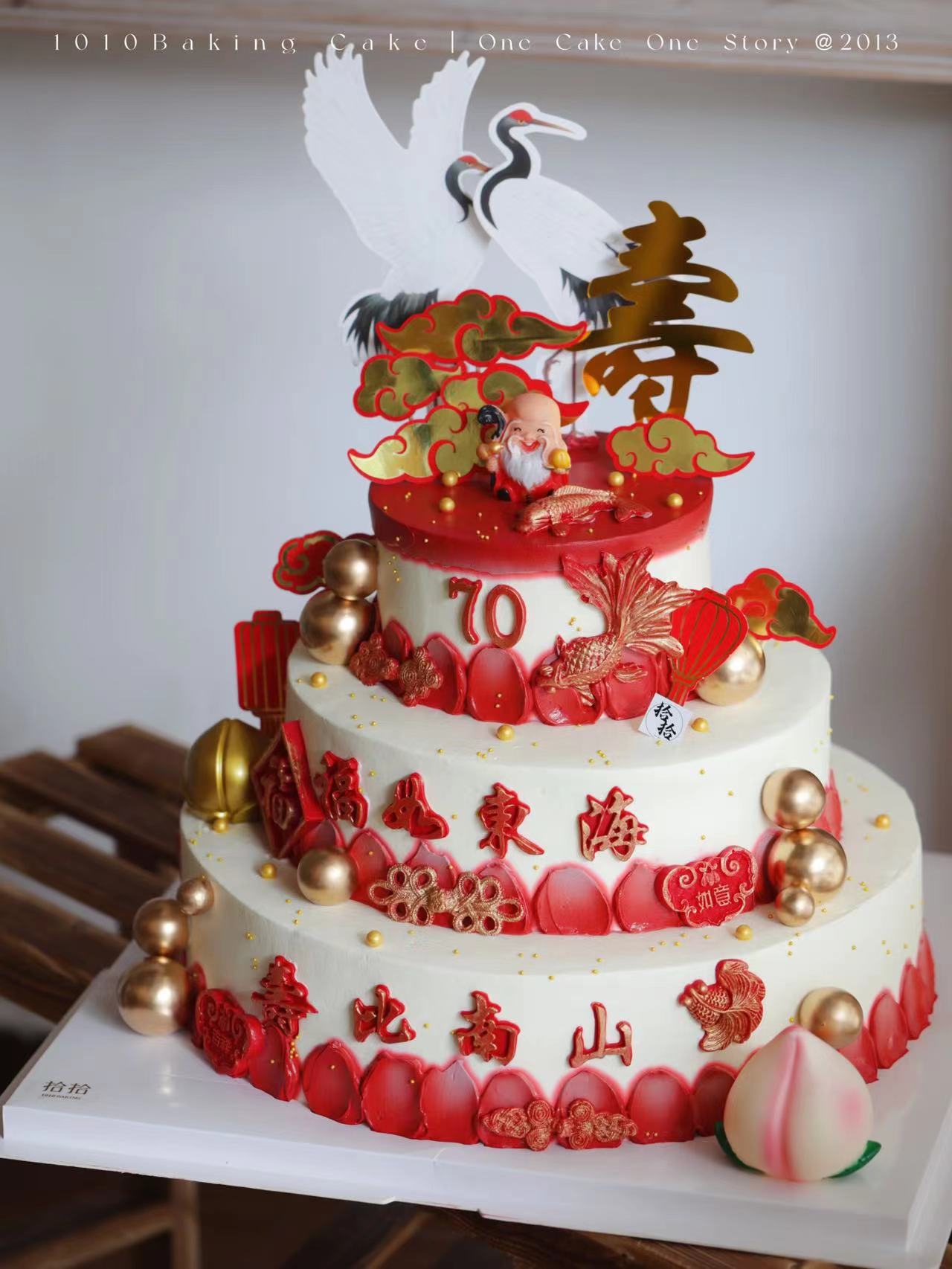 「鹤寿添庚,福如东海」锦鲤寿桃来祝寿·100%动物奶油(附图6+10+14寸三层·提前48小时预订)