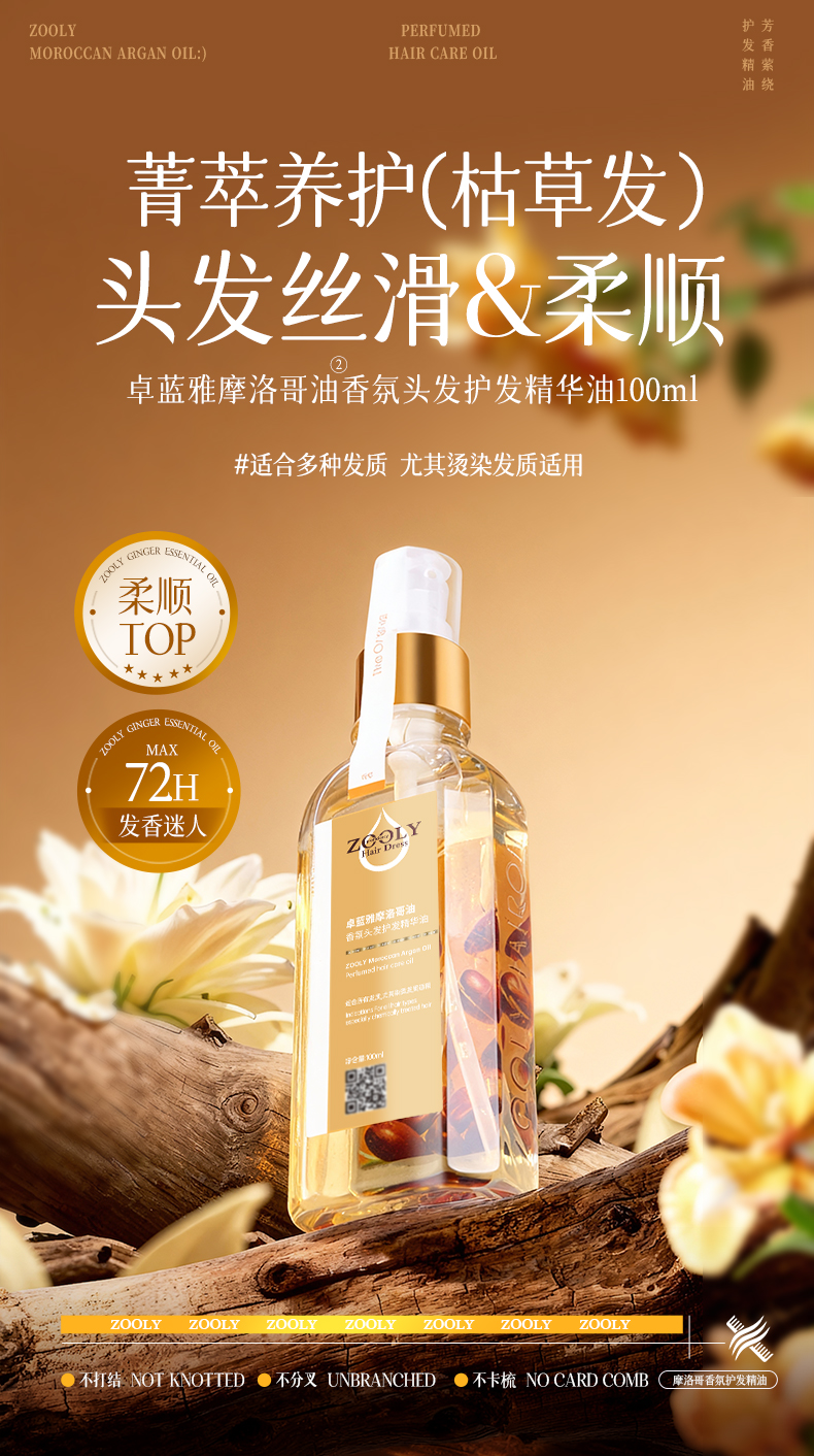 【质地浓郁 密集修护】卓蓝雅摩洛哥坚果油香氛护发精油100ml/200ml 烫染修护 强韧发丝