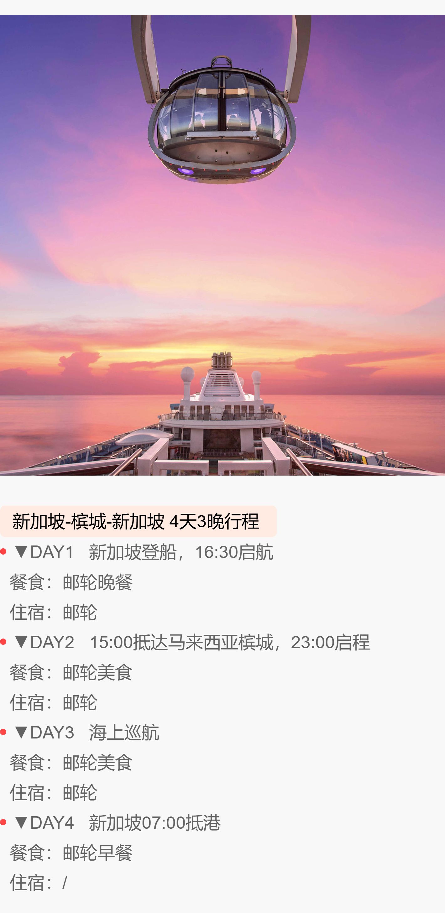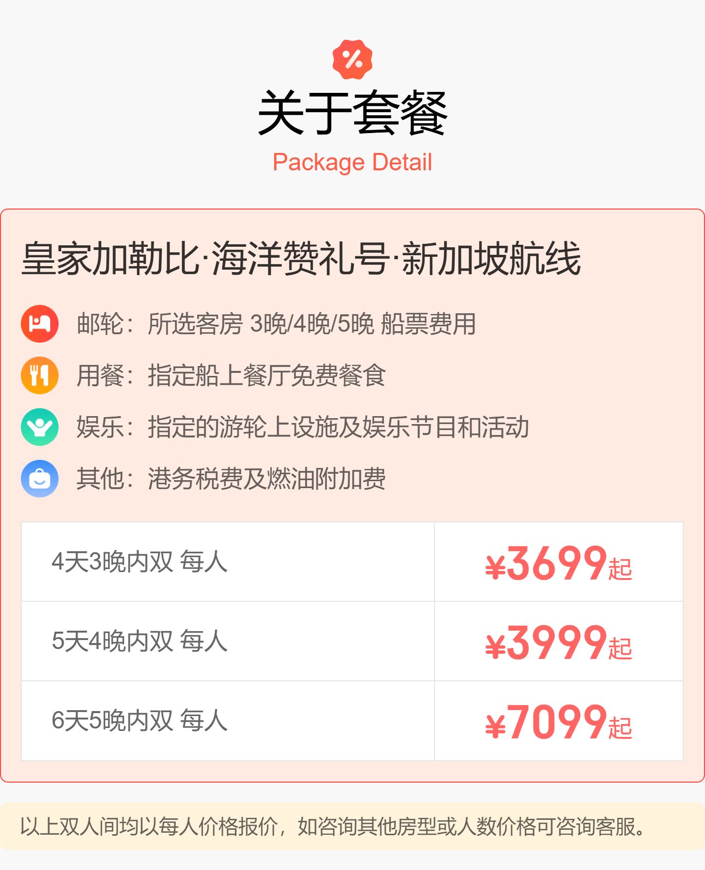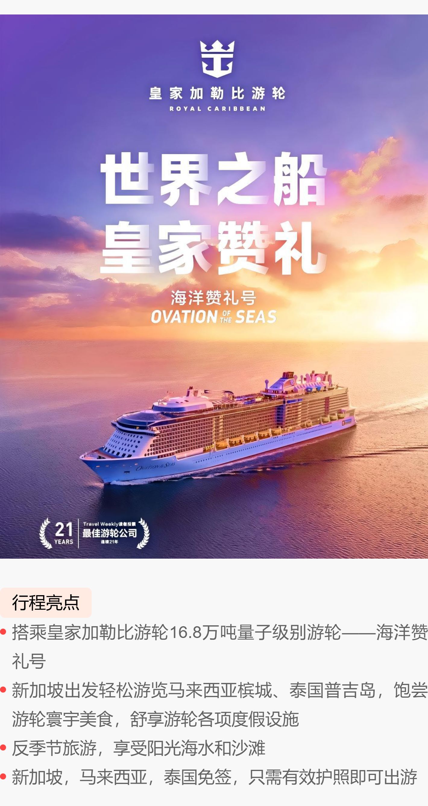 3晚/4晚/5晚【皇家加勒比邮轮·海洋赞礼号·新加坡航线】多航程可选,春节海上过大年,娱乐设施超丰富,免签省心,家庭出游的不二之选~