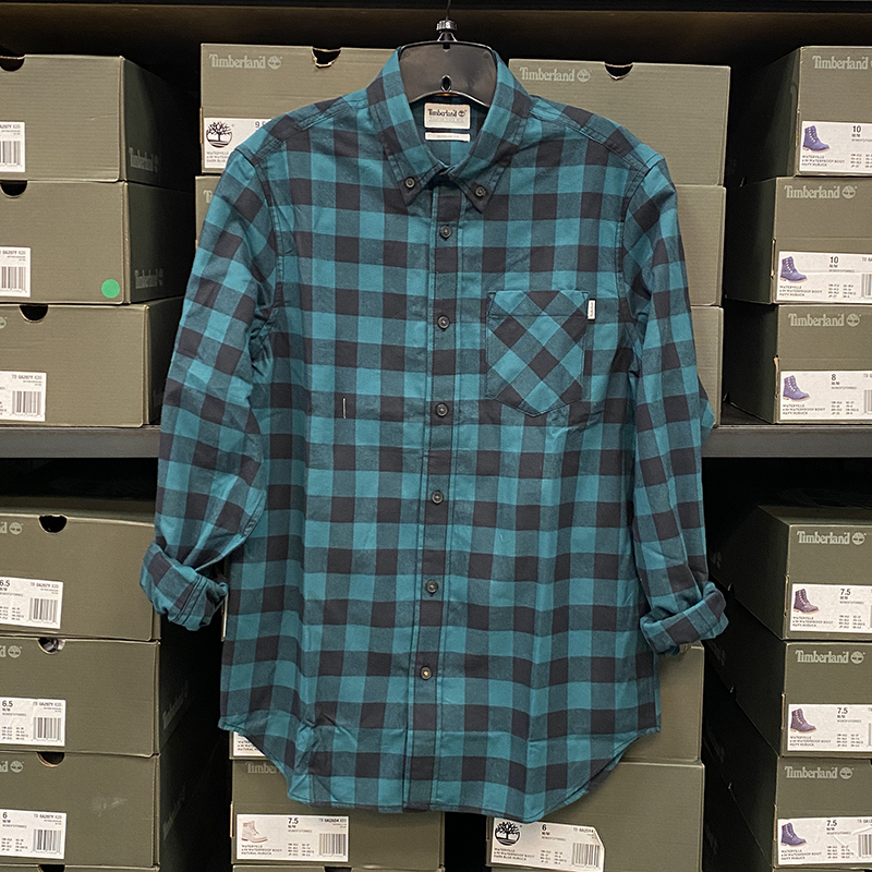 纽约大宝 Timberland/添柏岚 男格子扣领纯棉长袖衬衫