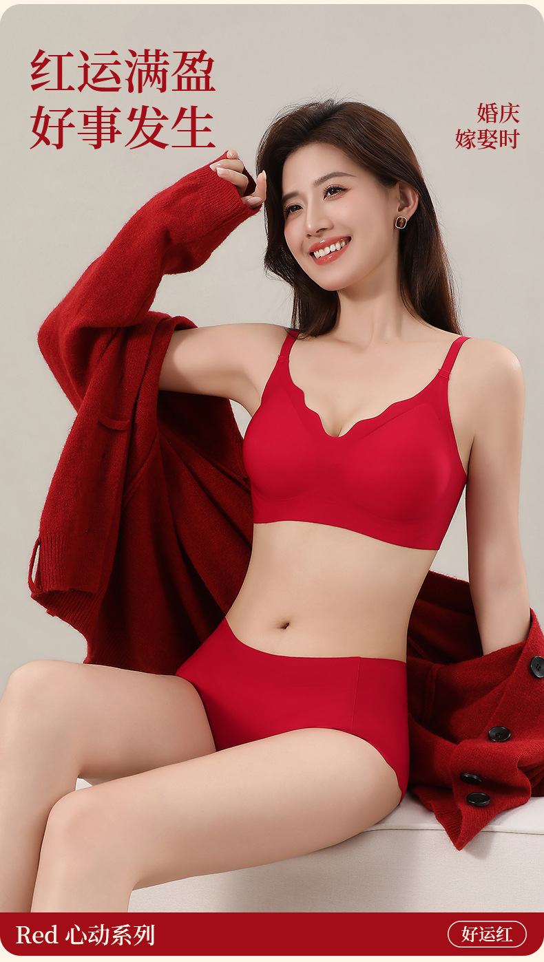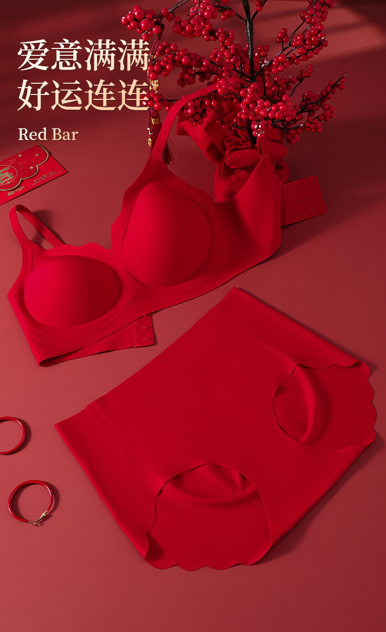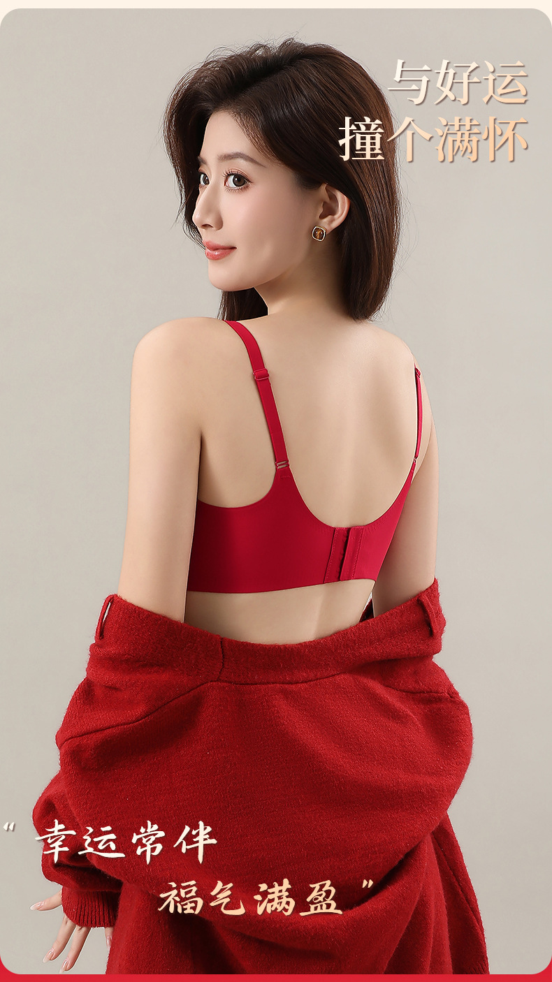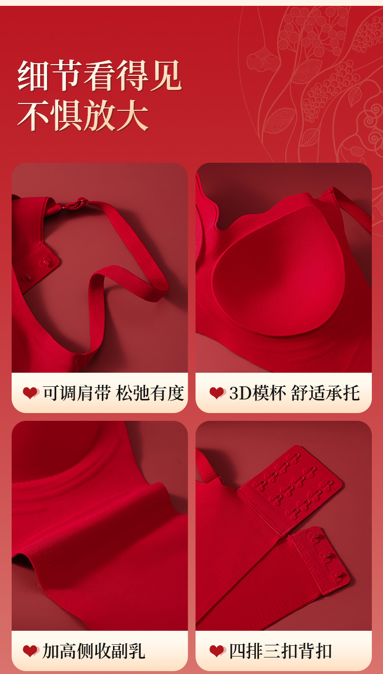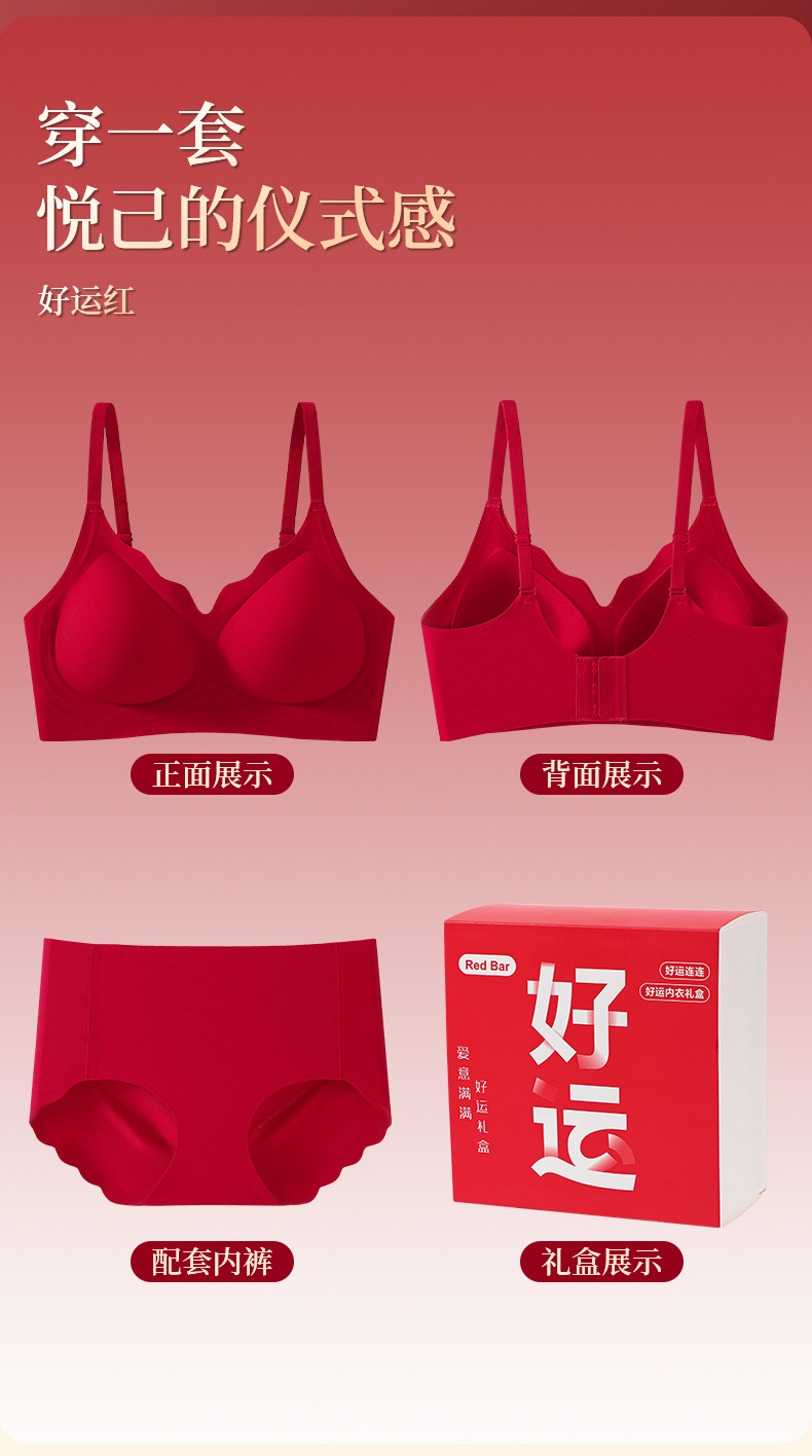 【全年幸运❗️大红色内衣套装】成套穿好运翻番,3D模杯W软支撑舒适承托,加高侧收副乳,四排三扣背扣,可调肩带松弛有度,小胸聚拢防下垂新娘结婚礼盒新年好运文胸QQ