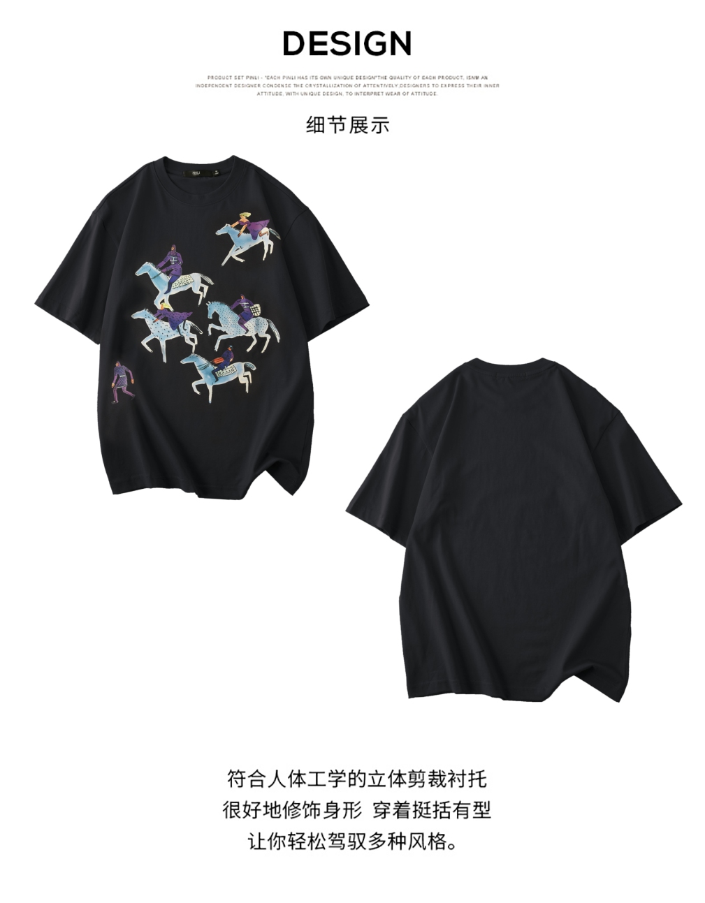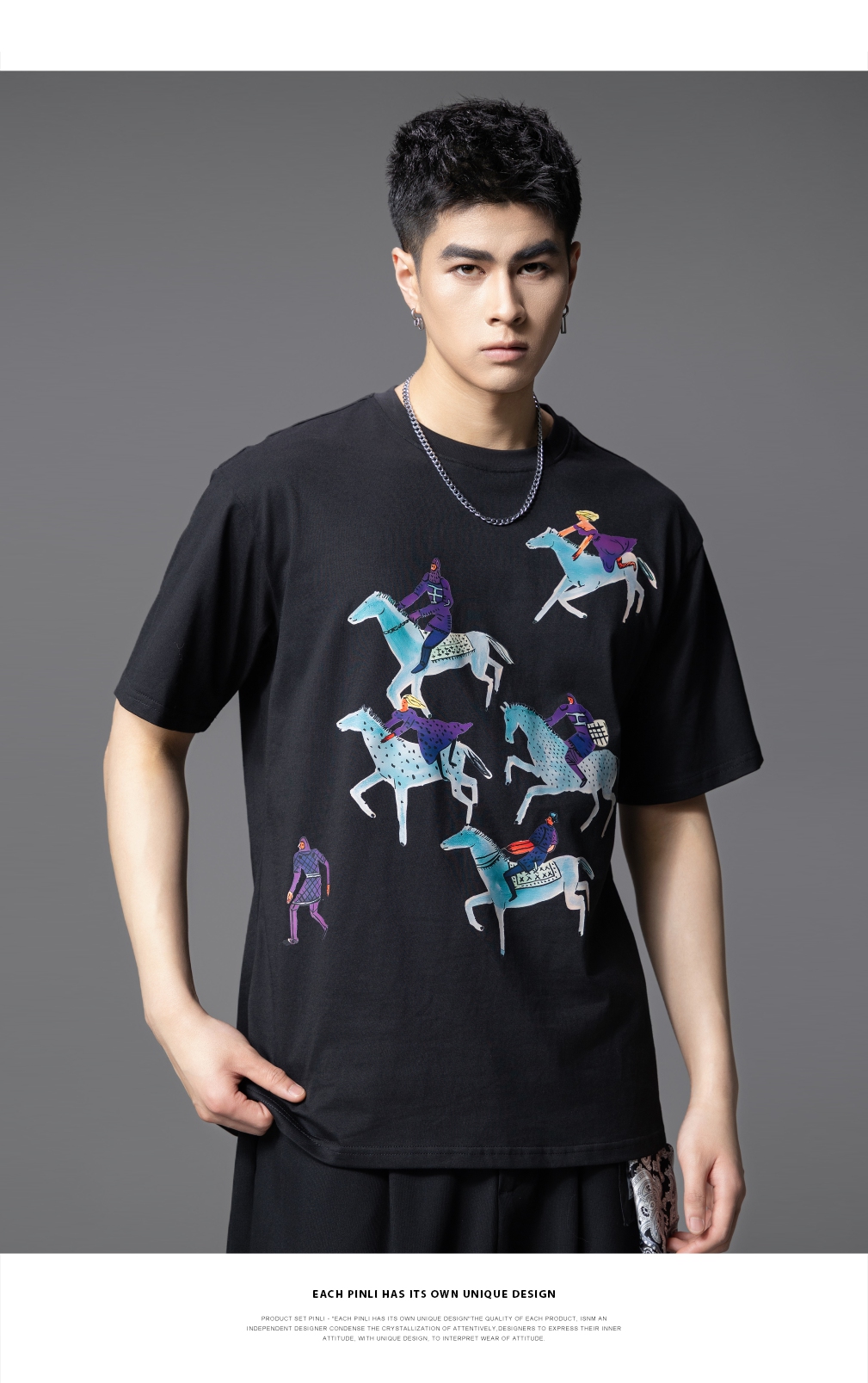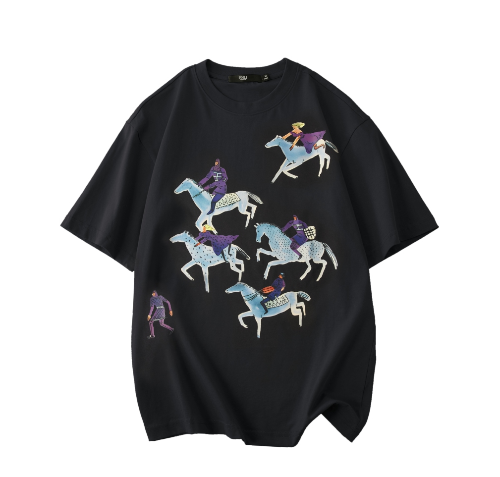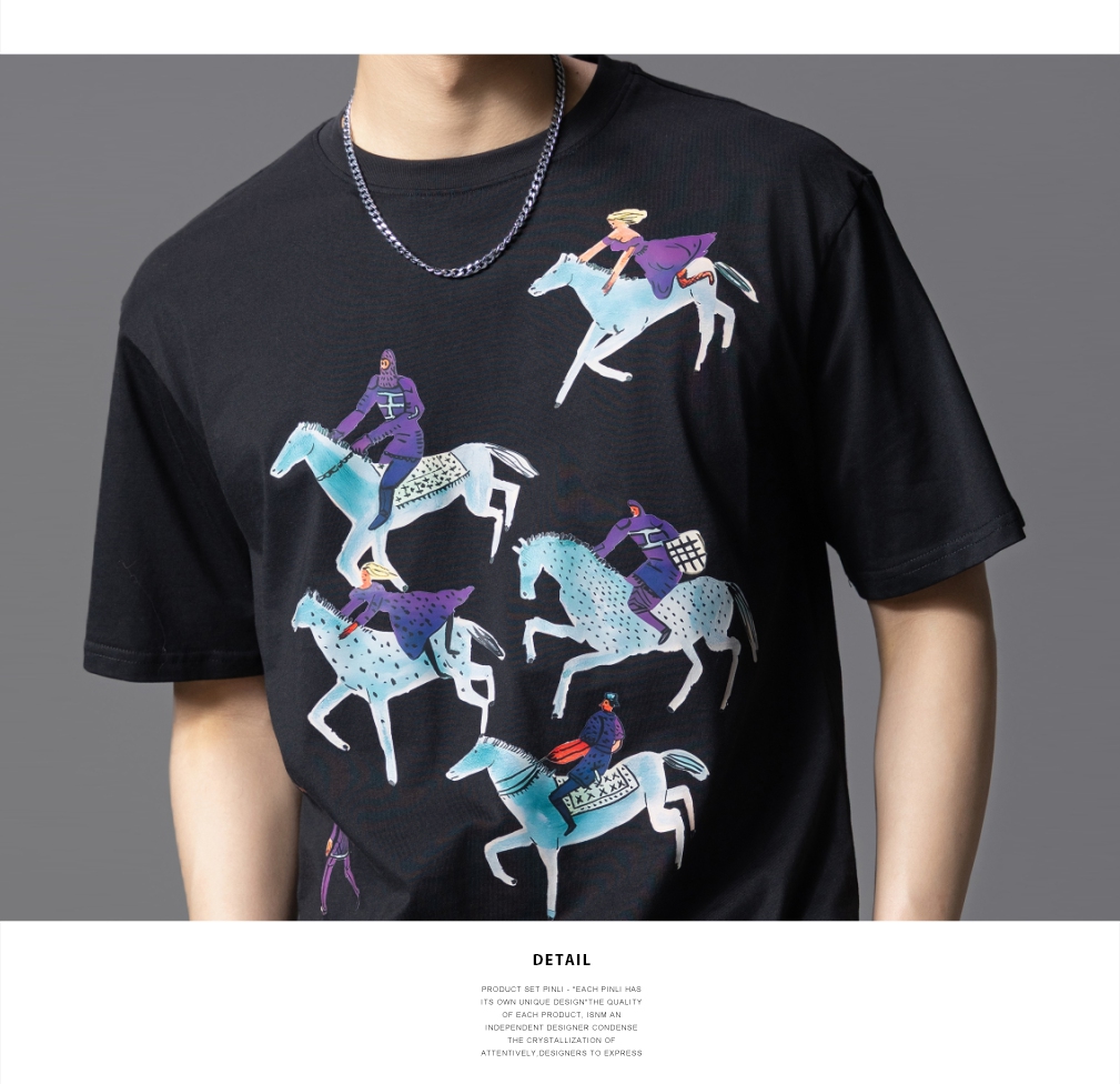 PINLI品立2025夏季新款创意烫画休闲短袖T恤男士潮牌纯棉体恤上衣BG252111023