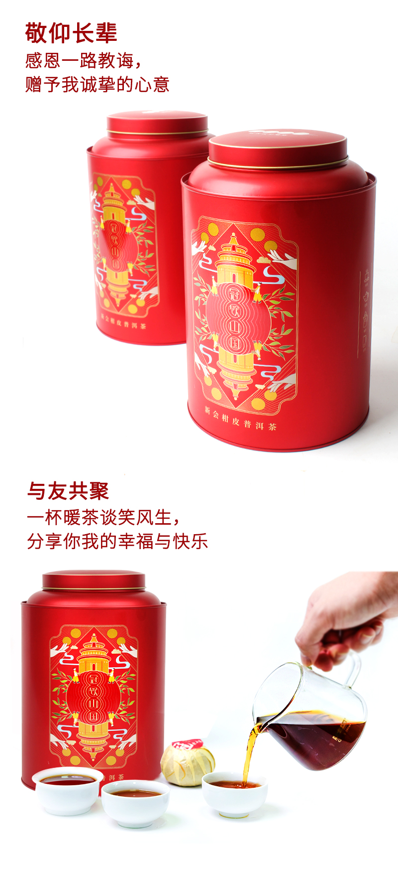 冠饮山国 正宗新会大红柑柑普茶生晒天马柑橘 柑天下陈皮普洱茶熟茶叶500g礼盒装