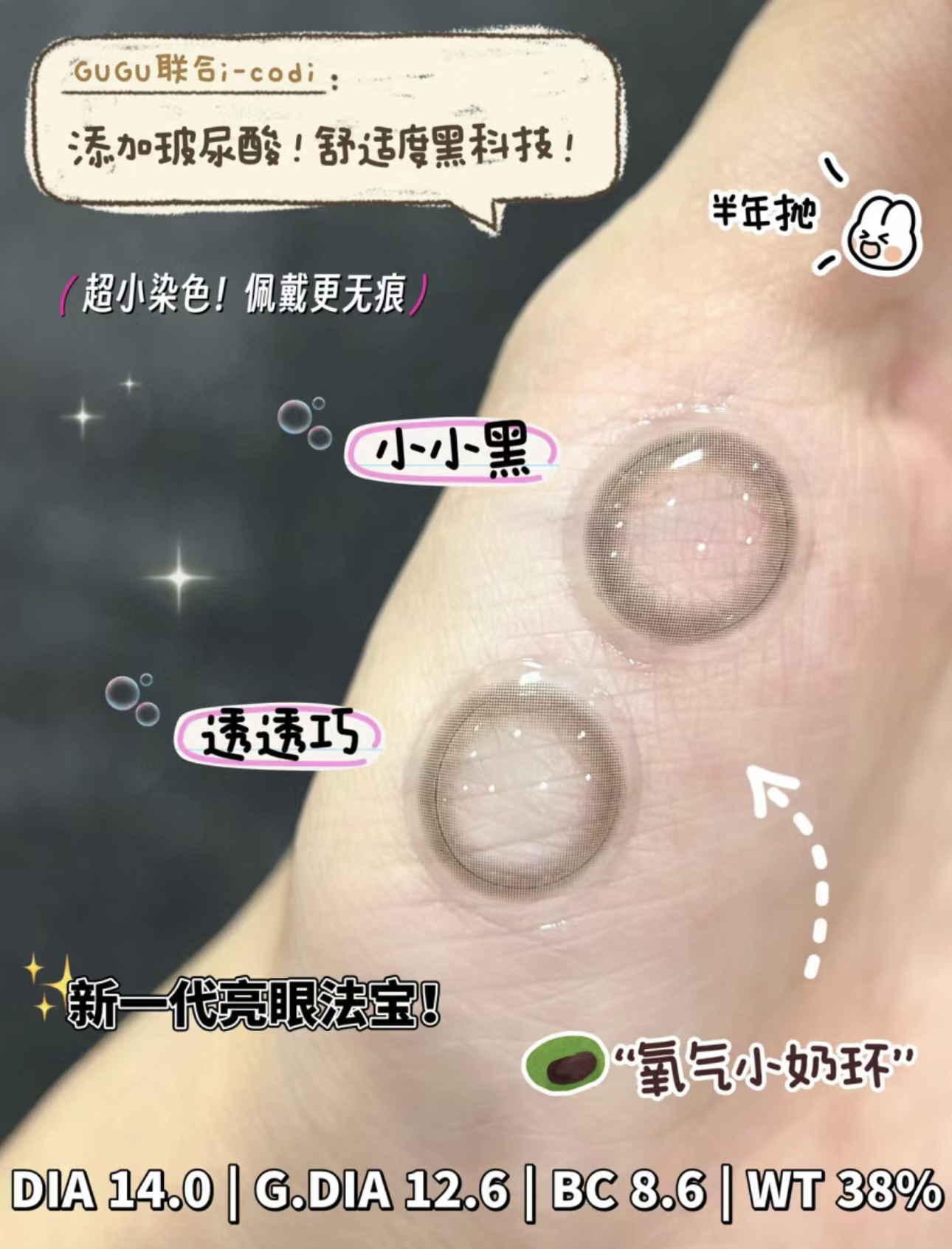 gugucon高端半年抛系列;韩国icodi产镜片添加mpc玻尿酸材质;活动 88/副;158/2副;198/3副