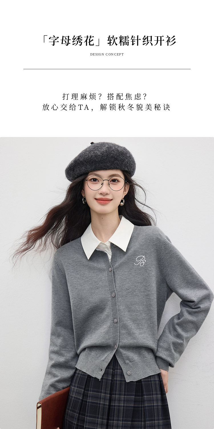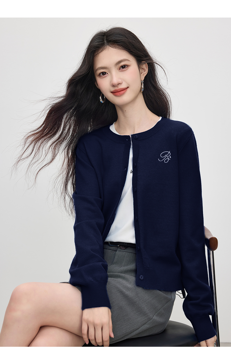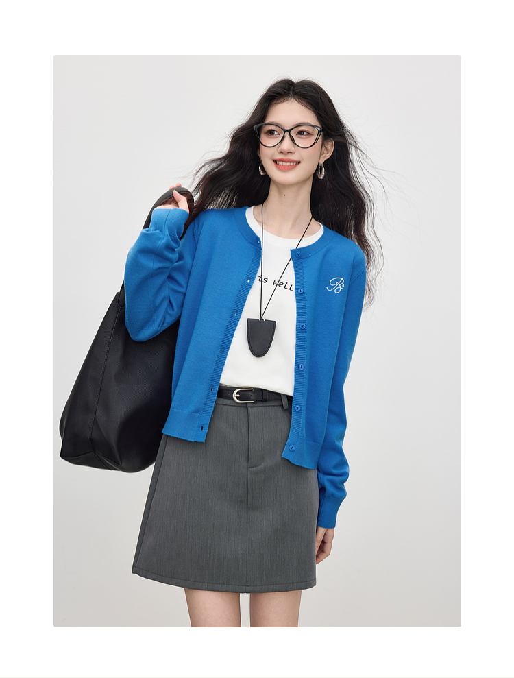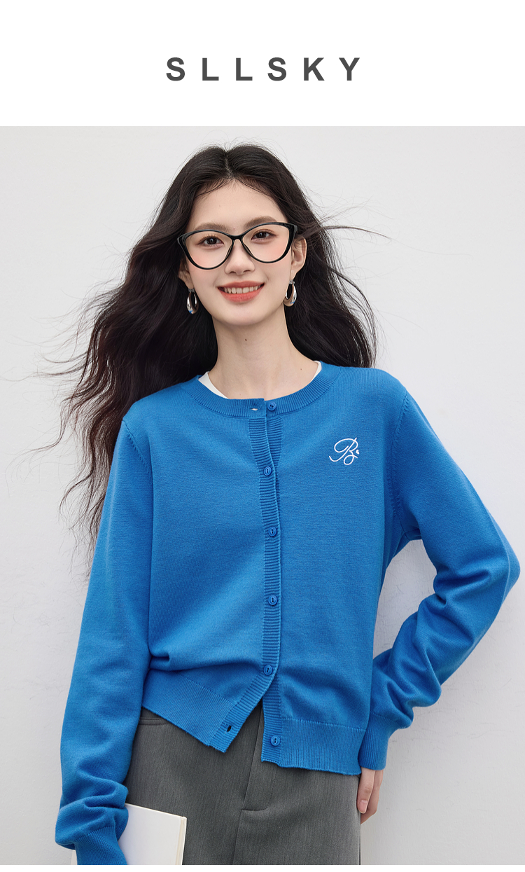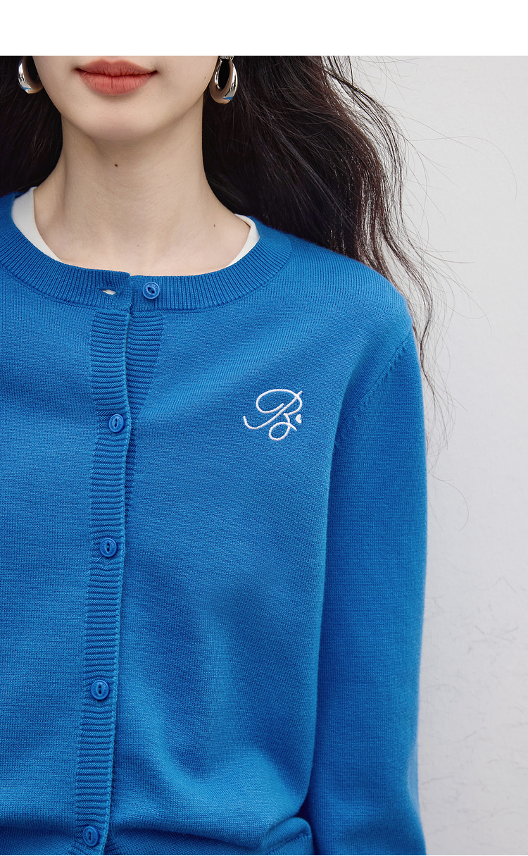 【周四狂欢价】熙世界克莱因蓝软糯针织开衫女秋季2025新款刺绣韩系穿搭长袖毛衣