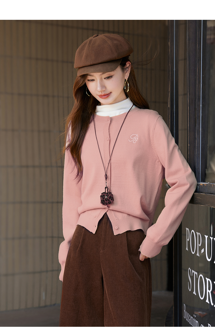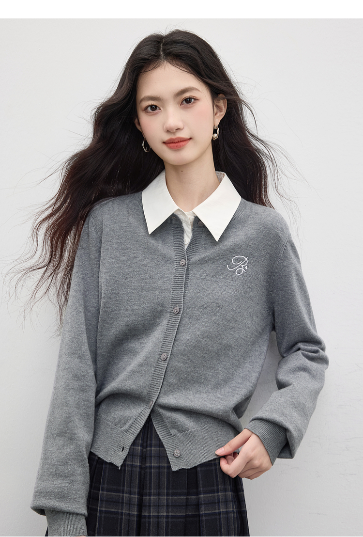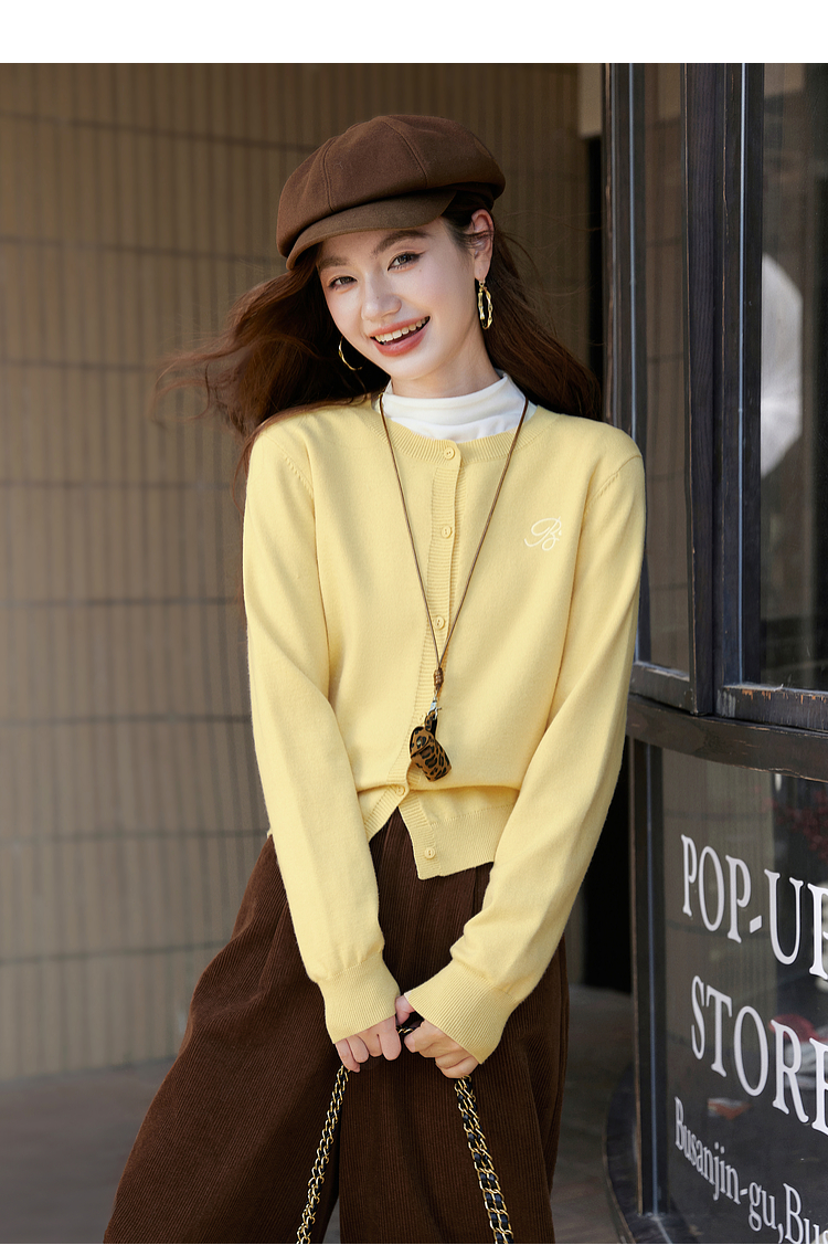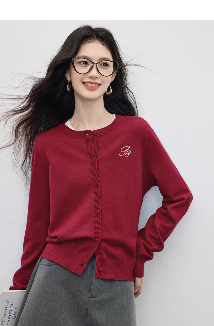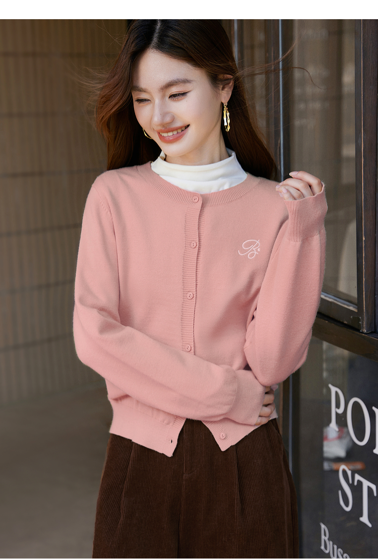 【周四狂欢价】熙世界克莱因蓝软糯针织开衫女秋季2025新款刺绣韩系穿搭长袖毛衣