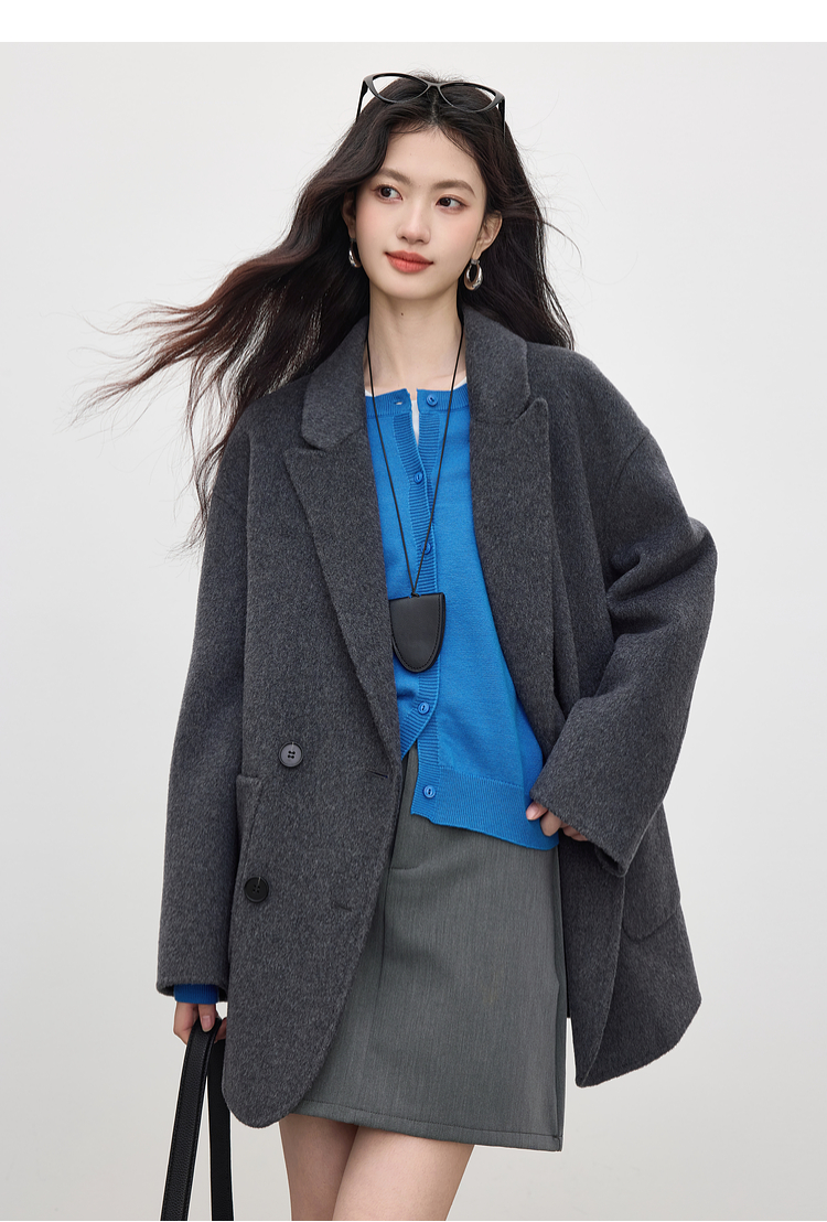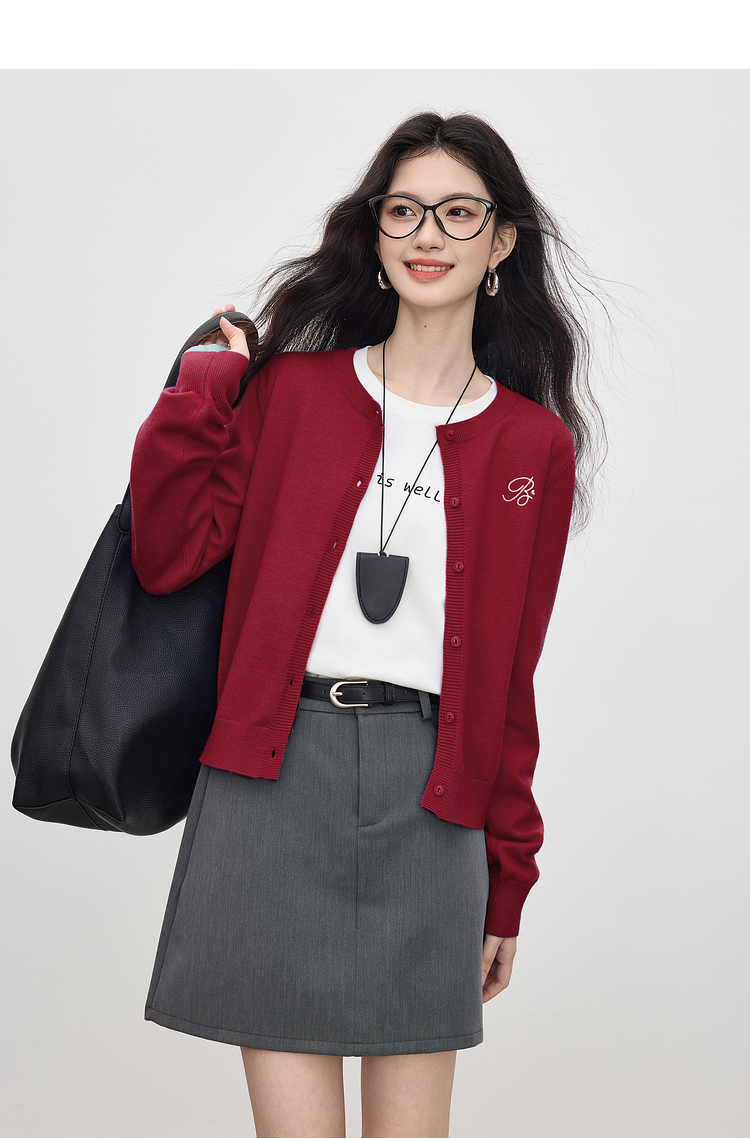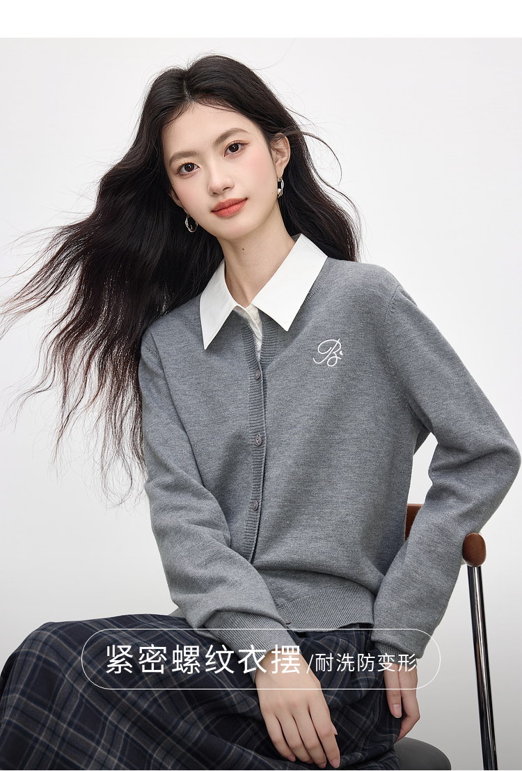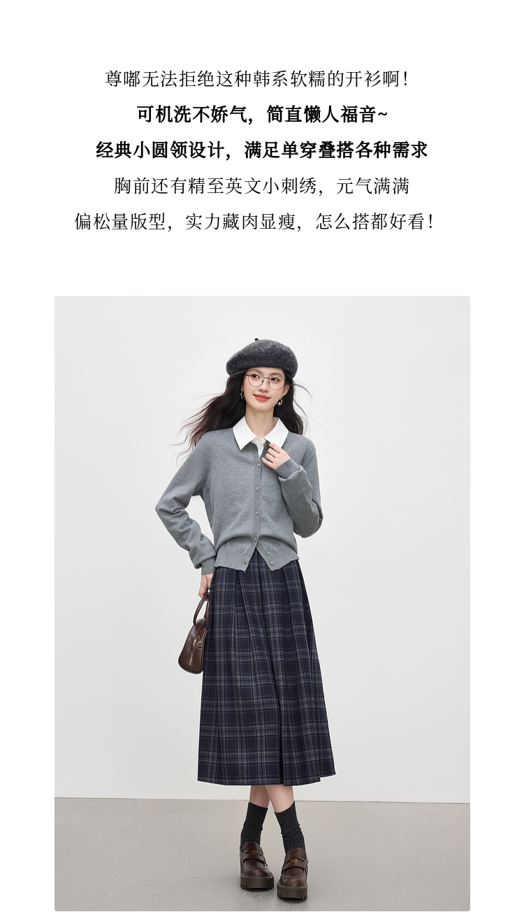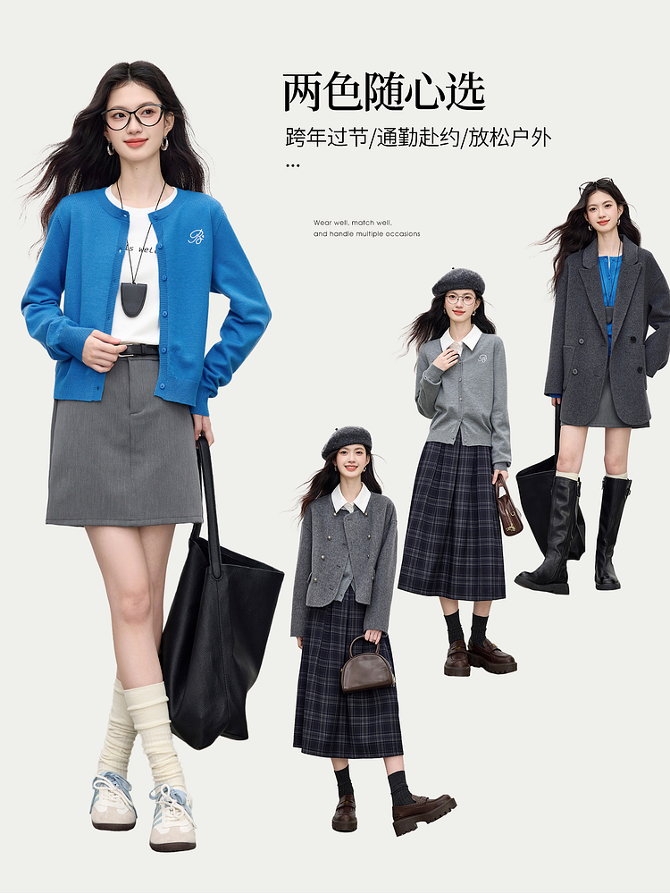 【周四狂欢价】熙世界克莱因蓝软糯针织开衫女秋季2025新款刺绣韩系穿搭长袖毛衣