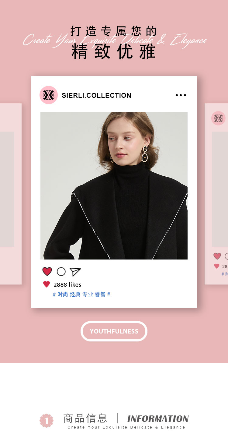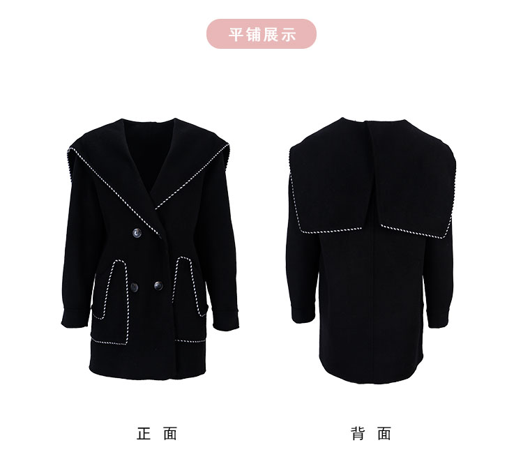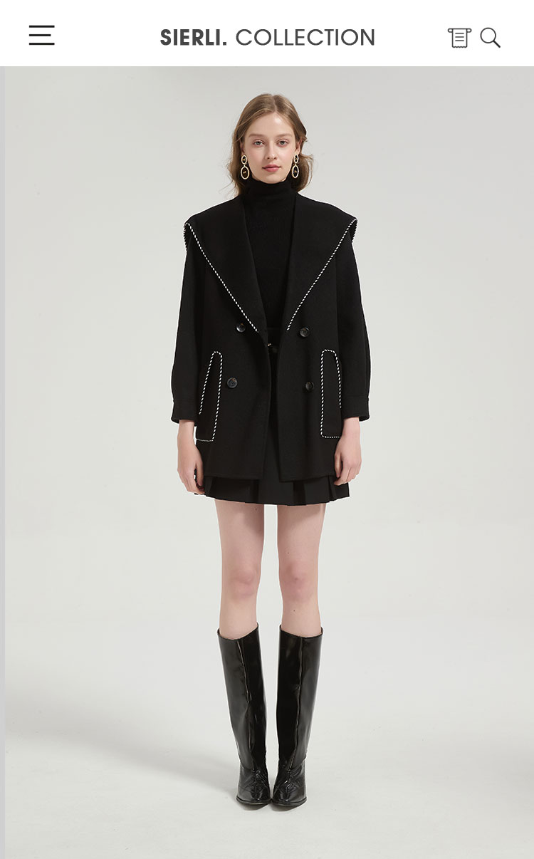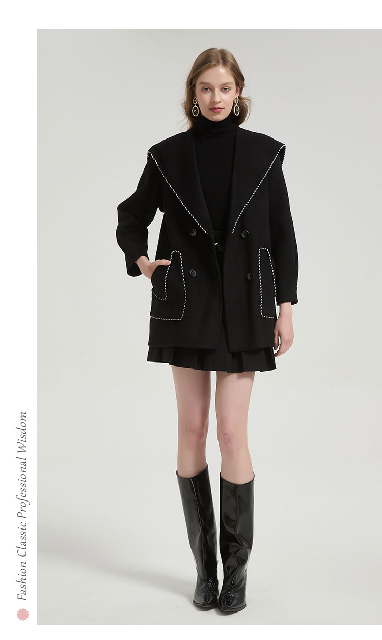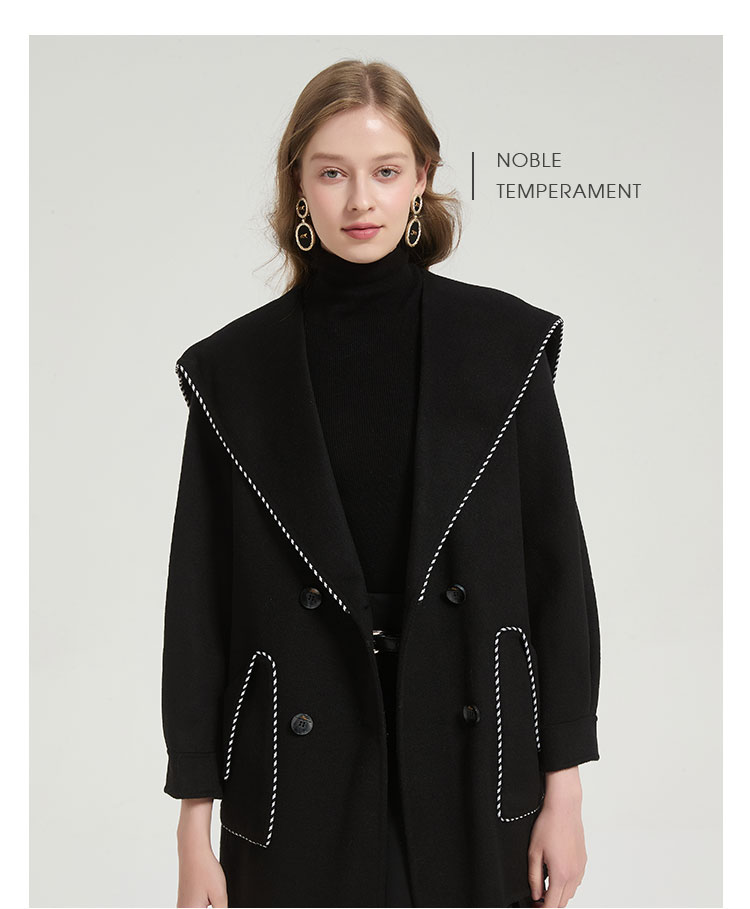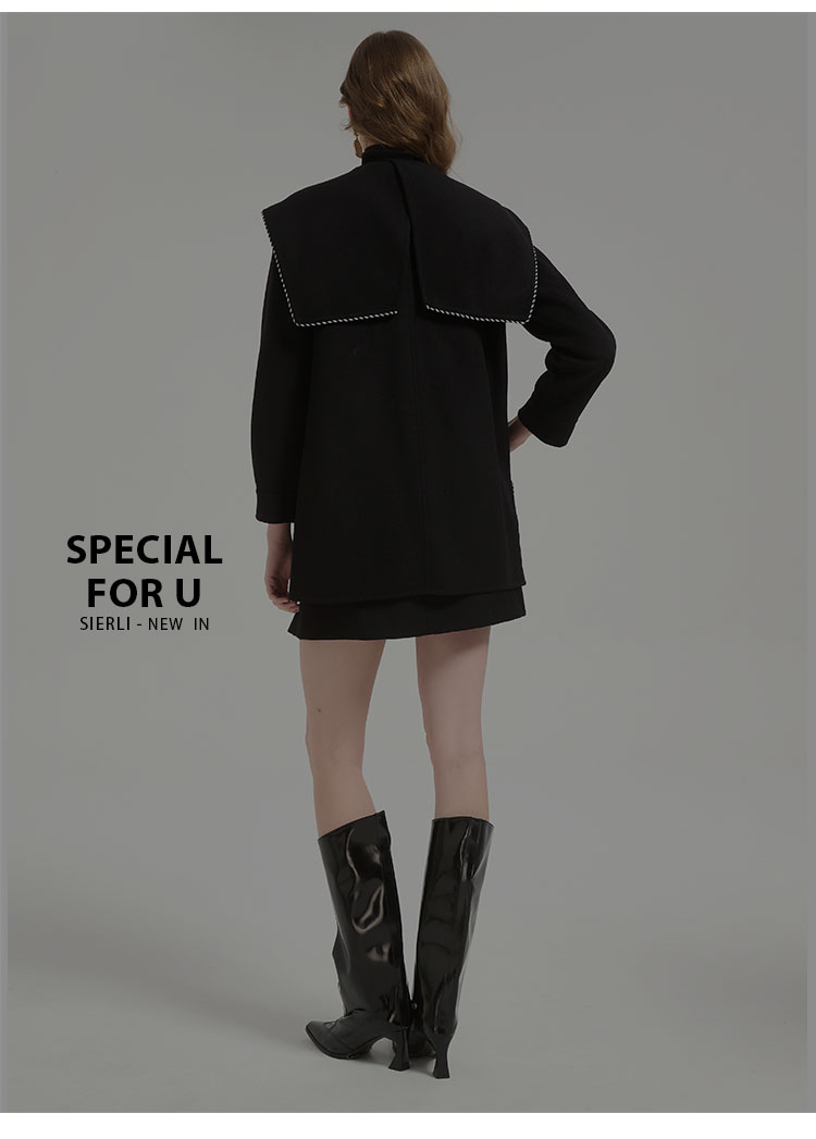 QH972斯尔丽2025秋冬新款高级感气质手工撞色大领一手长羊毛大衣外
