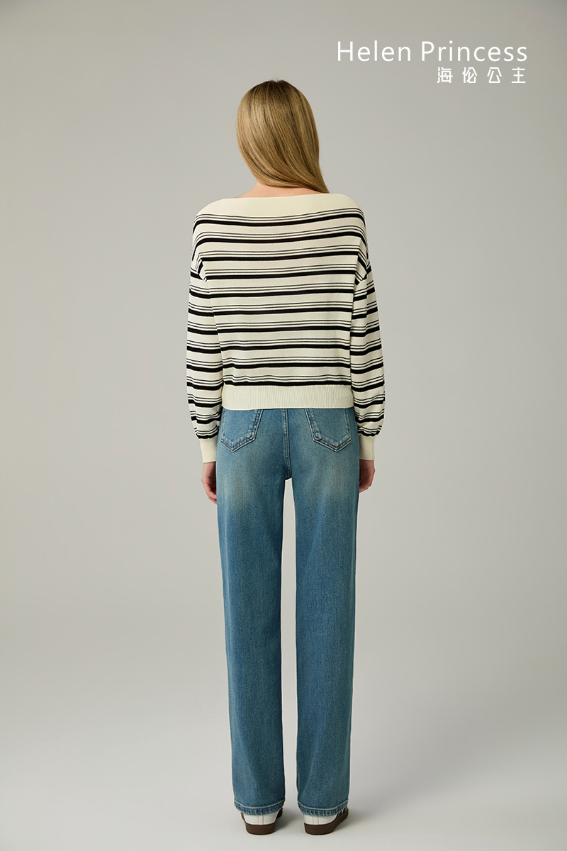 简洁利落的一字领,展现肩颈线条,勾勒迷人锁骨;单侧衣领缀以简约扣饰,增添精致细节,宽松落肩版型,轻松穿出随性自在的松弛感。