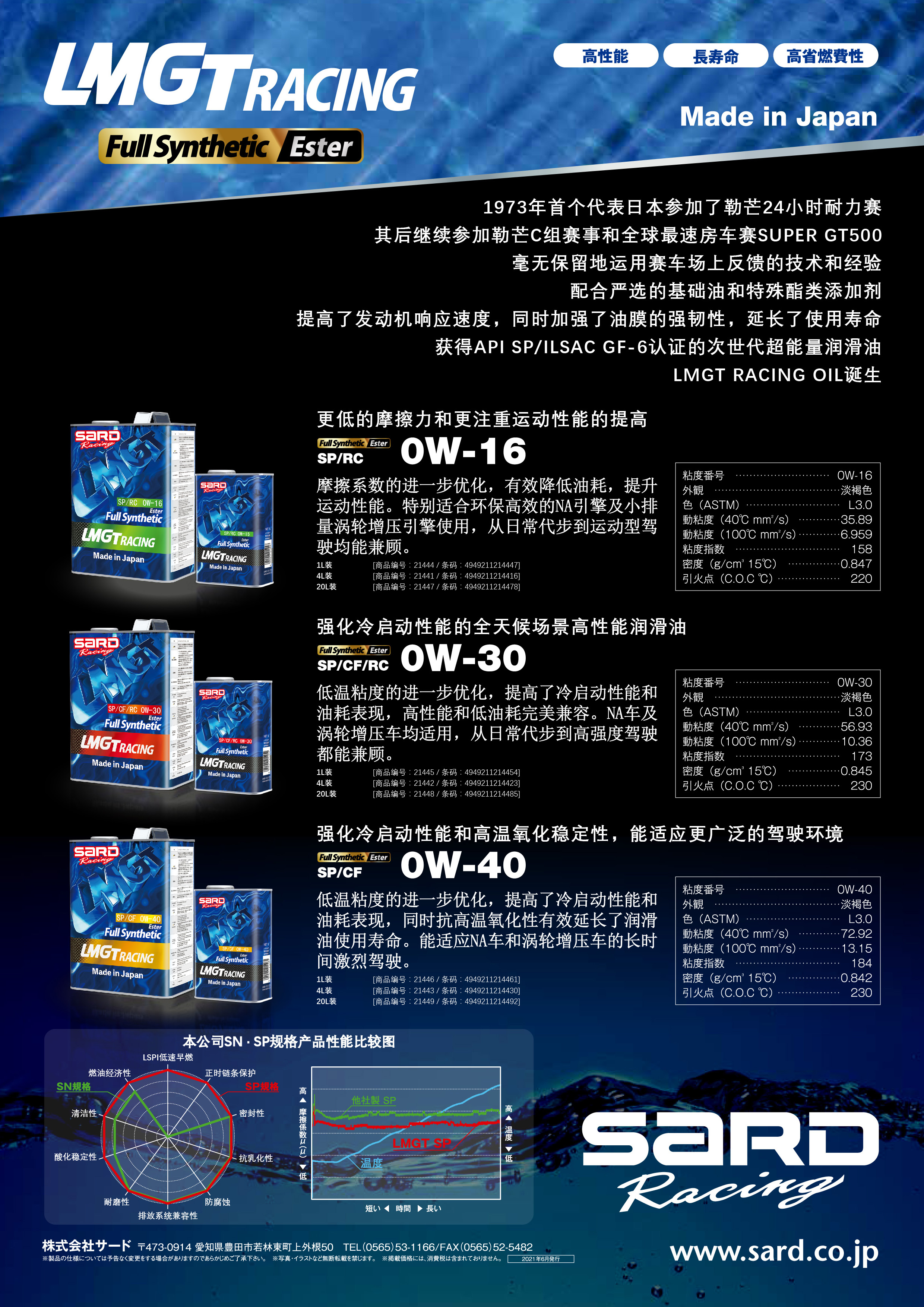 日本原装进口SARD 0W-30 SP/CF/RC 超能量魅蓝竞技系列全合成润滑油 API SP认证 国6之选