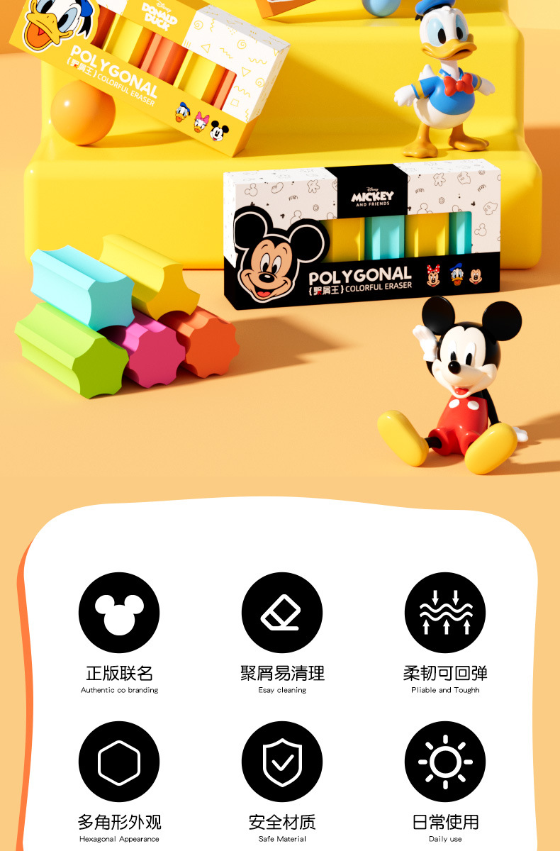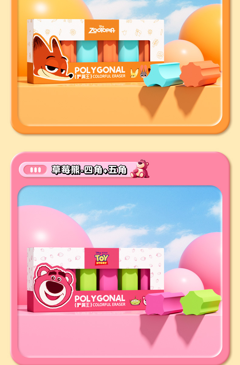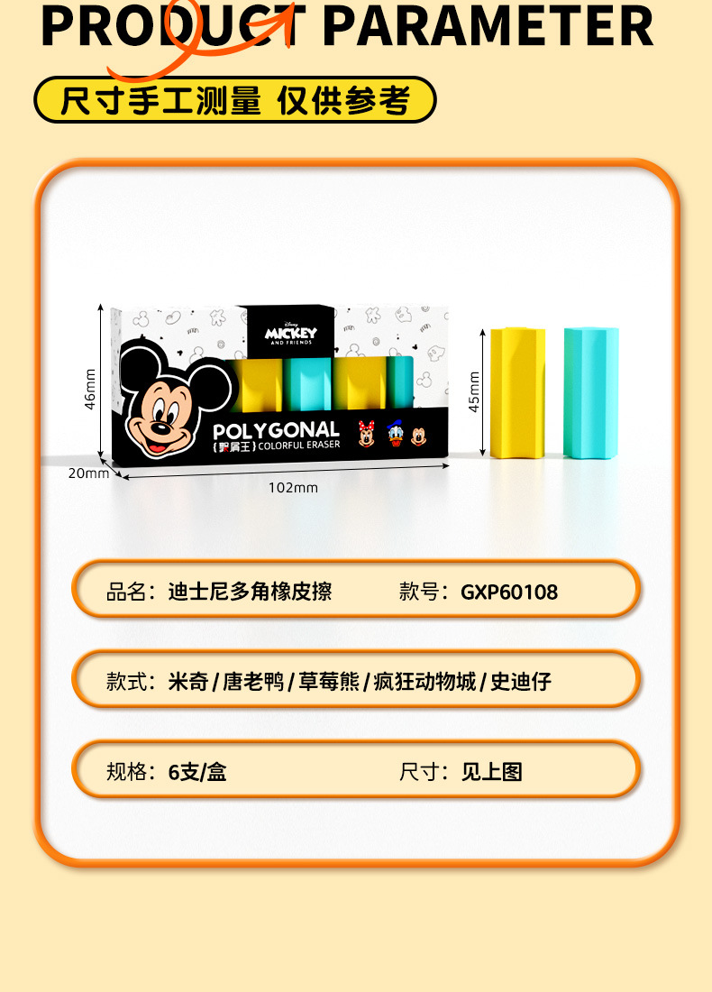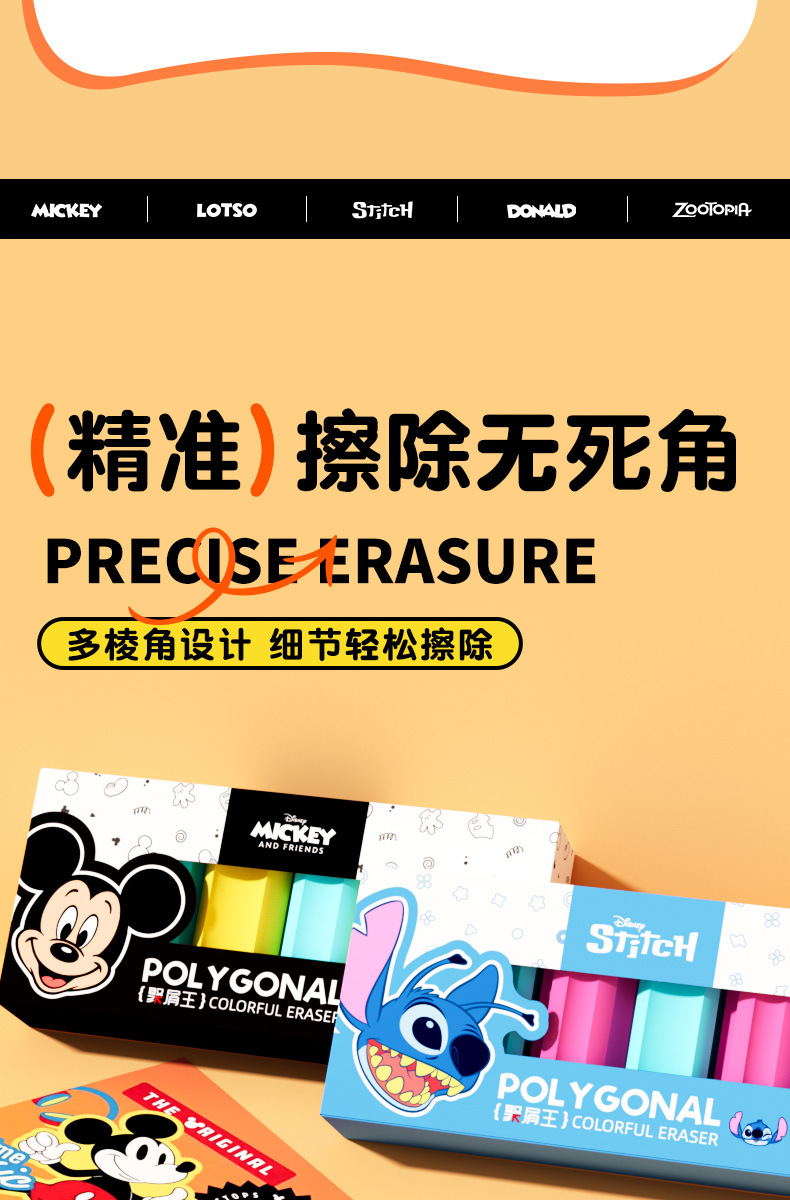 【6支盒装!迪士尼疯狂动物多角橡皮擦】 儿童卡通橡皮擦 文创高颜值学习文具