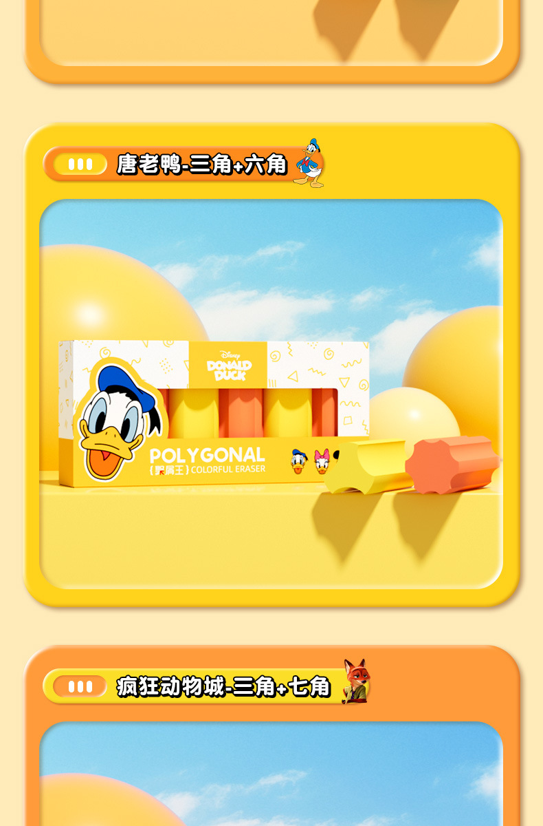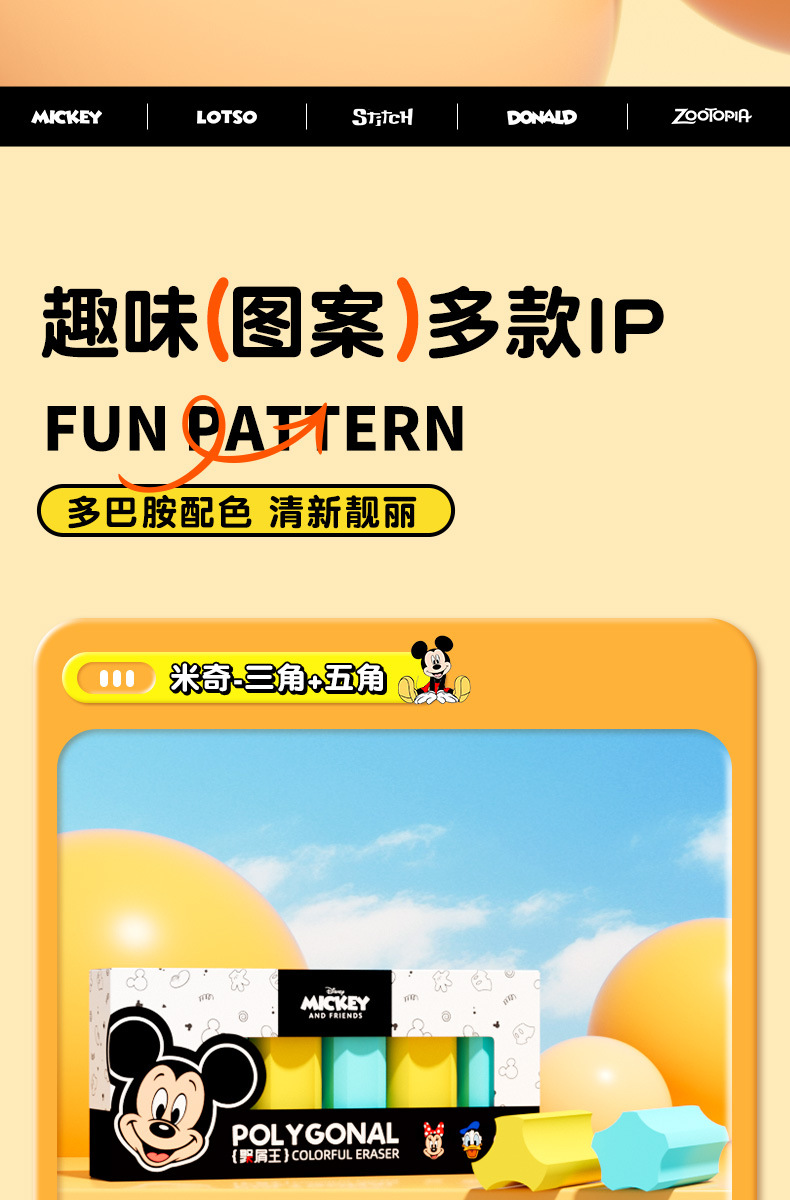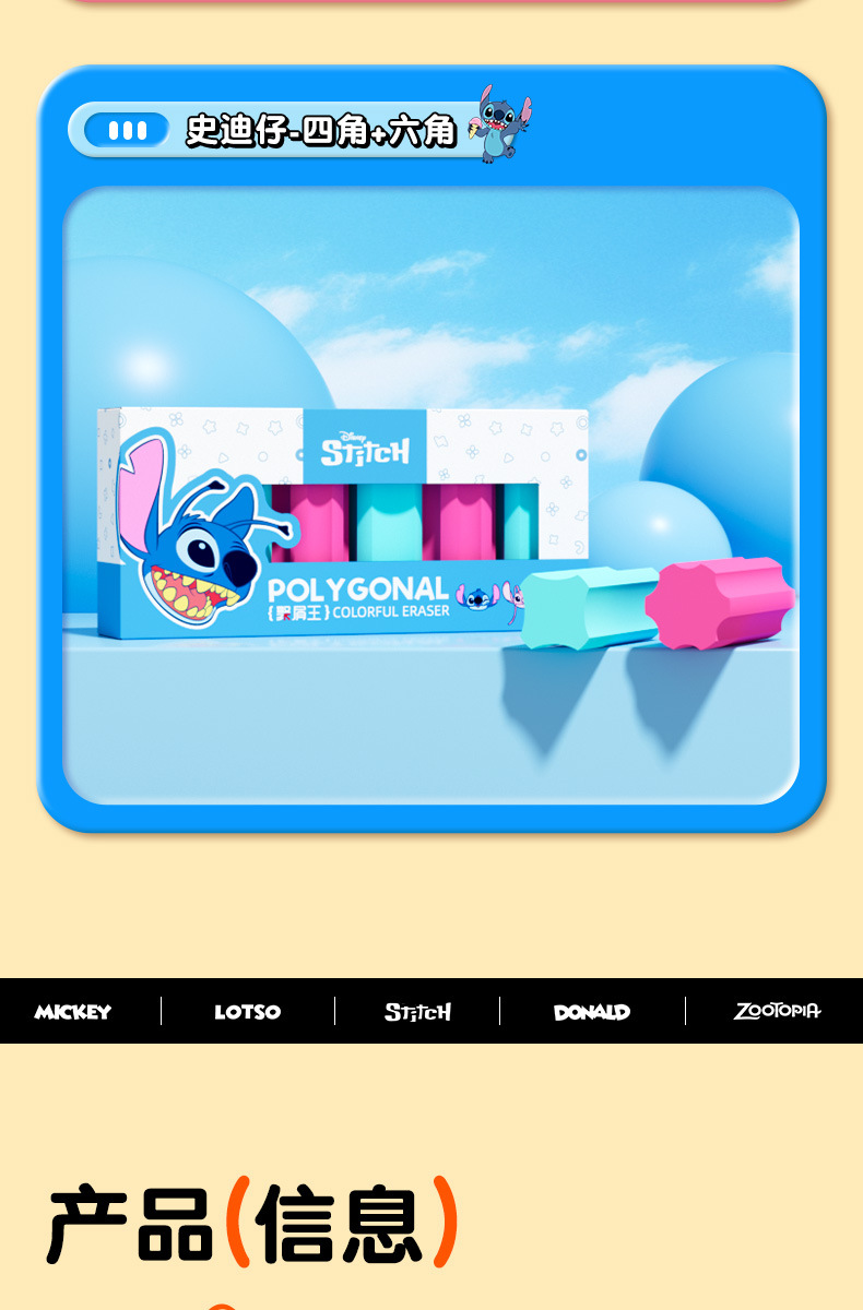 【6支盒装!迪士尼疯狂动物多角橡皮擦】 儿童卡通橡皮擦 文创高颜值学习文具
