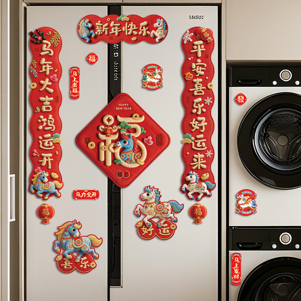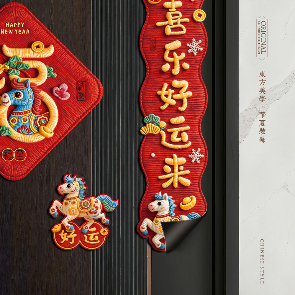 春节不打烊【马年新款❗️好运连连】2026马年全磁吸对联春联新年春节生意对联店铺开业新年公司商场门店春联福字门贴5D装饰。jd