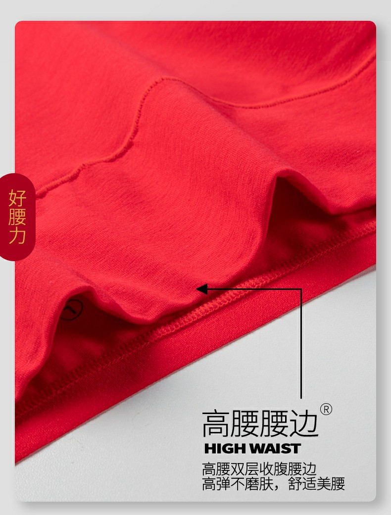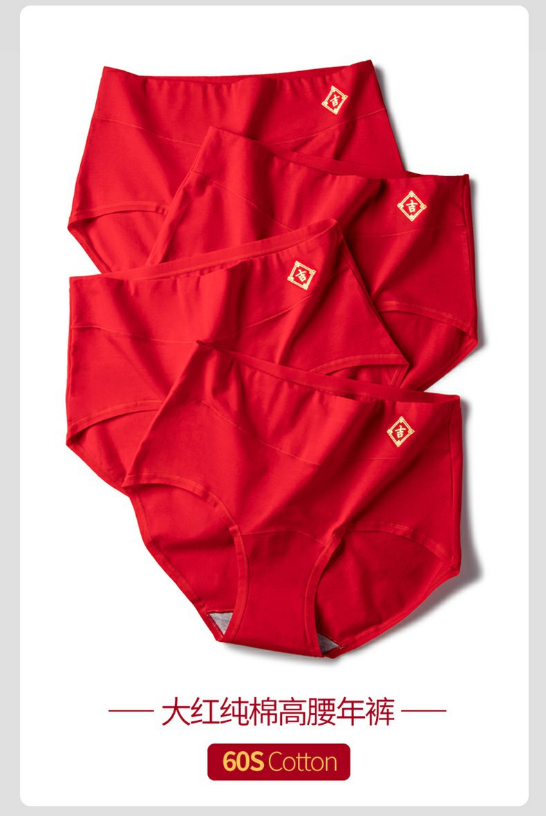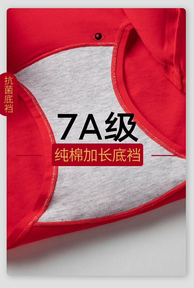 丁摩 3条高腰本命年大红女士内裤纯棉透气7A级抗菌加长裆提臀三角裤现货4ZF-6175