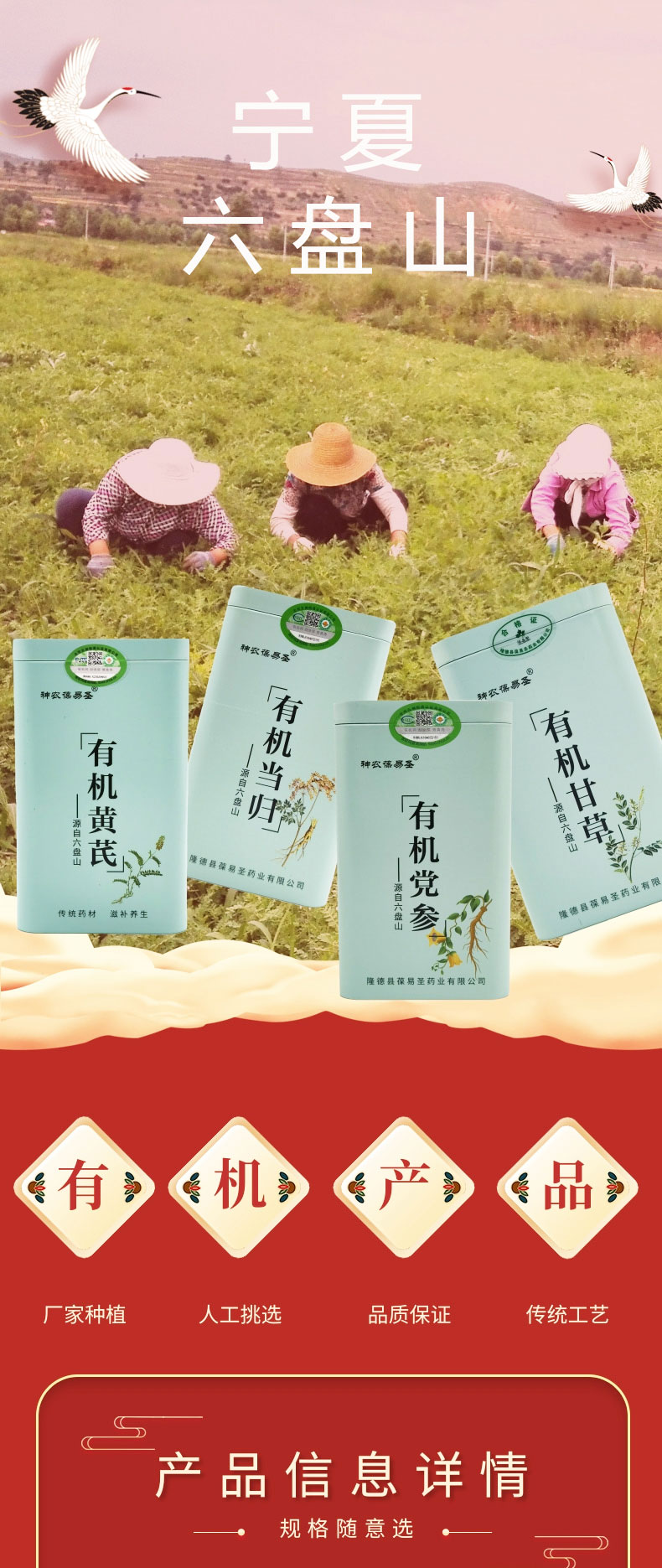 运舟味道有机当归 黄芪 党参 甘草 药食同源 调养佳品 煲汤泡茶增强免疫力