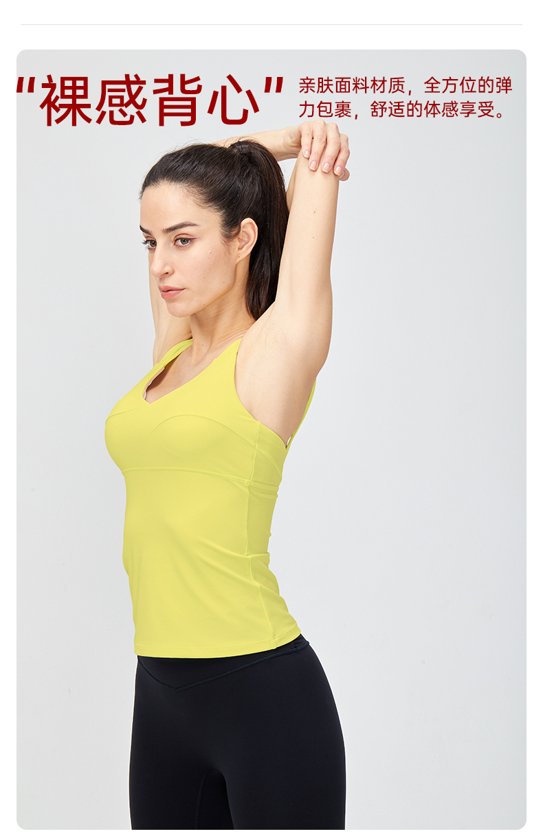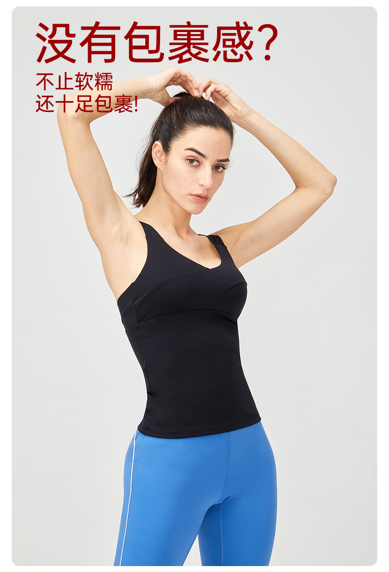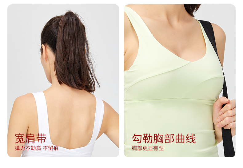 IYOGA 瑜伽运动背心可拆卸胸垫亲肤莱卡N66弹力面料美背挺胸宽肩带B056