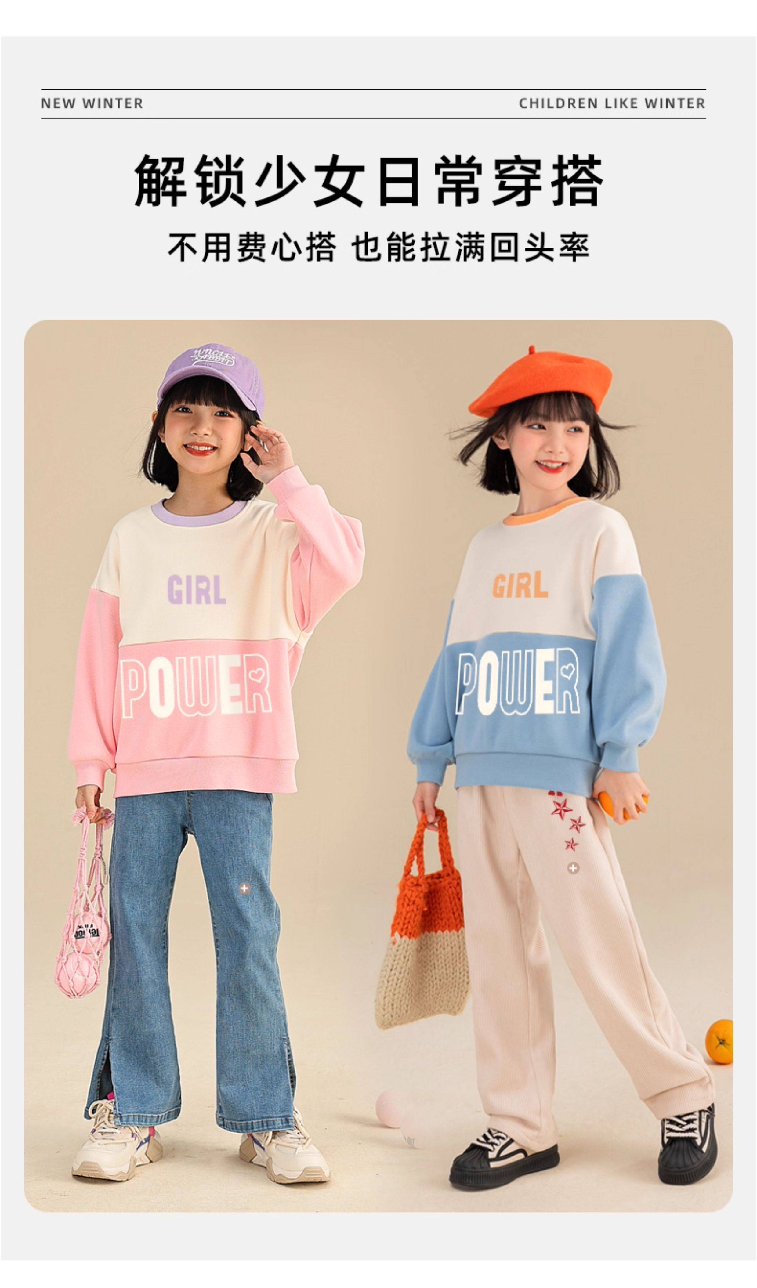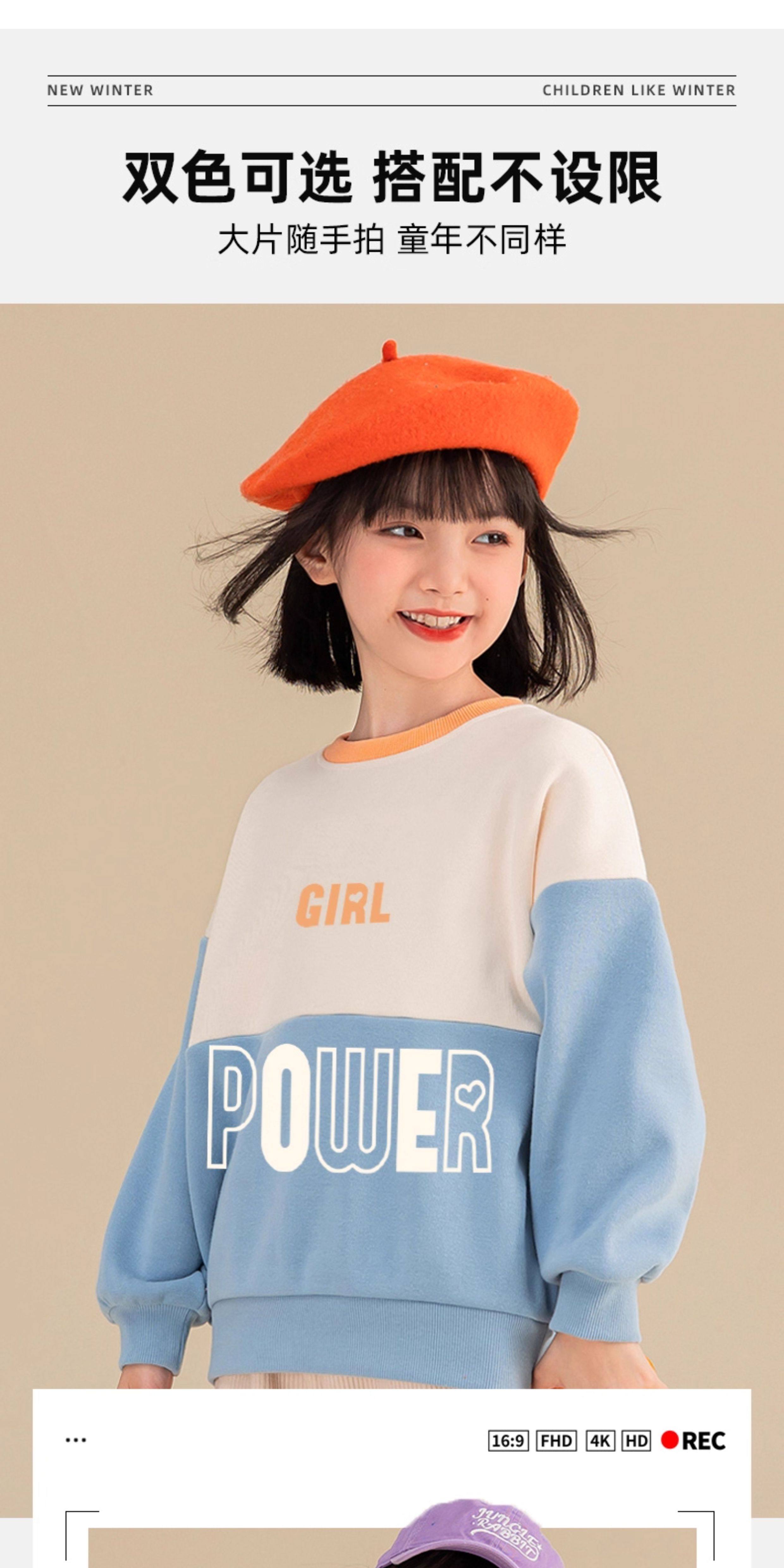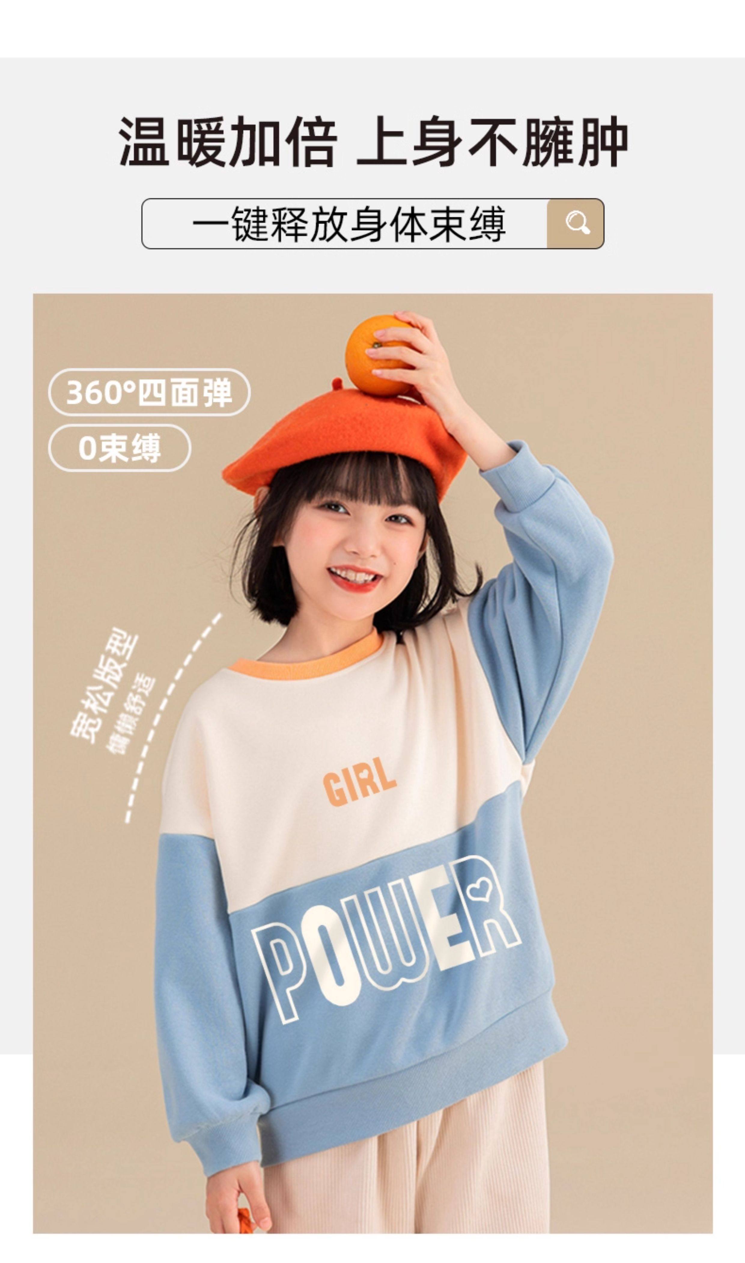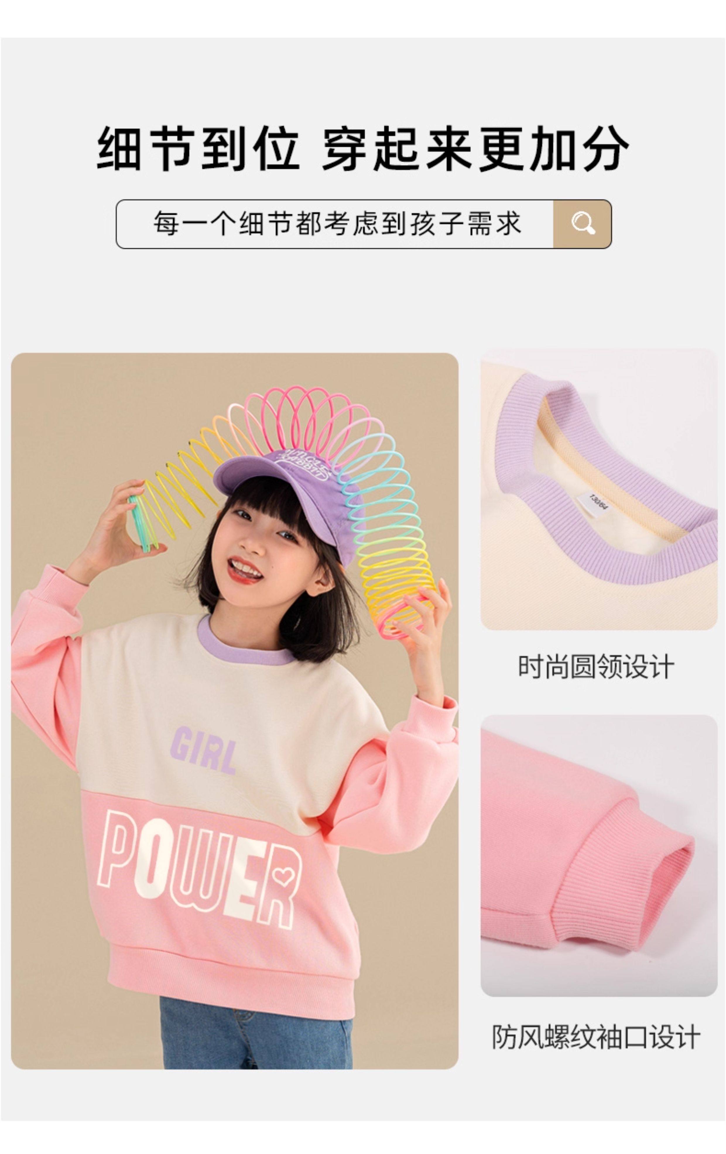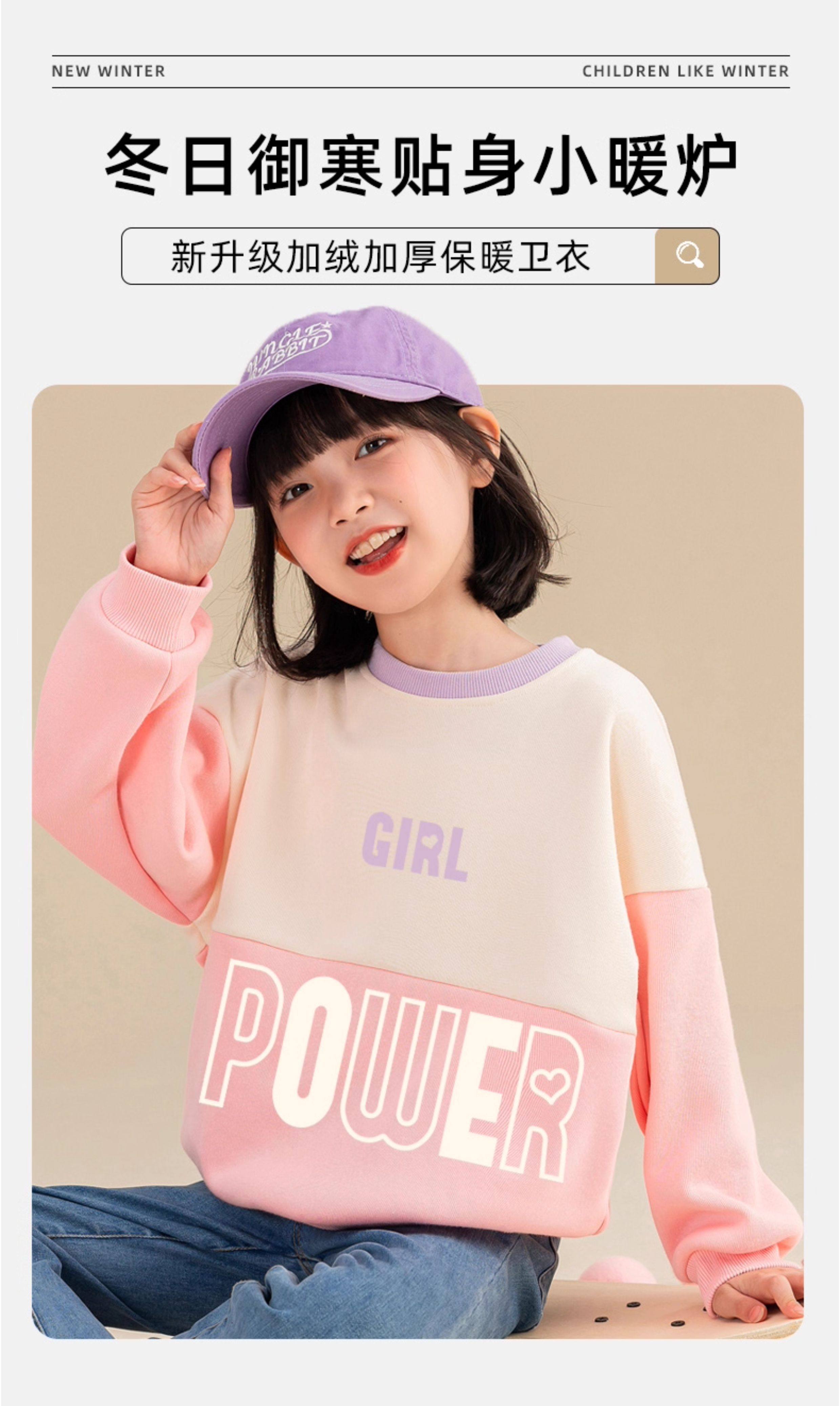 贝田女童加绒卫衣冬季儿童加厚一体绒洋气2025新款冬装大童冬款潮