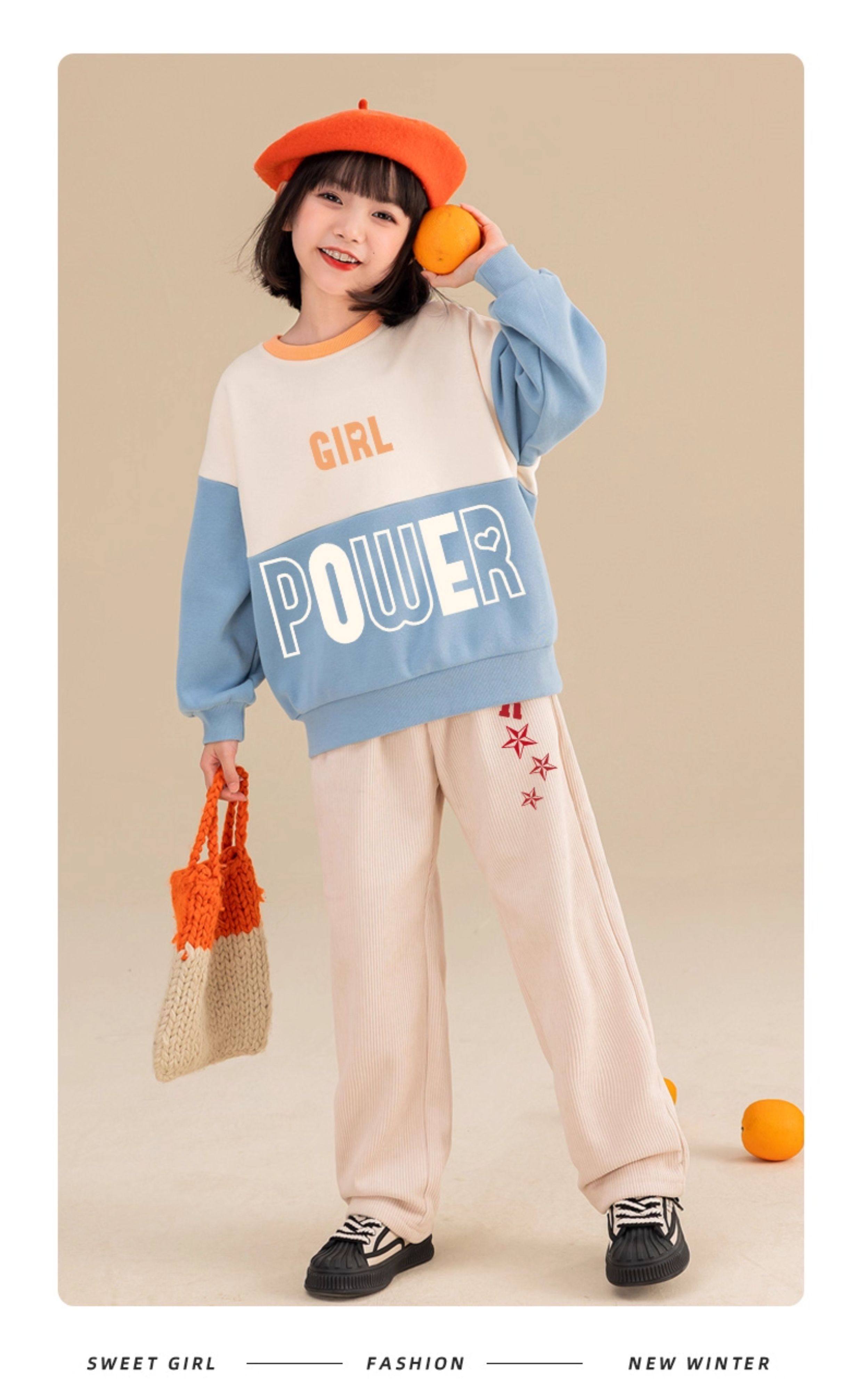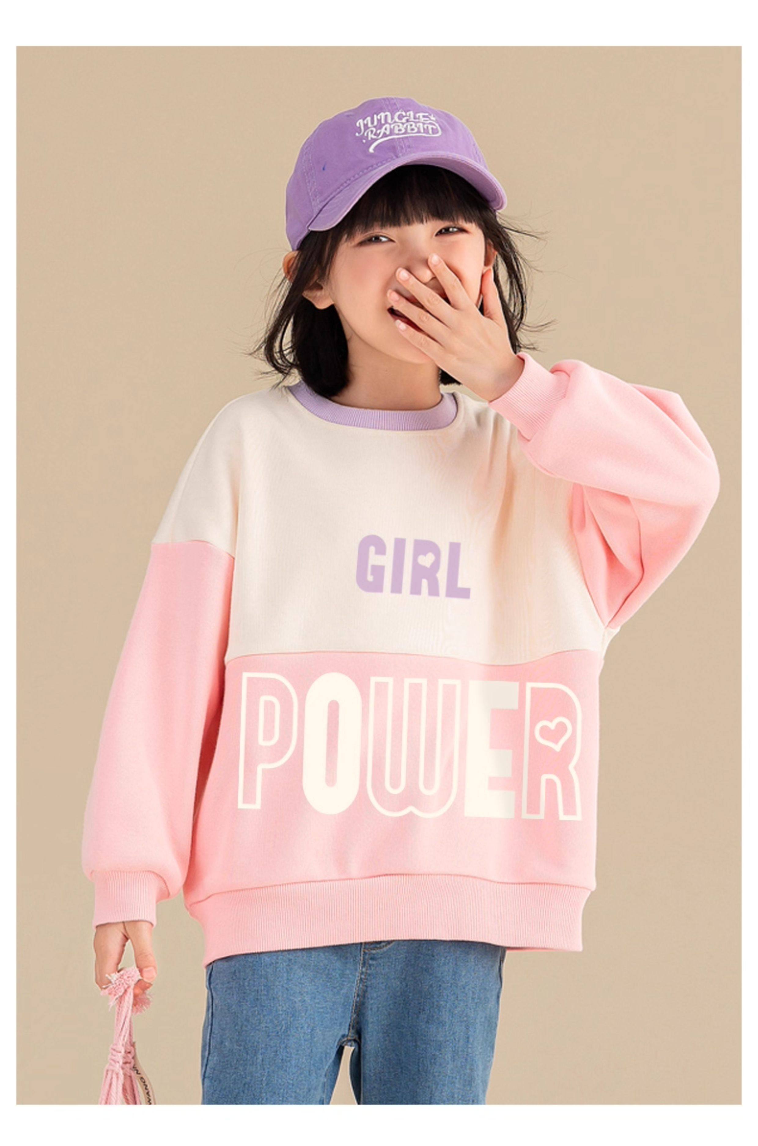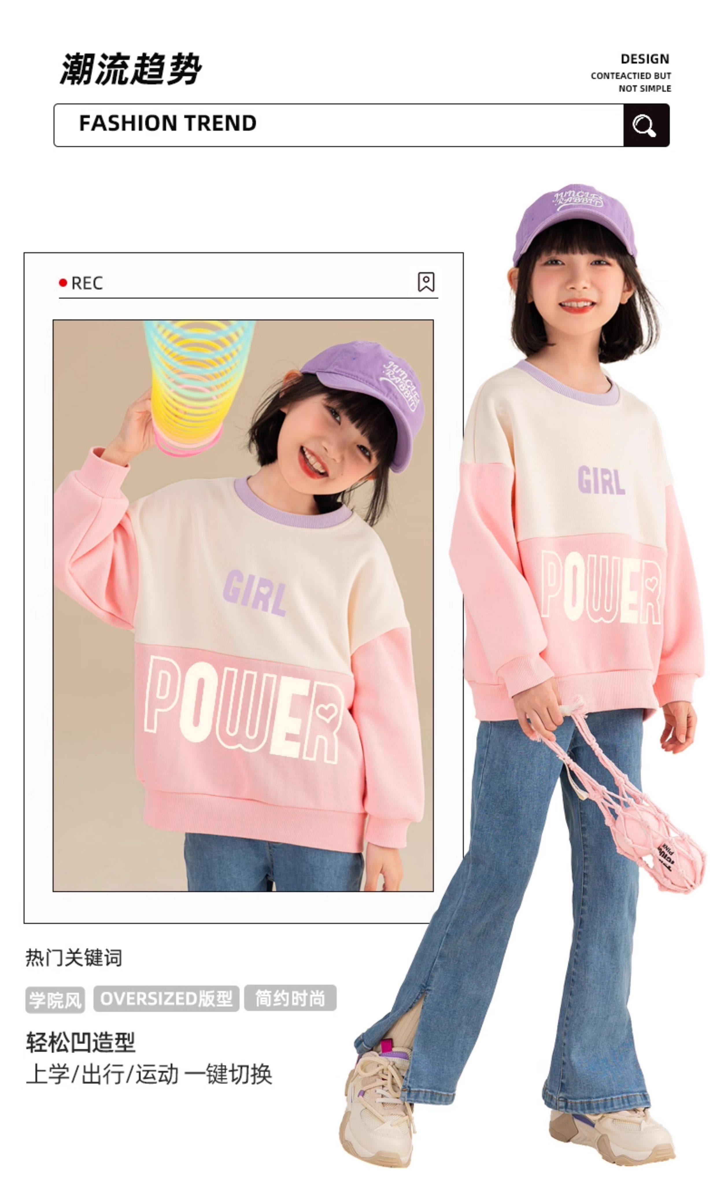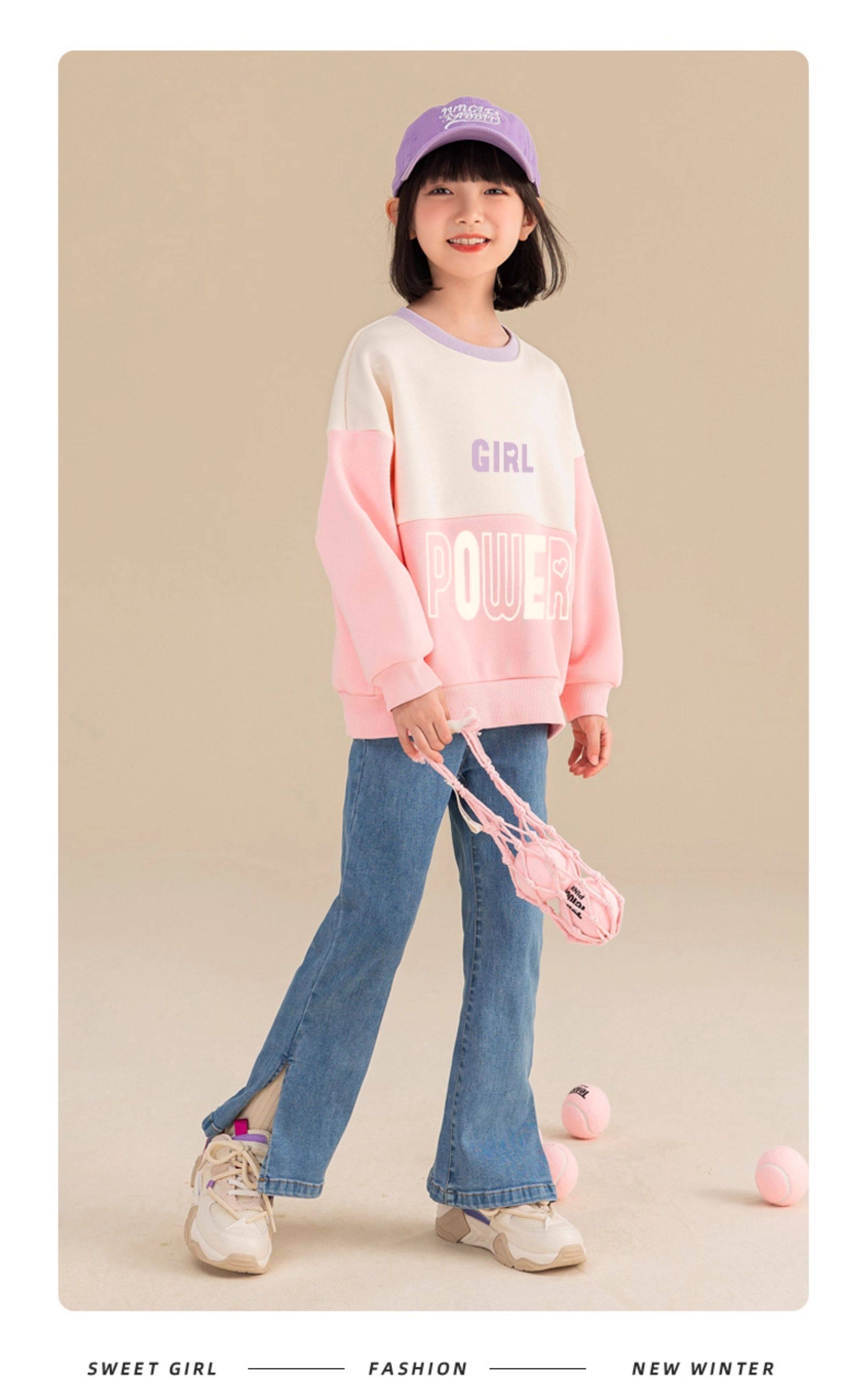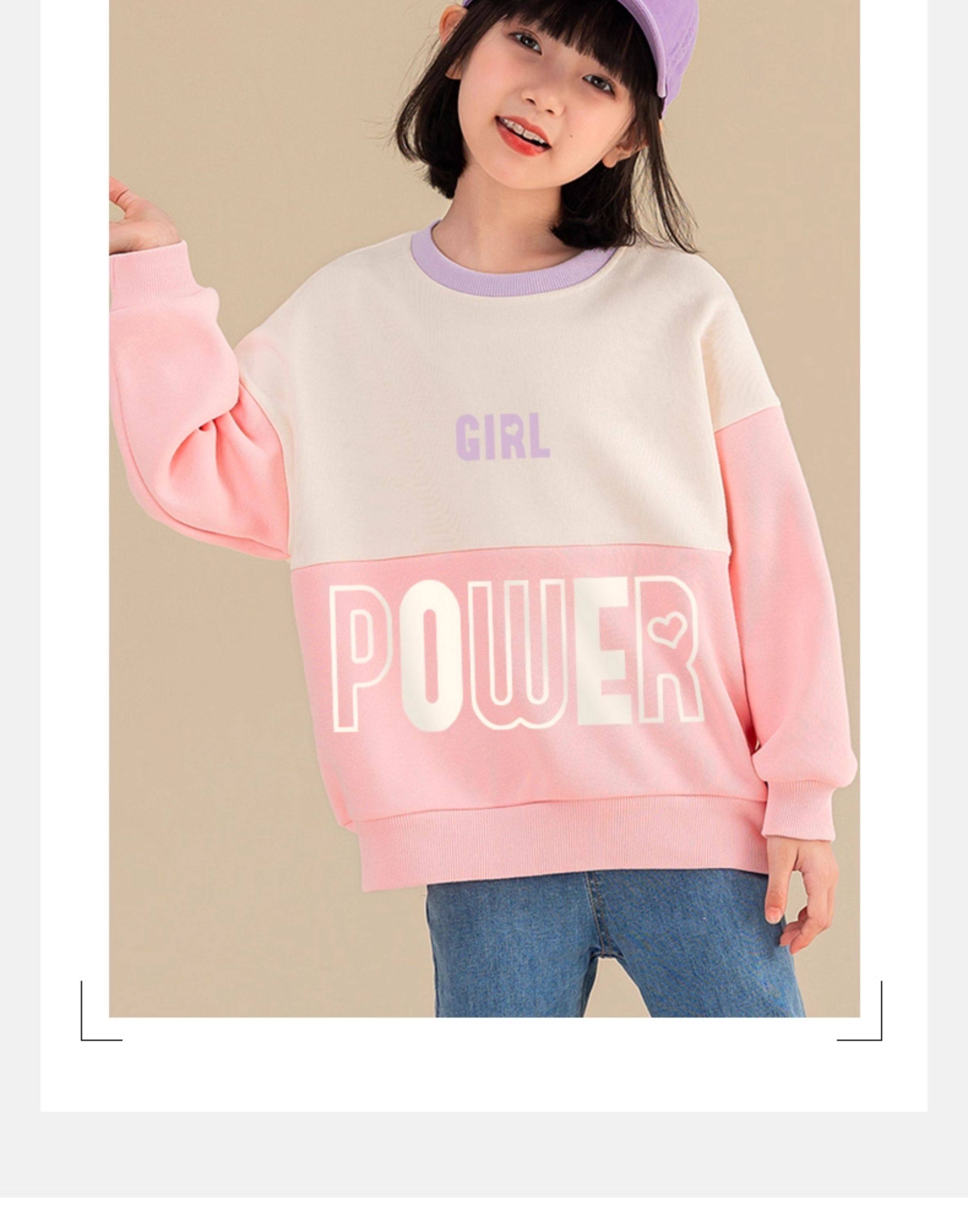贝田女童加绒卫衣冬季儿童加厚一体绒洋气2025新款冬装大童冬款潮