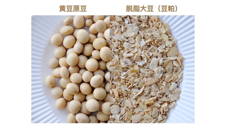 即使日本酱油,多数也采用“脱脂大豆”制作。脱脂大豆,即豆粕,是整粒大豆榨完大豆油留下的副产品。