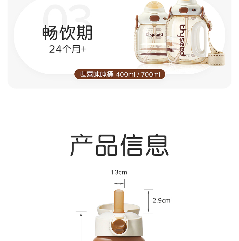 世喜儿童保温杯480ml水杯宝宝婴幼儿直饮吸管幼儿园外出水壶1一3岁以上