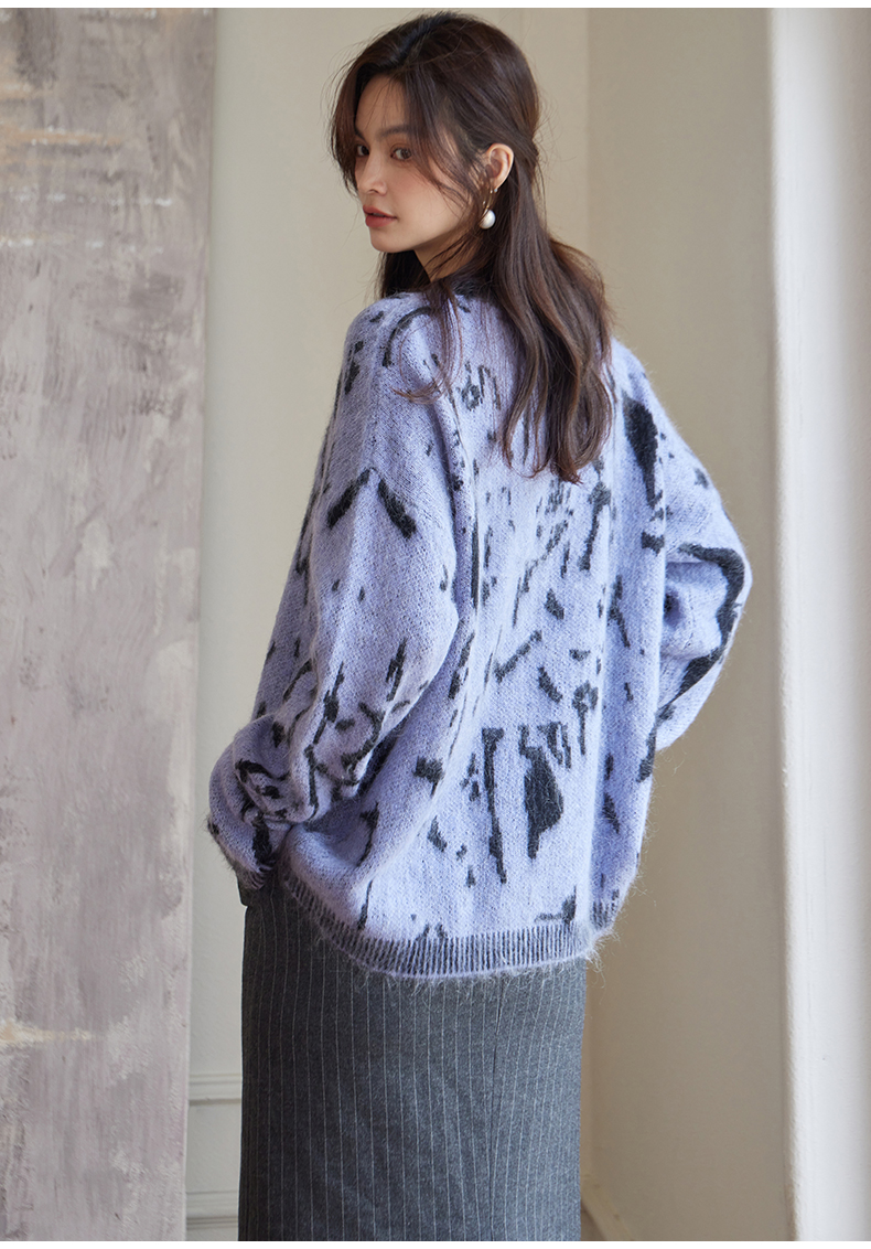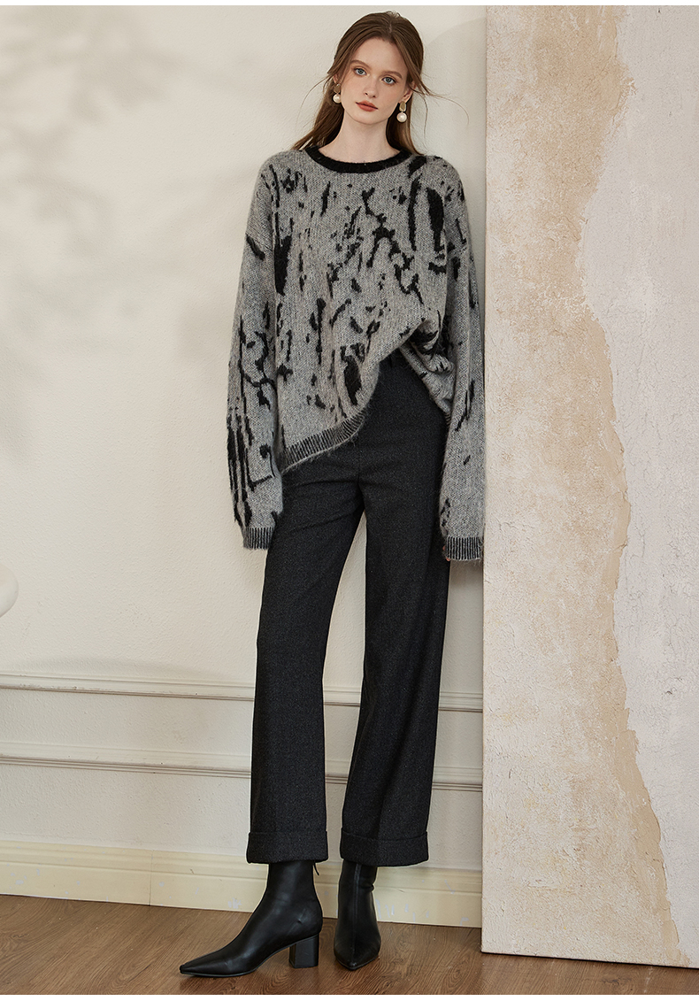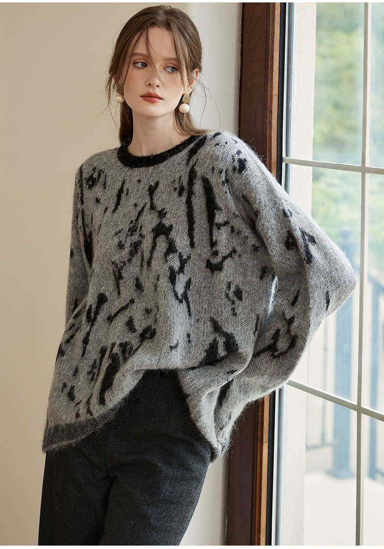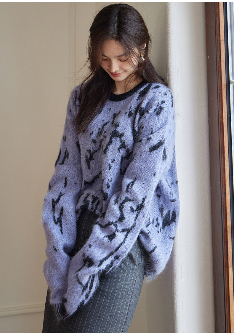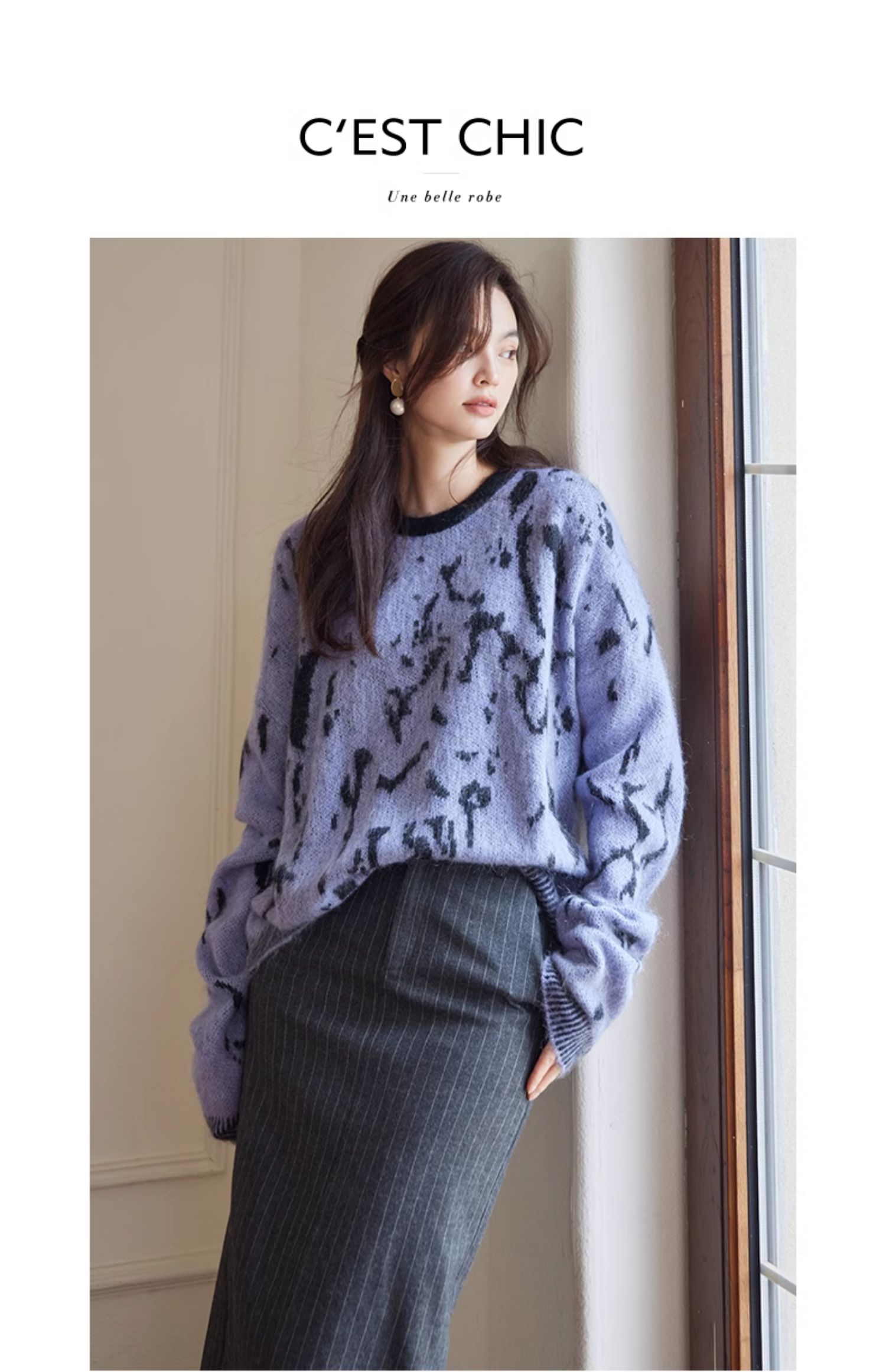 罗衣轻奢40.2%绵羊毛宽松毛衣2024冬季新款慵懒马海毛针织衫08924